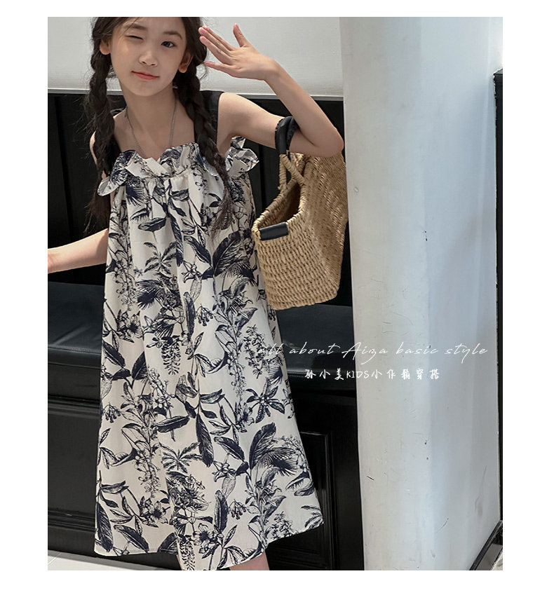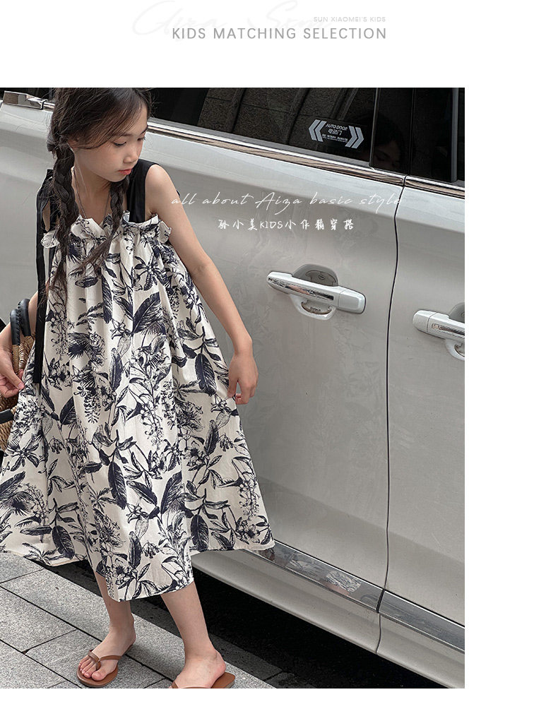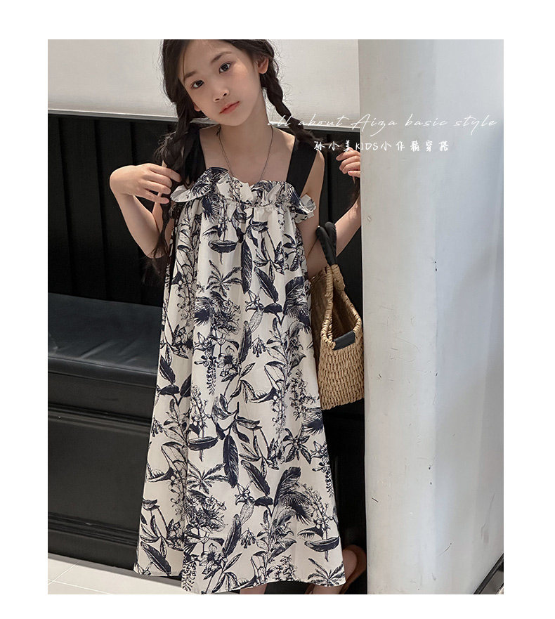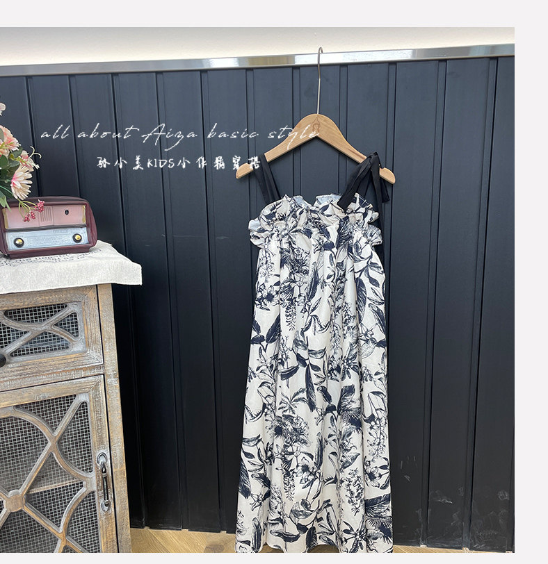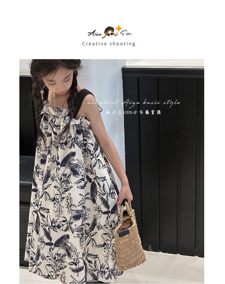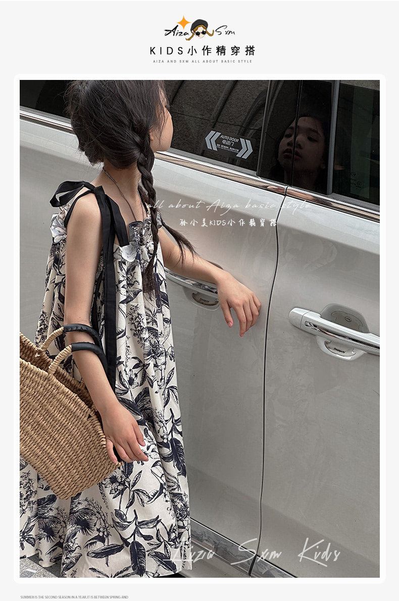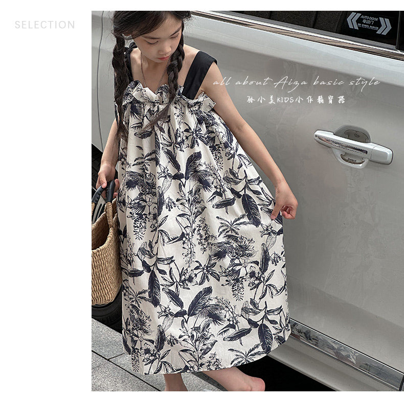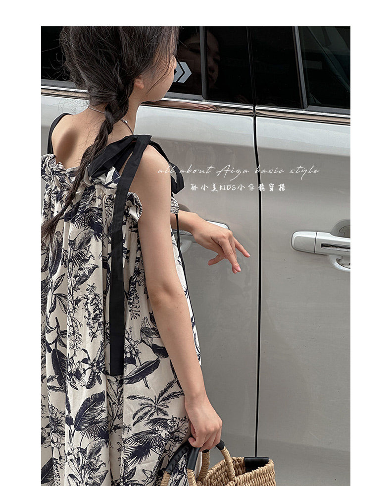 韓國童裝女童水墨畫吊帶裙兒童夏裝連衣裙2025新款無袖背心裙子薄