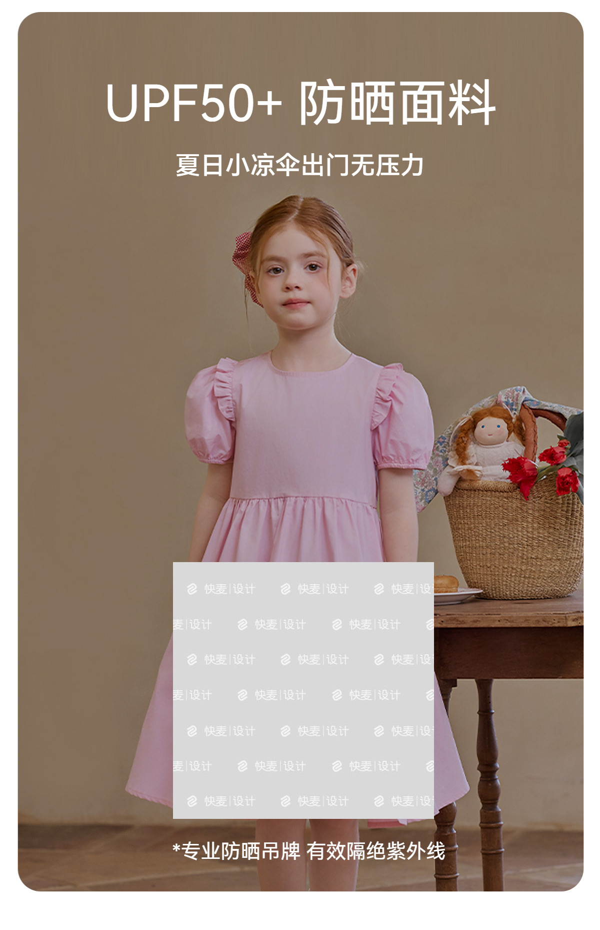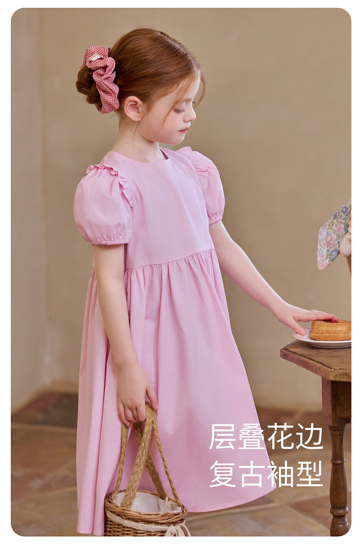 LittleNaive連衣裙女童浪漫甜美碎花裙子中大童度假風法式連衣裙
