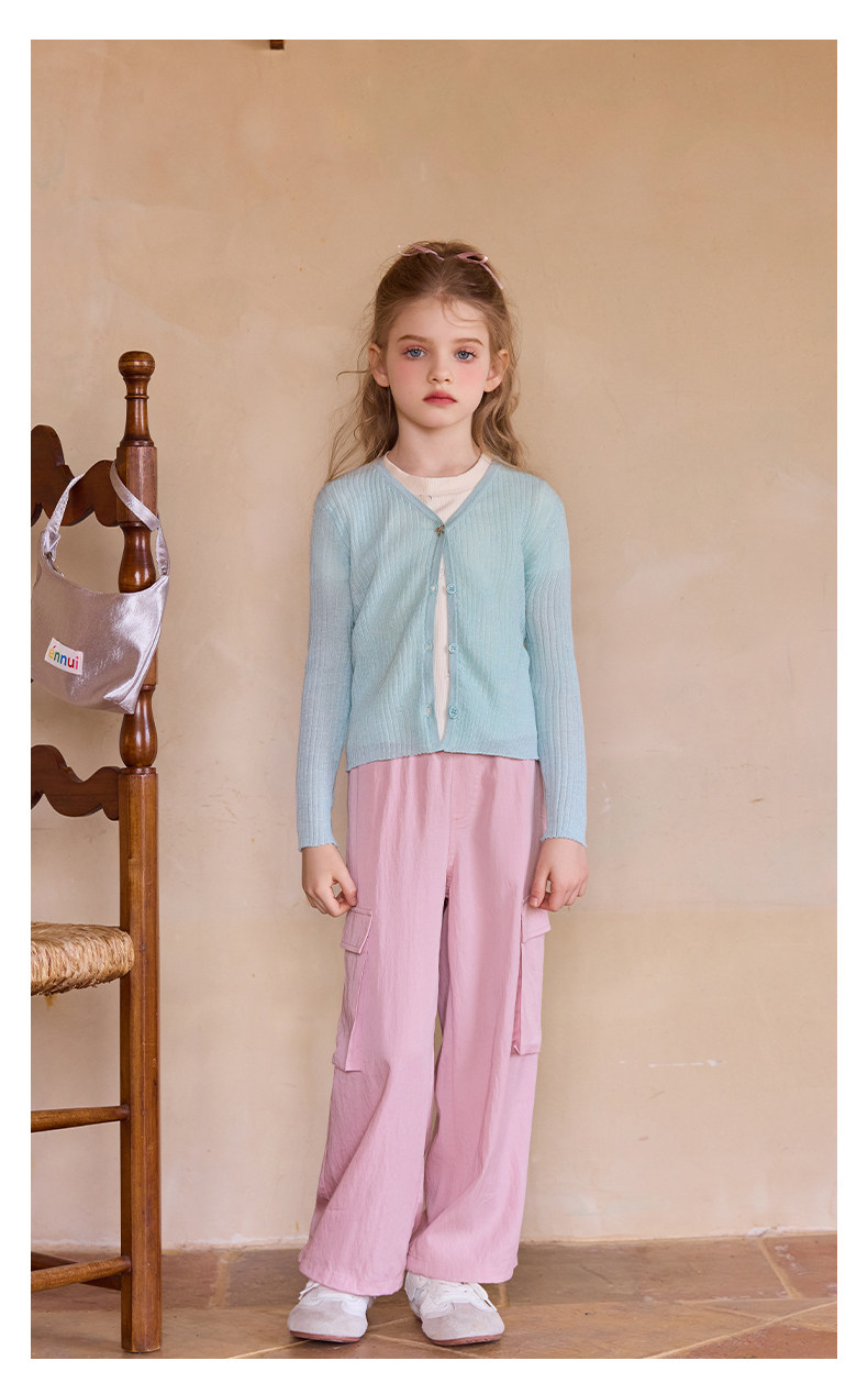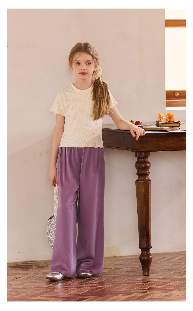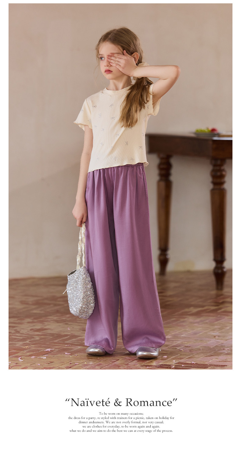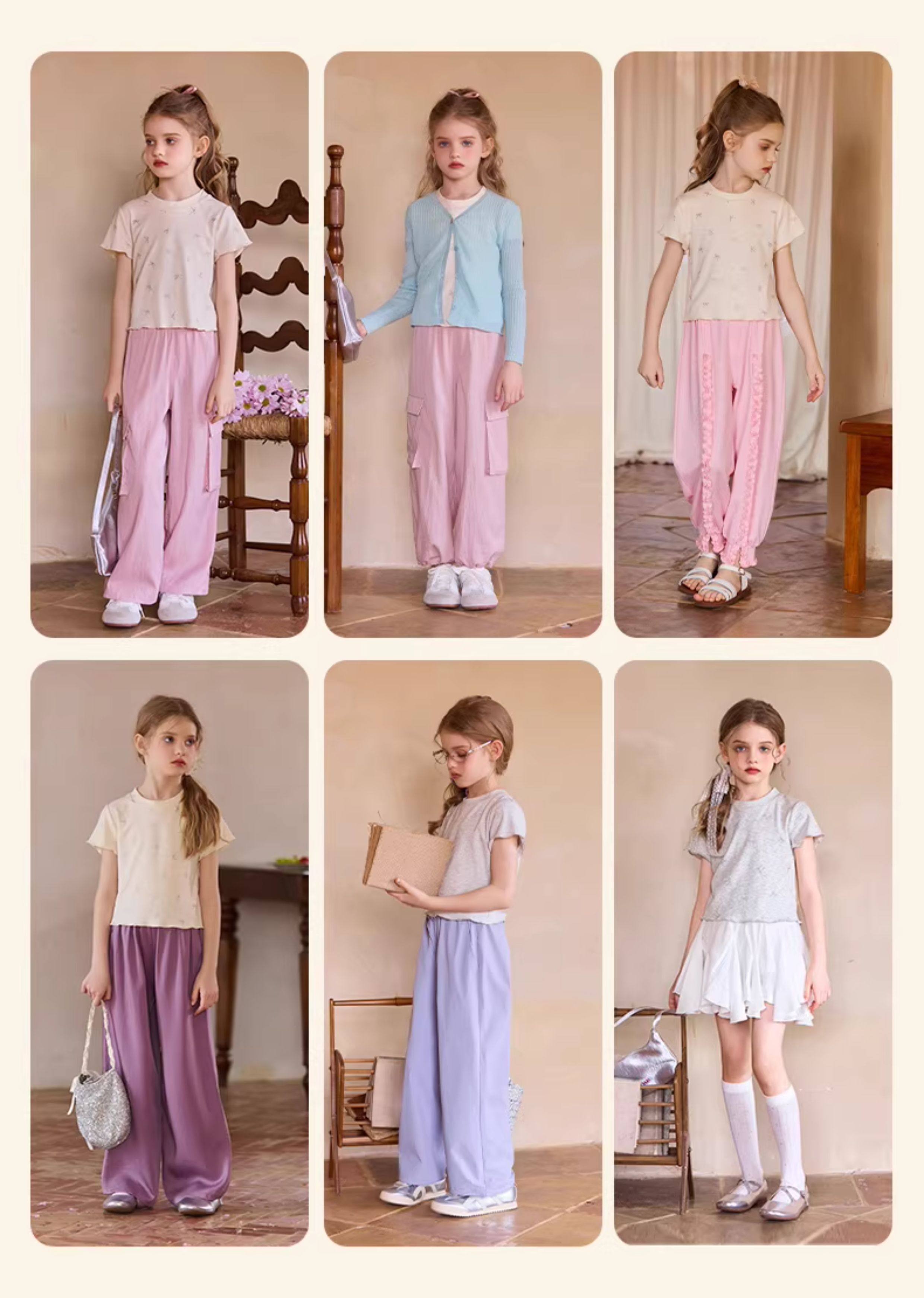 Little Naive女童T恤夏季新款甜美芭蕾風閃閃上衣兒童木耳邊短袖