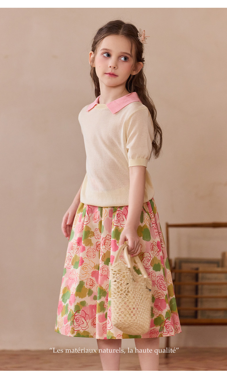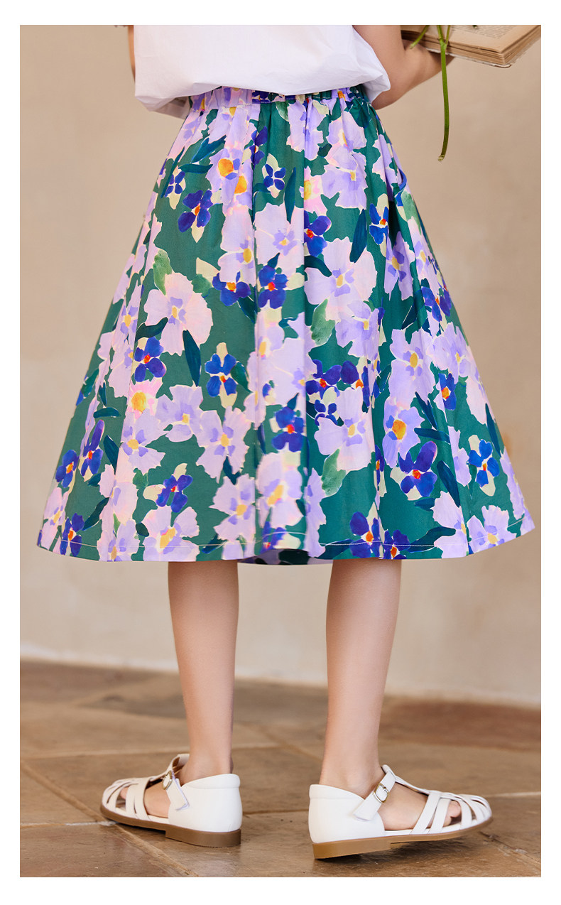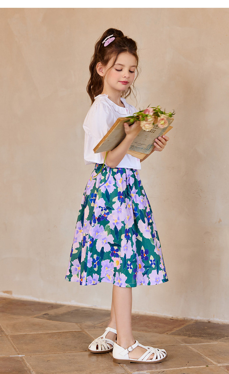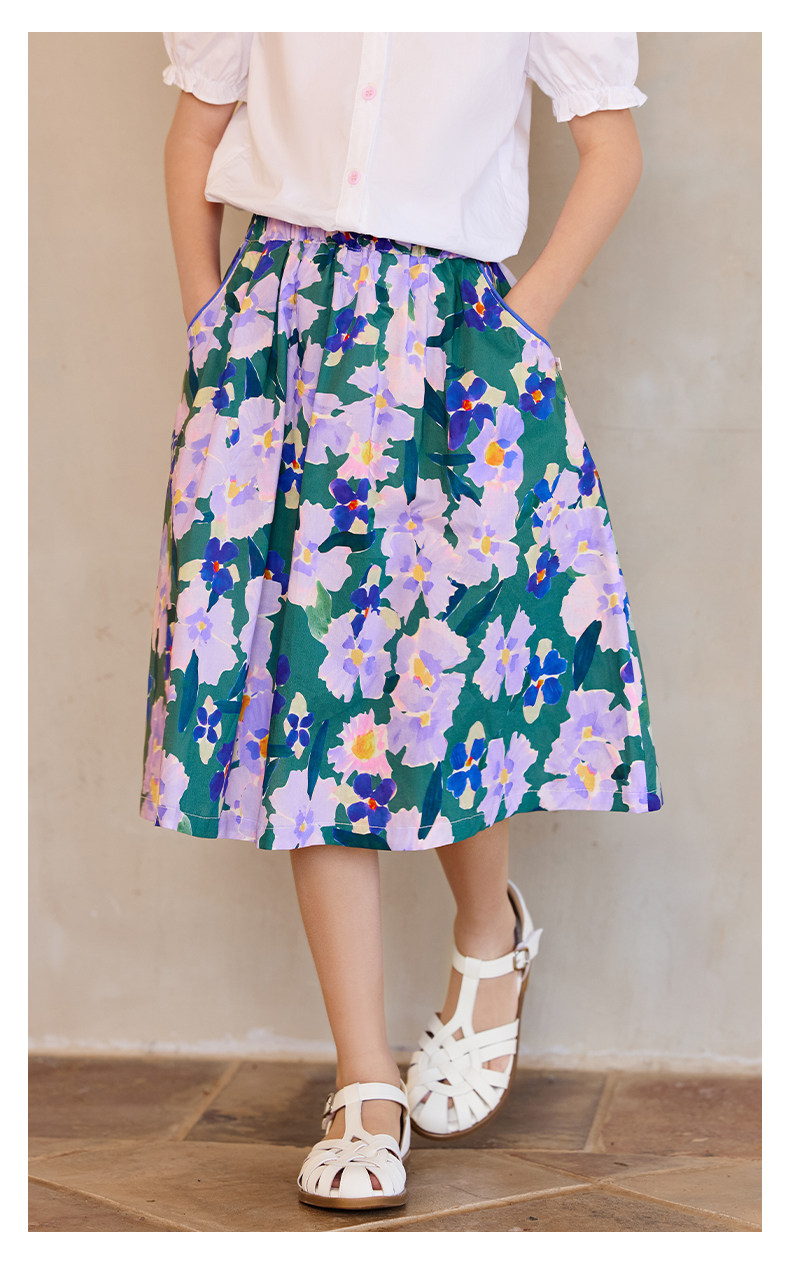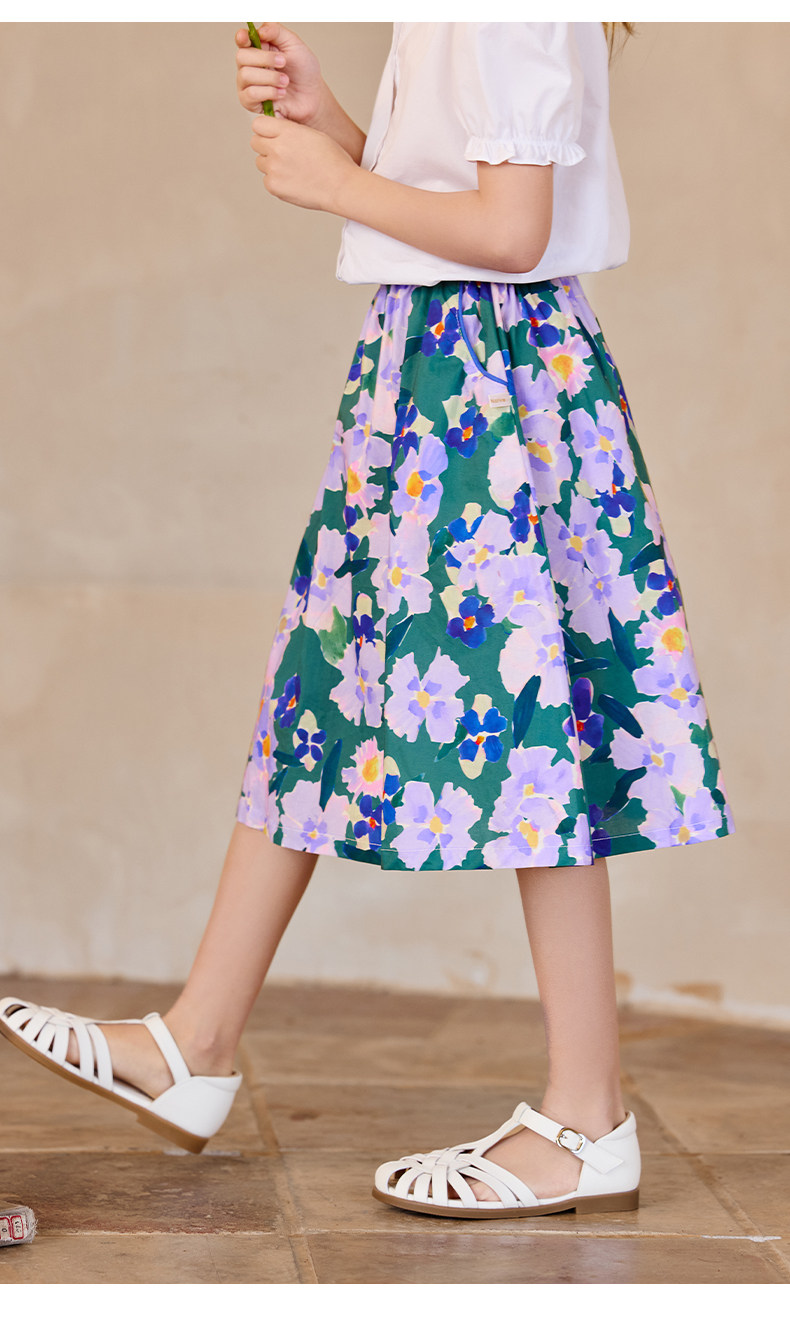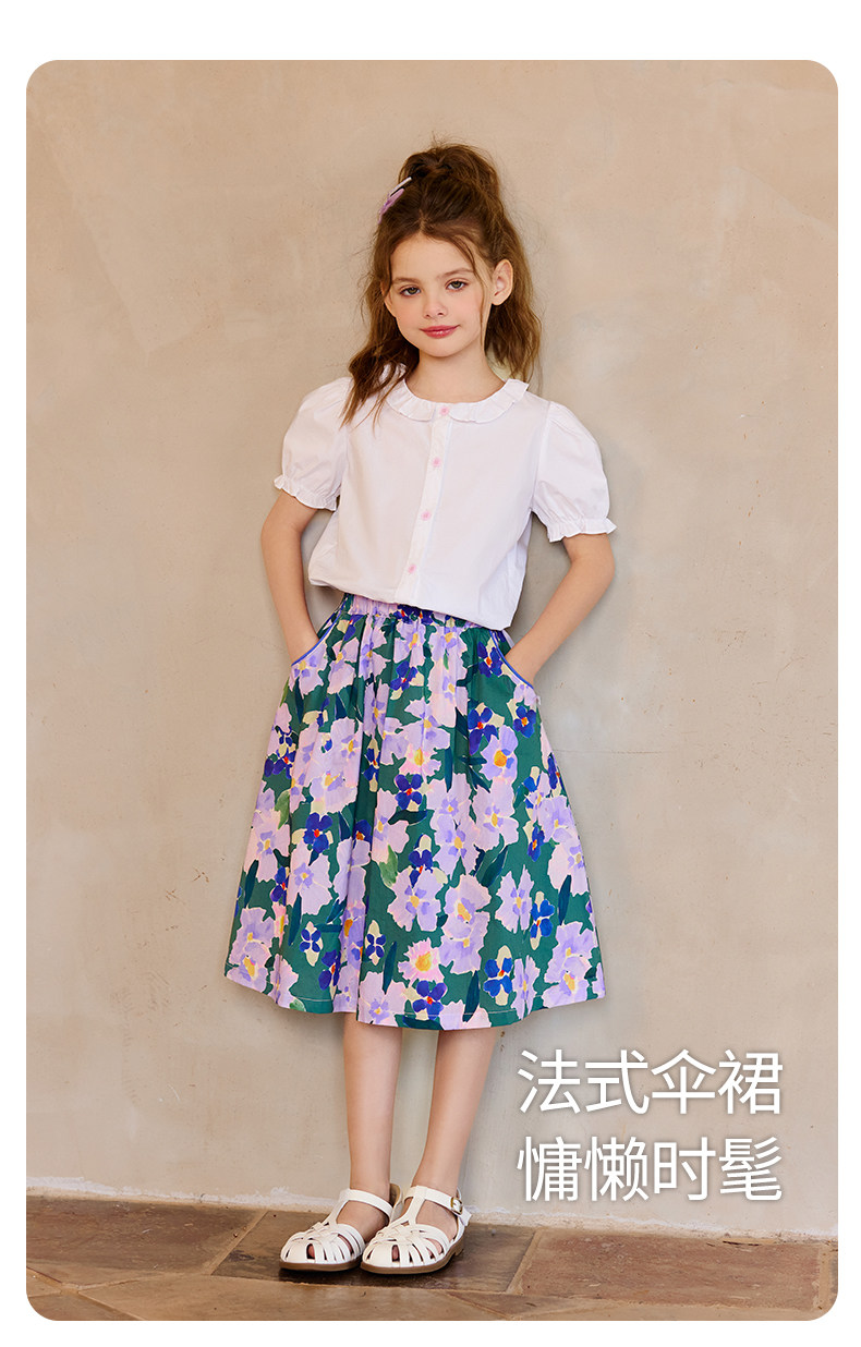 Little Naive女童半身裙春秋新款碎花撞色半裙兒童純棉法式傘裙
