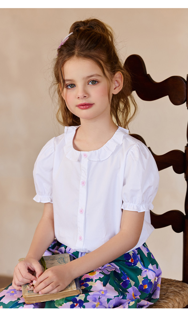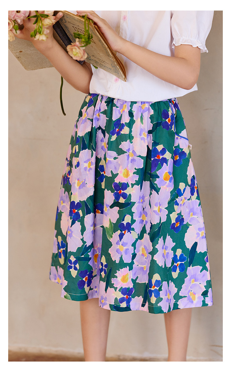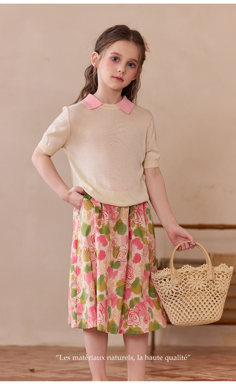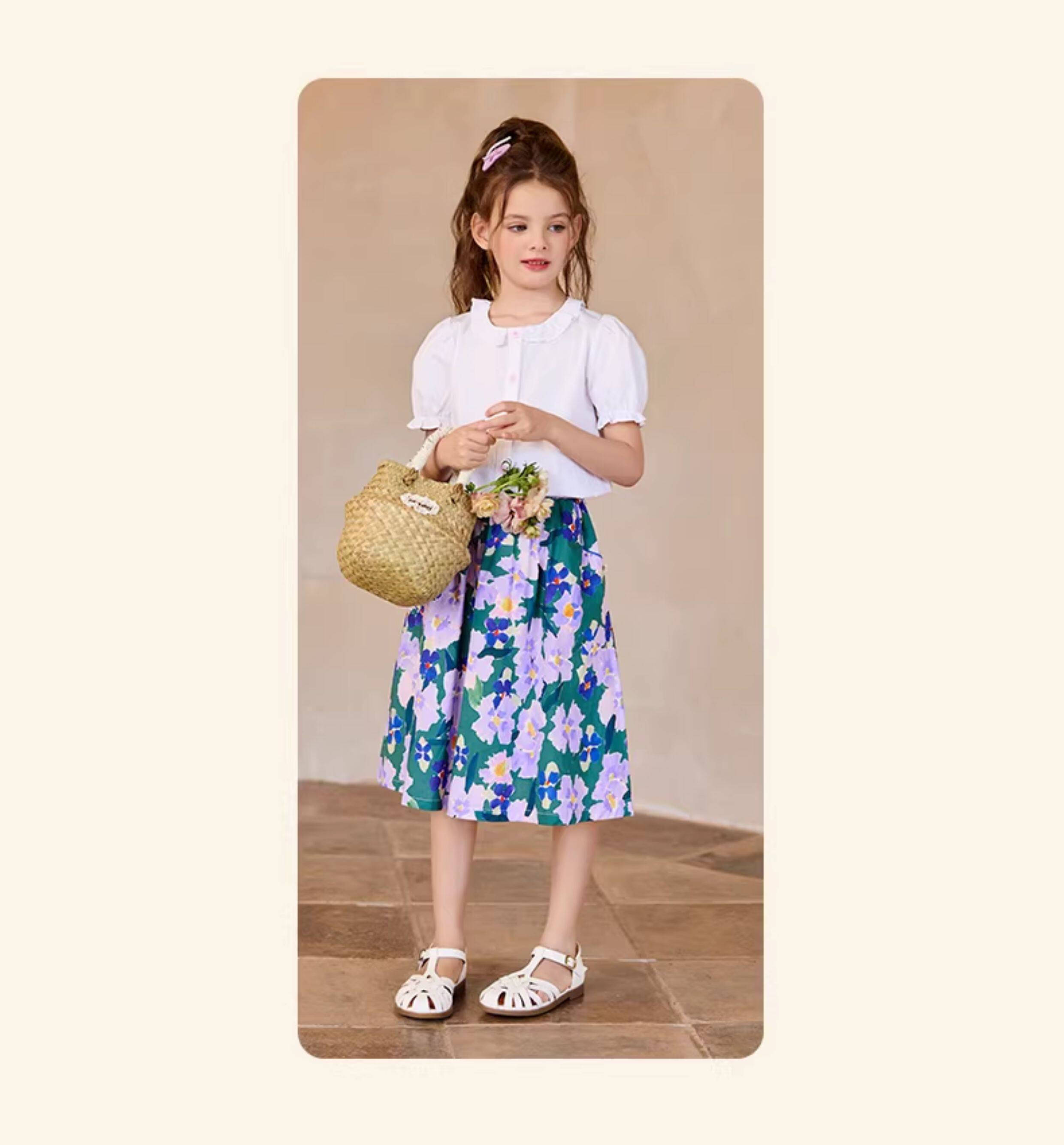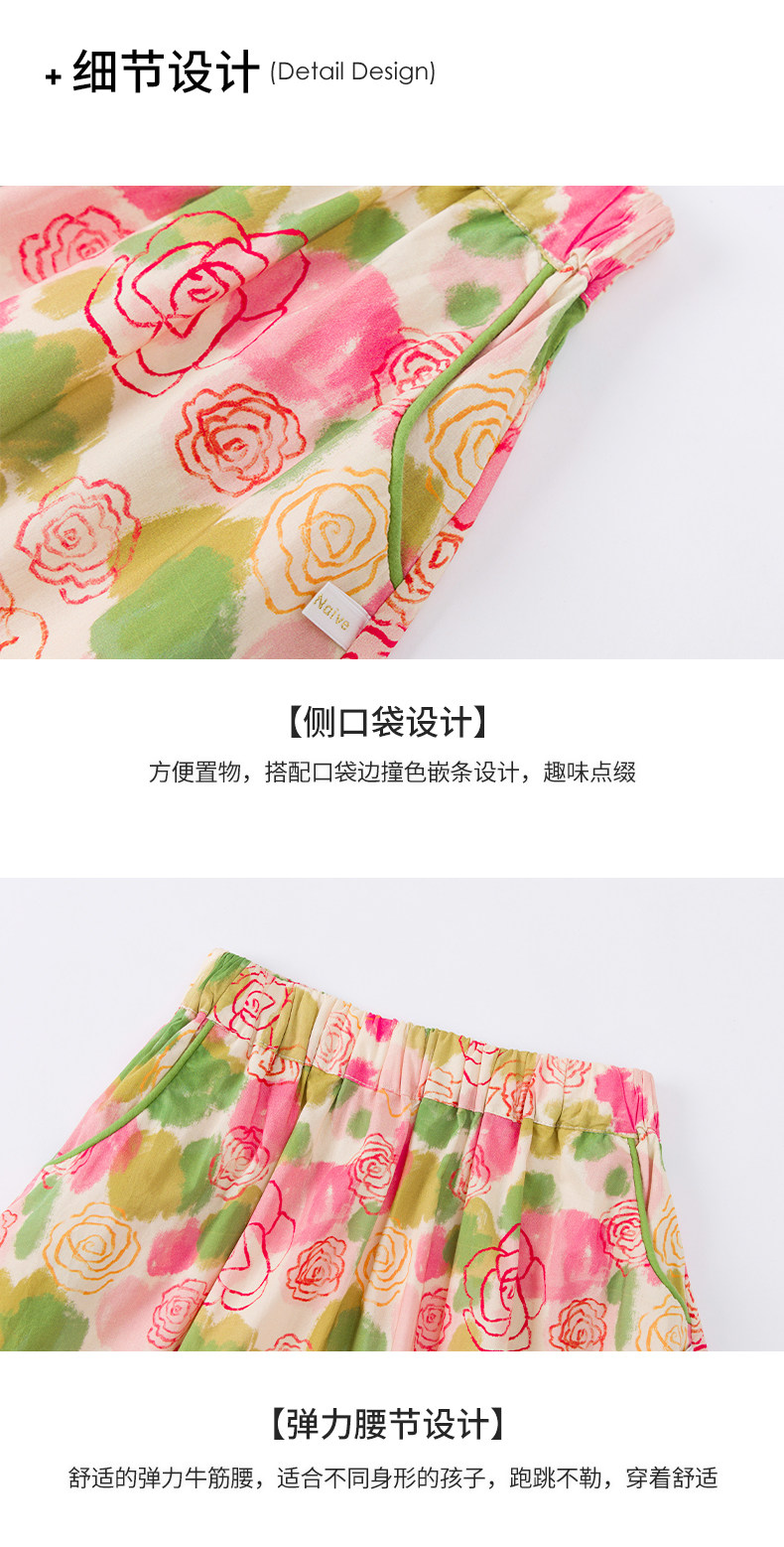 Little Naive女童半身裙春秋新款碎花撞色半裙兒童純棉法式傘裙