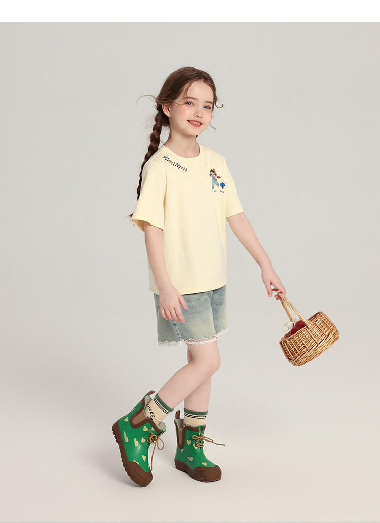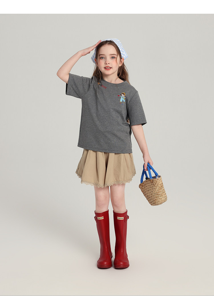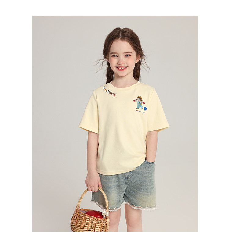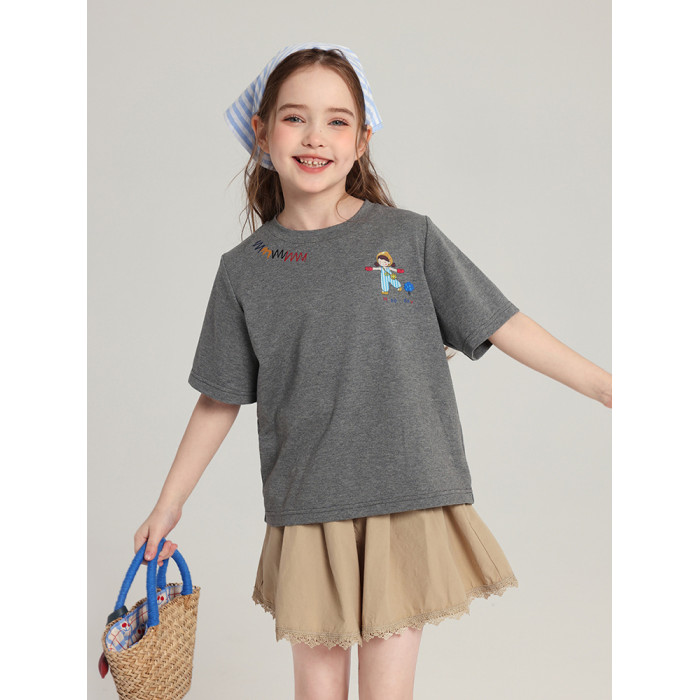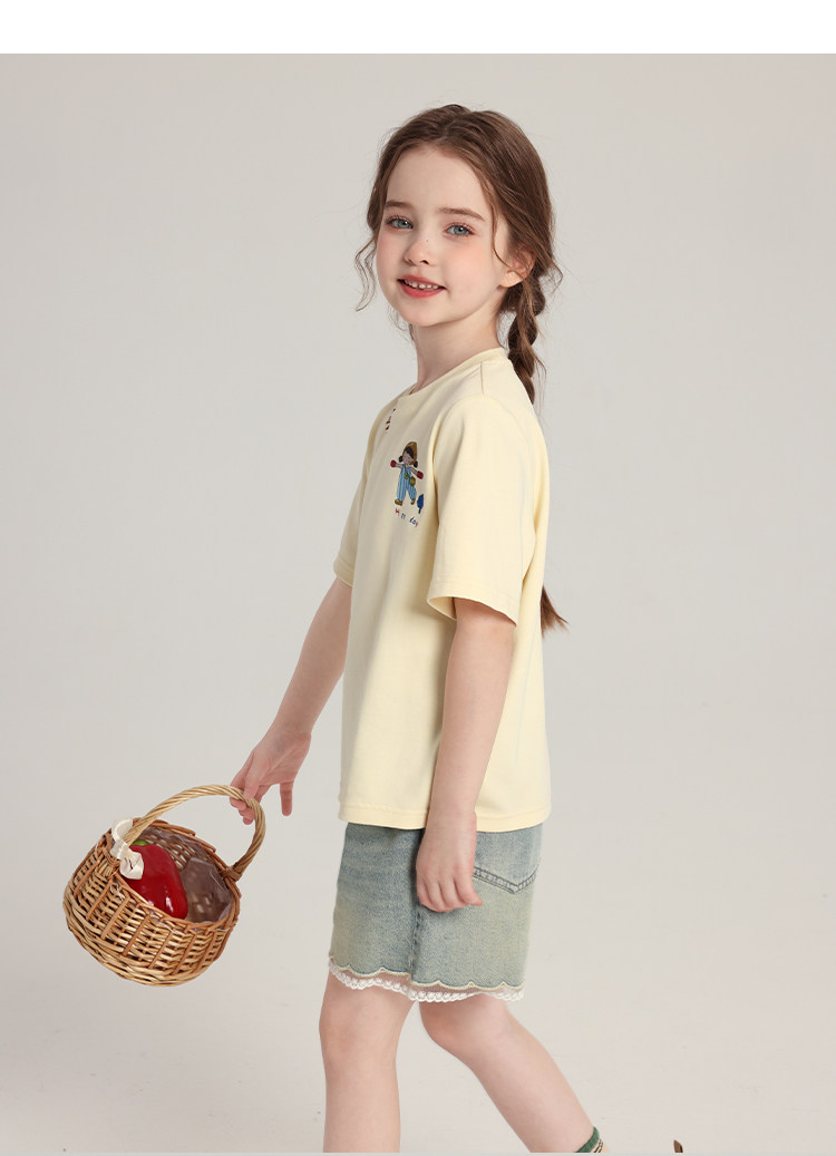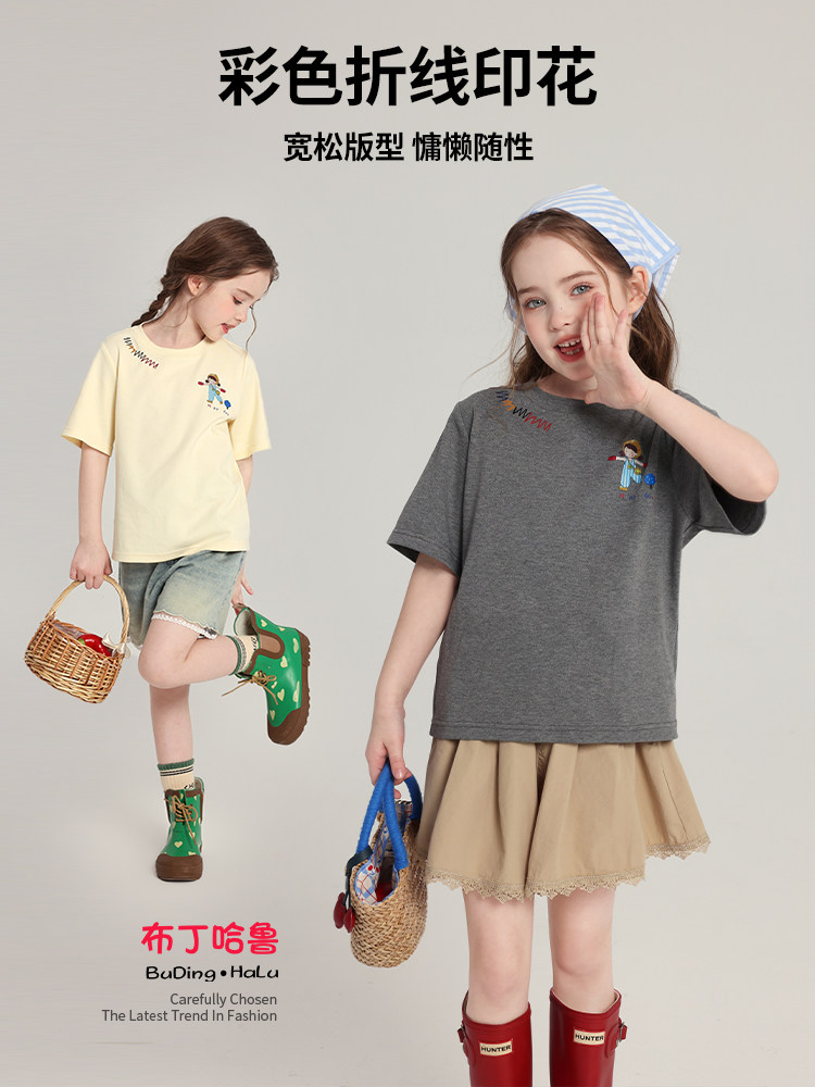 布丁哈魯童裝夏裝女童洋氣短袖2026夏季新款兒童百搭卡通印花T恤