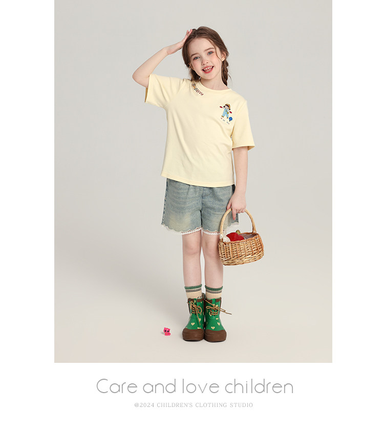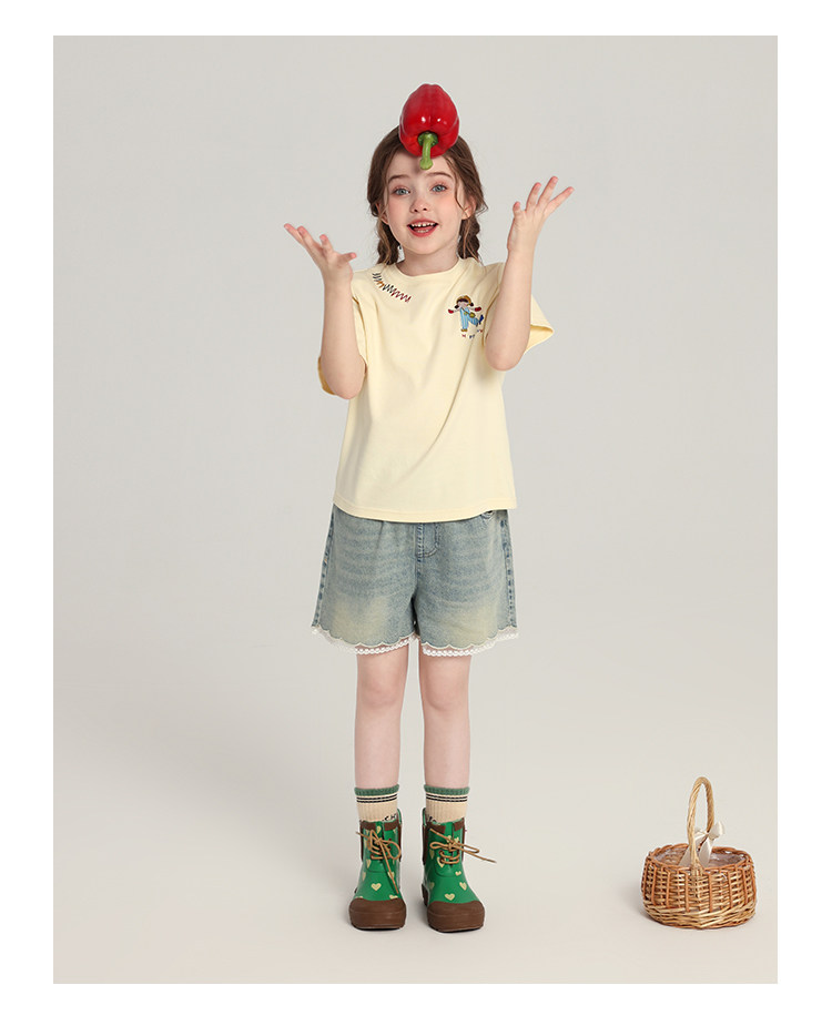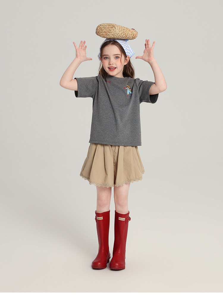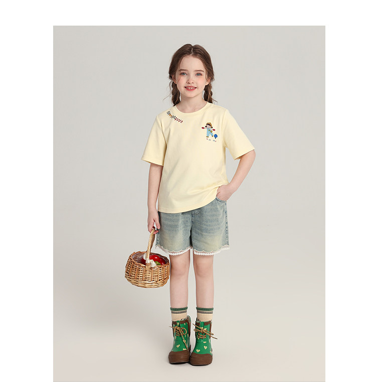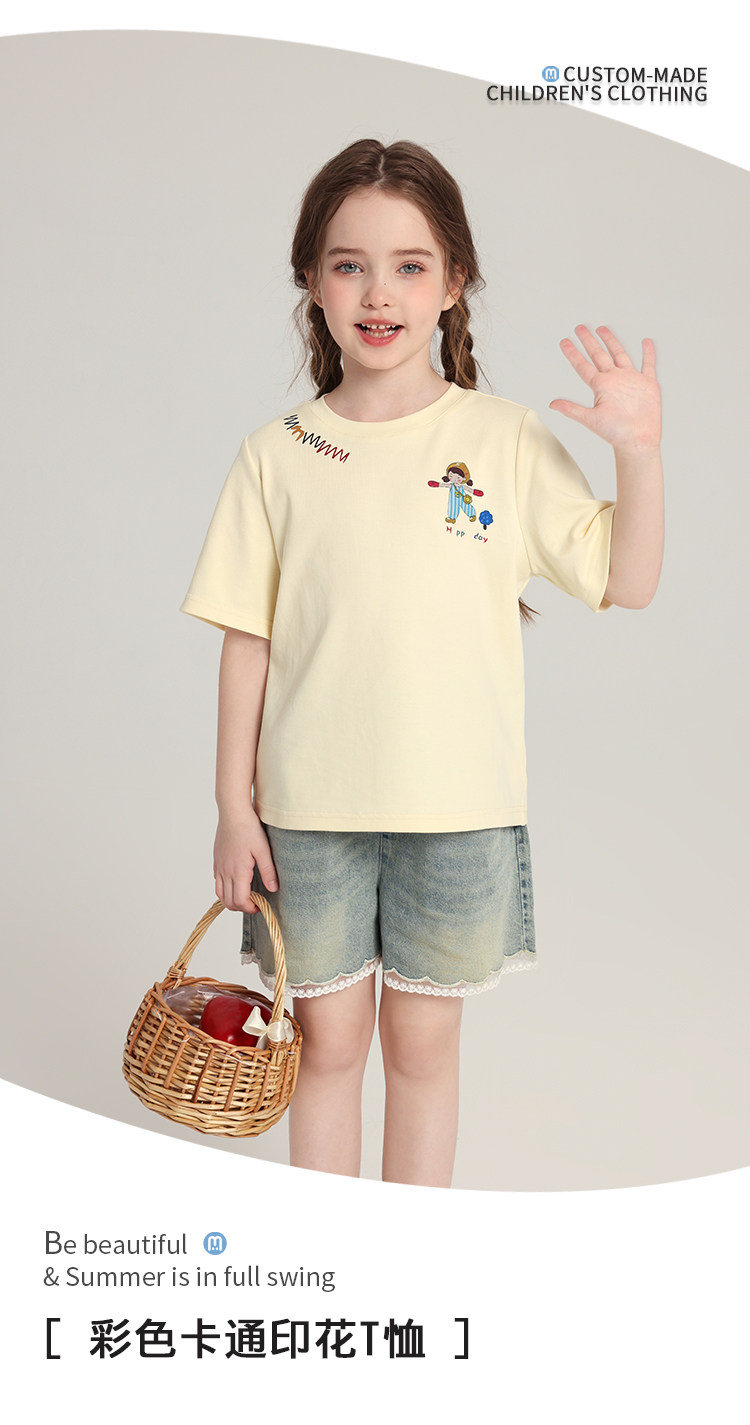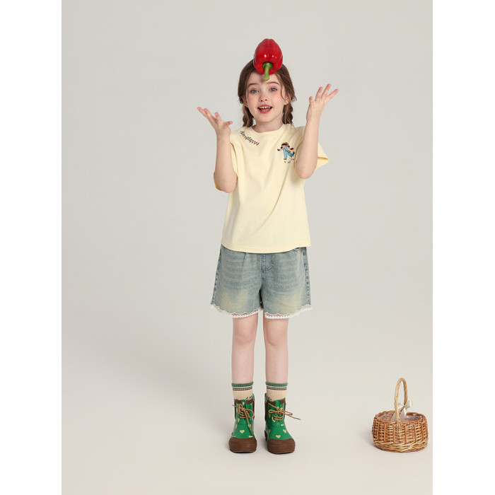 布丁哈魯童裝夏裝女童洋氣短袖2026夏季新款兒童百搭卡通印花T恤