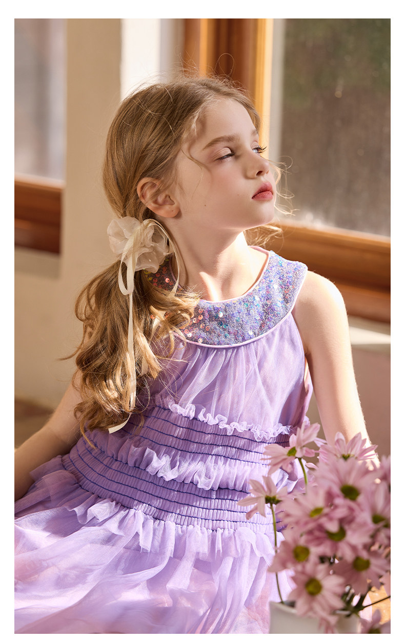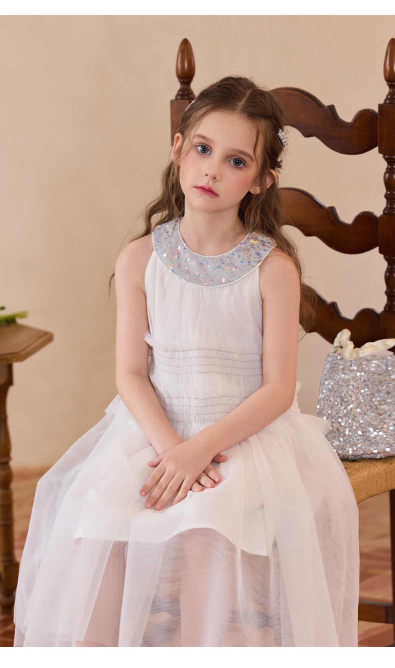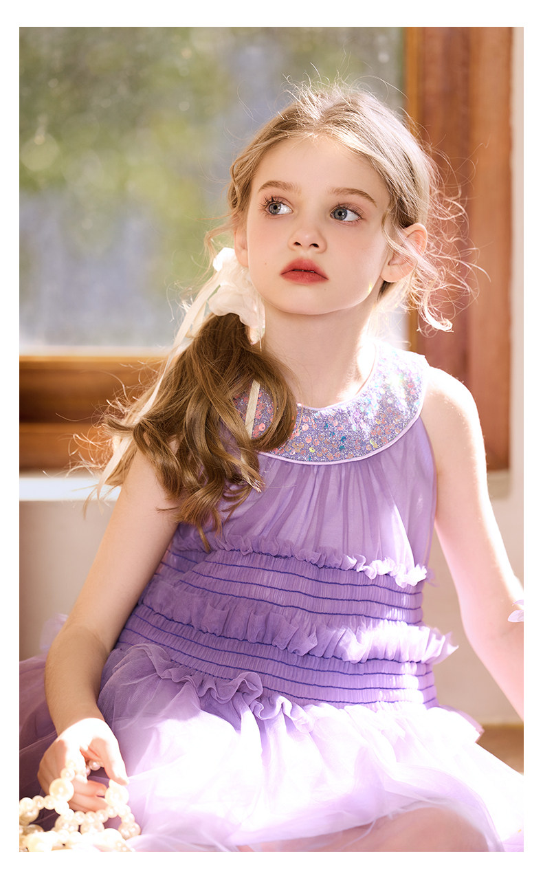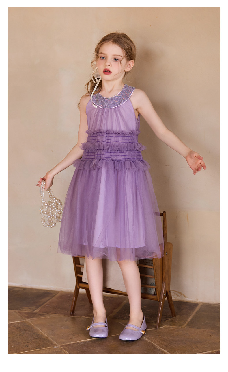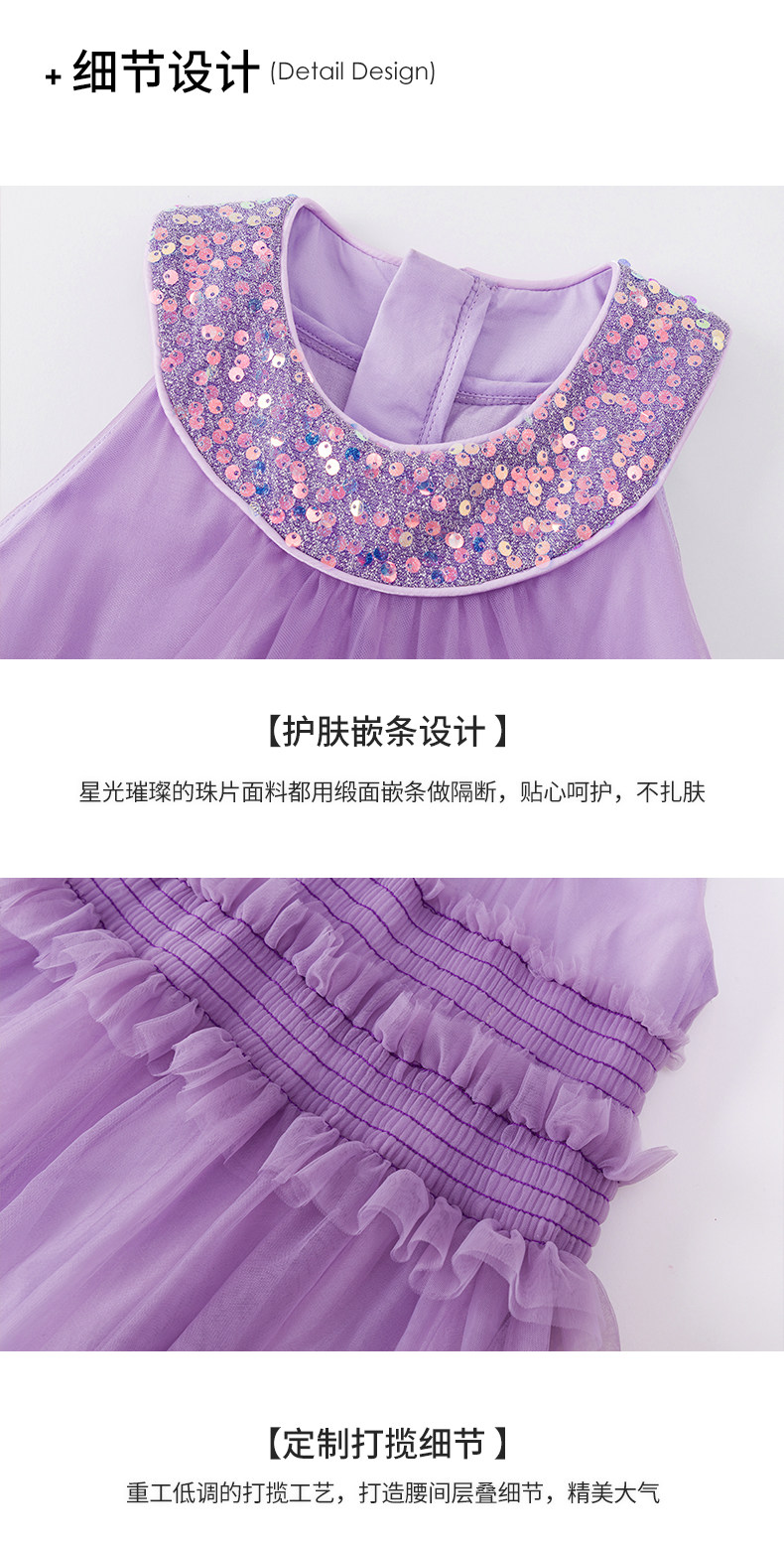 Little Naive女童珠片連衣裙夏季新款打攬甜美裙子兒童公主背心裙