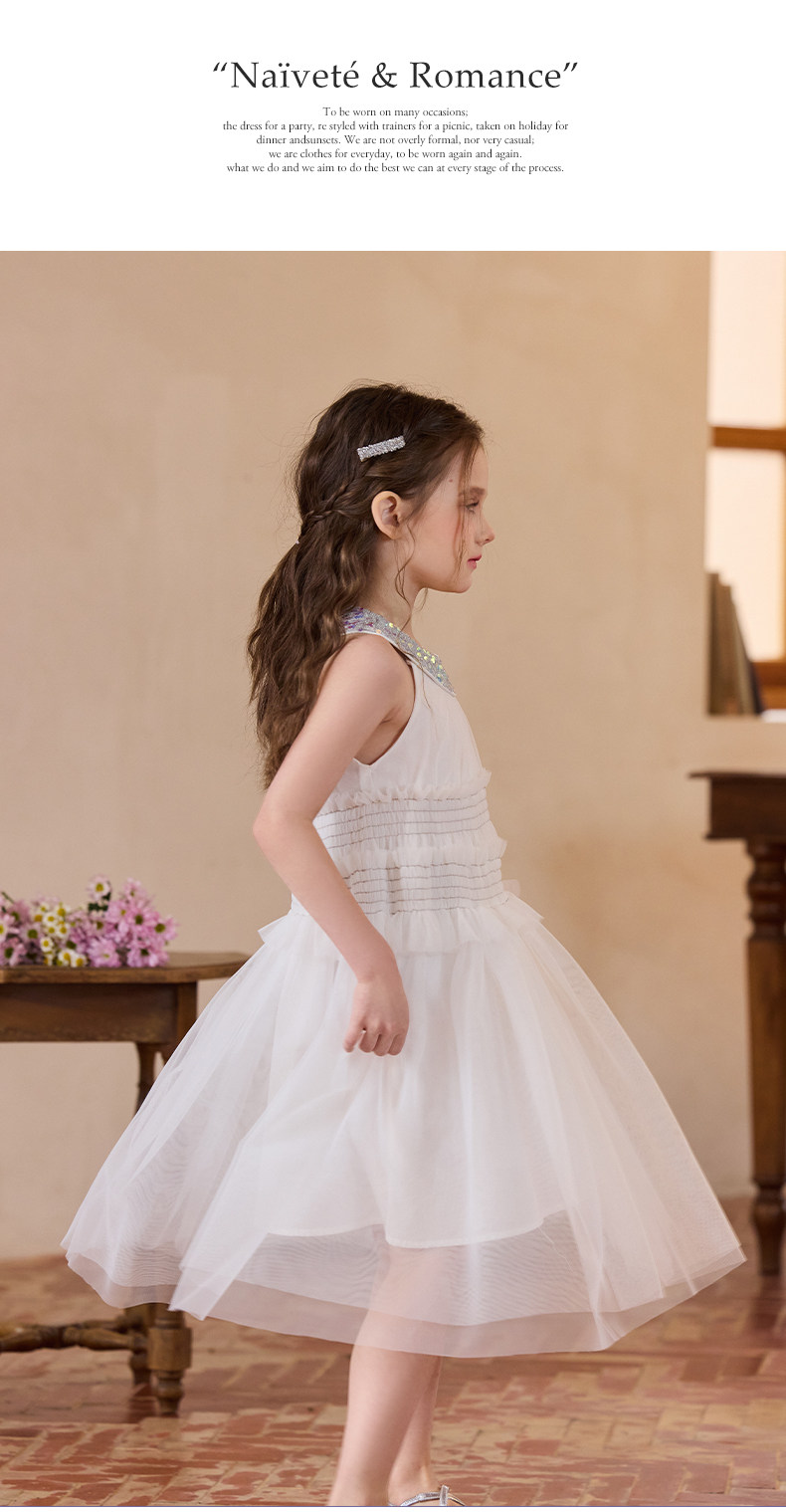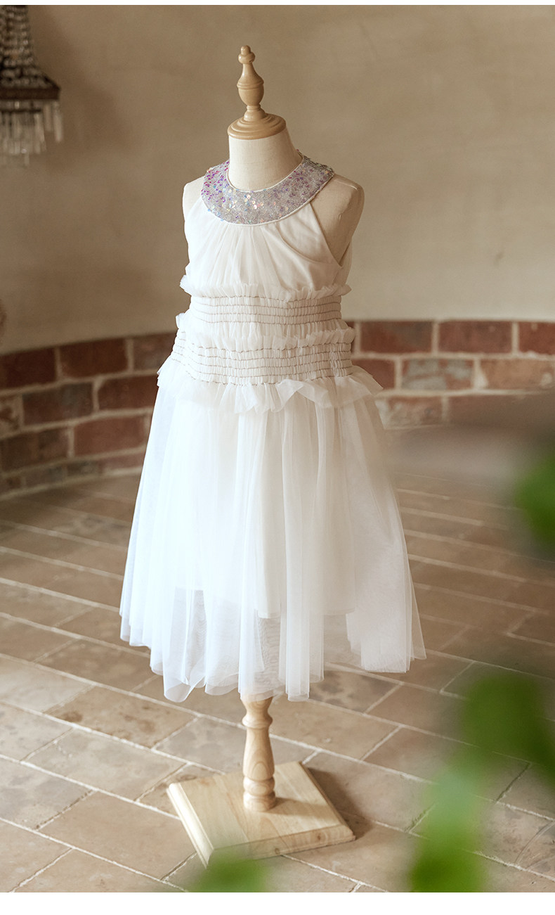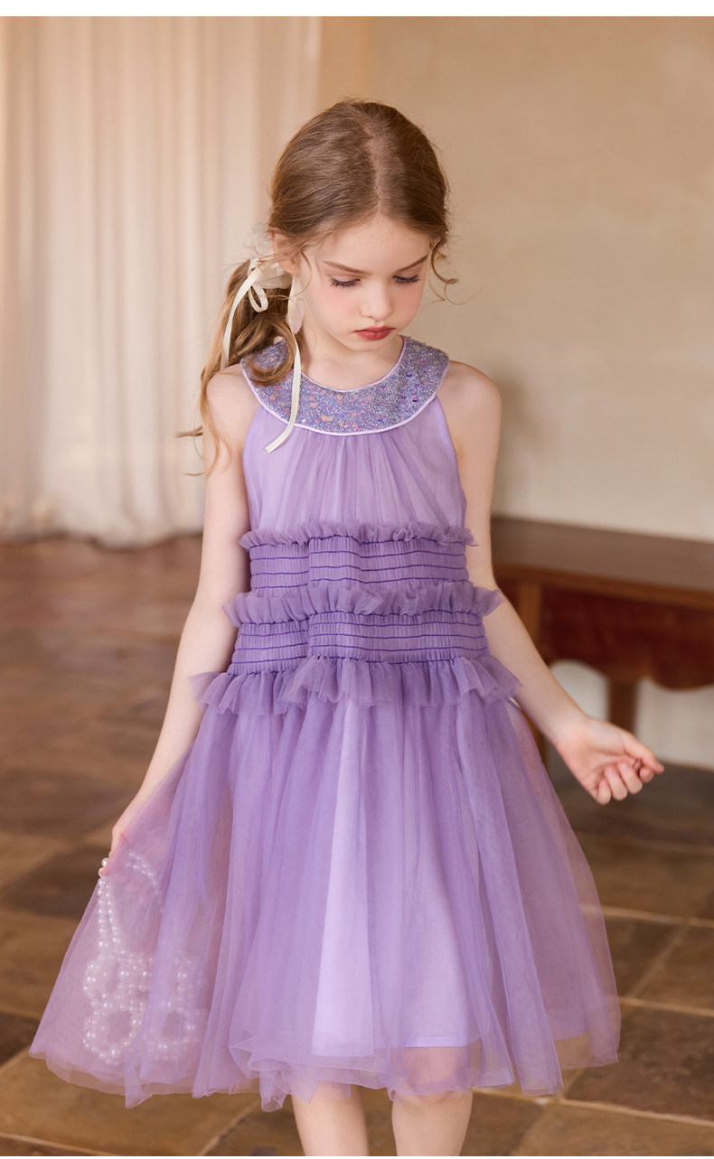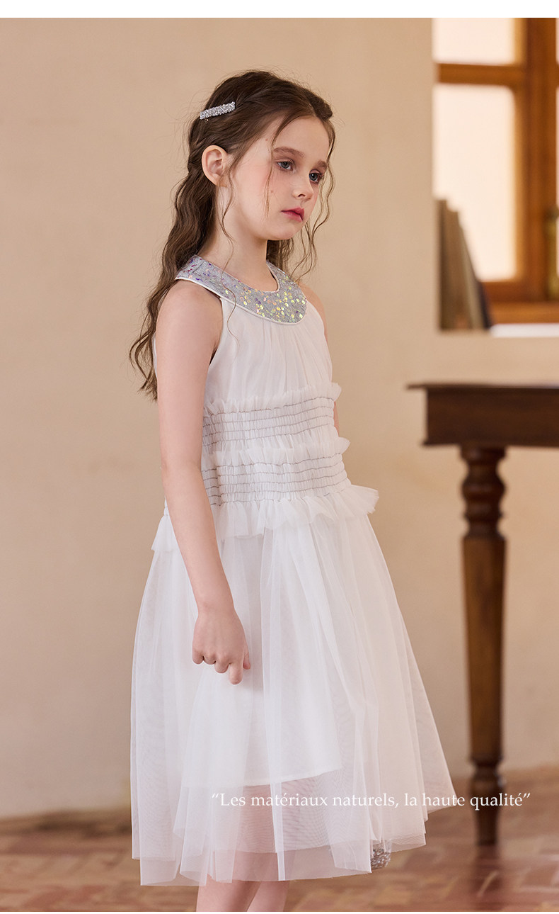 Little Naive女童珠片連衣裙夏季新款打攬甜美裙子兒童公主背心裙