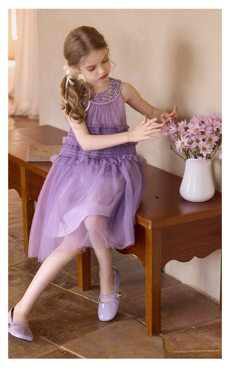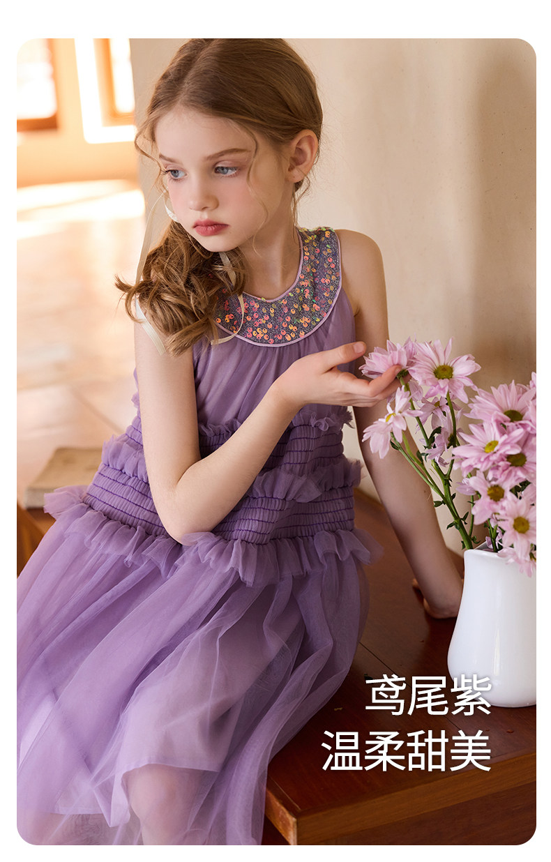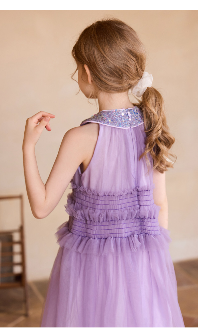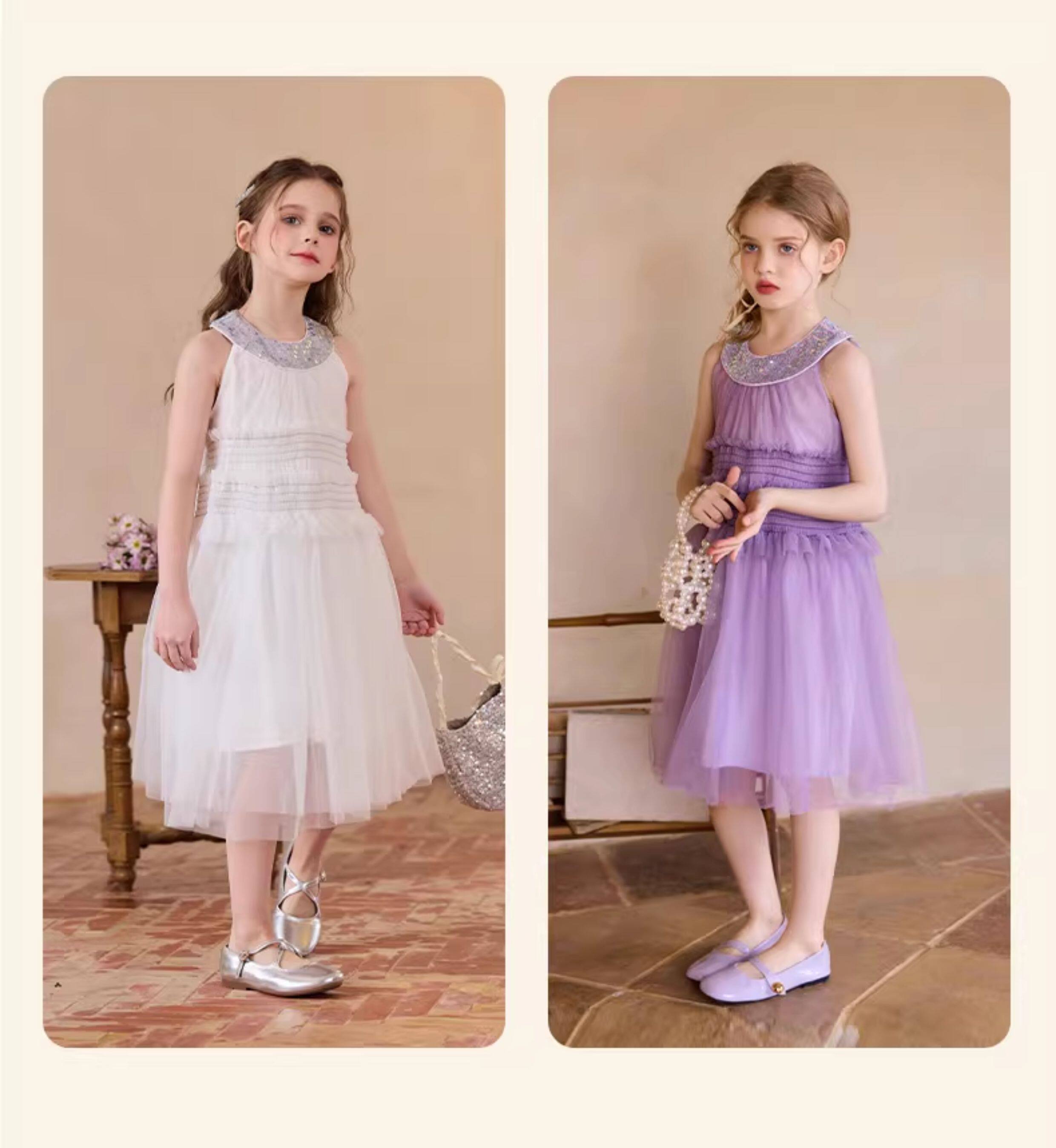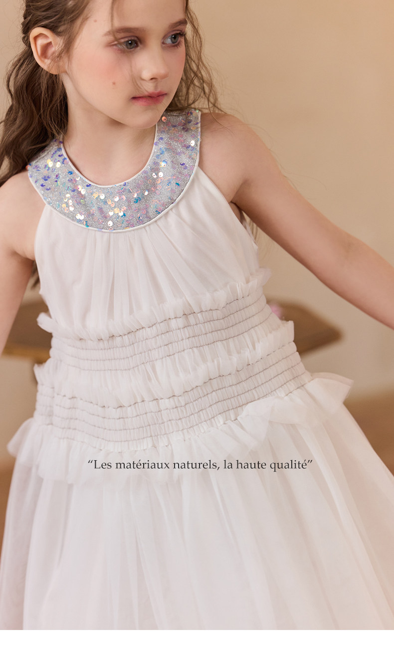 Little Naive女童珠片連衣裙夏季新款打攬甜美裙子兒童公主背心裙