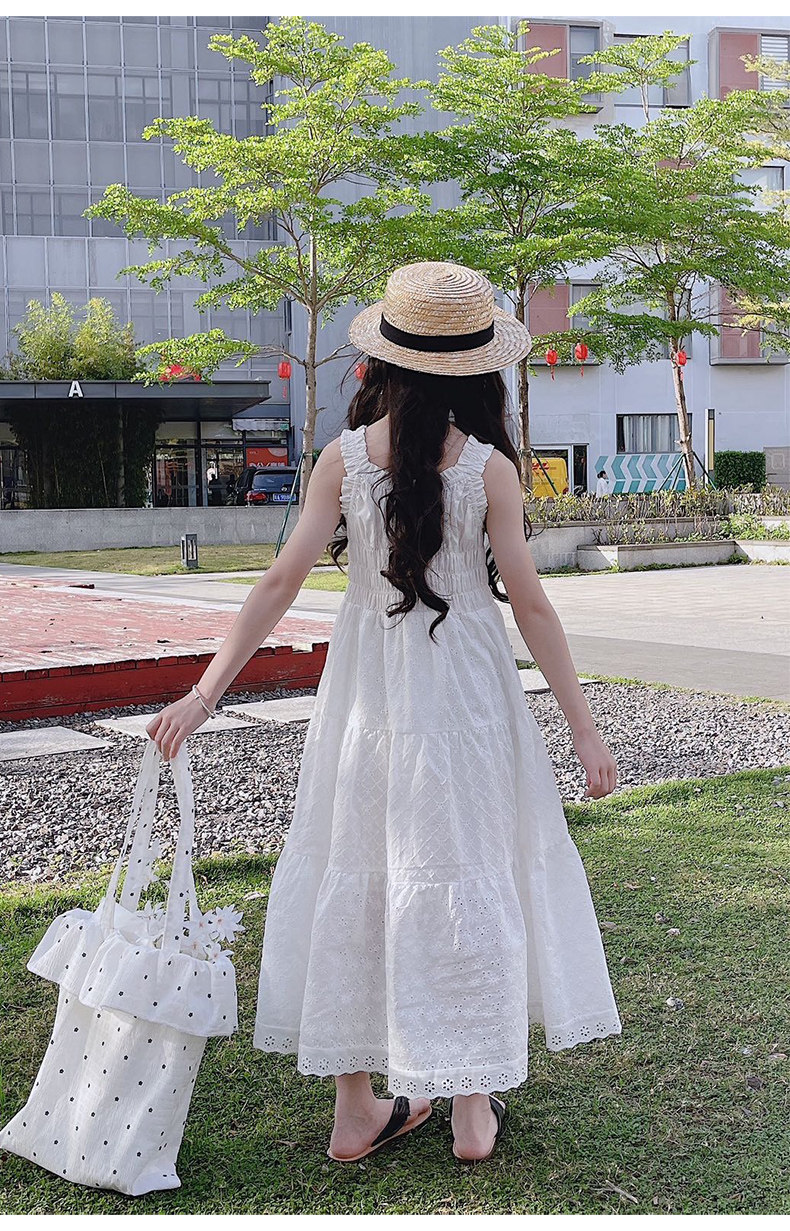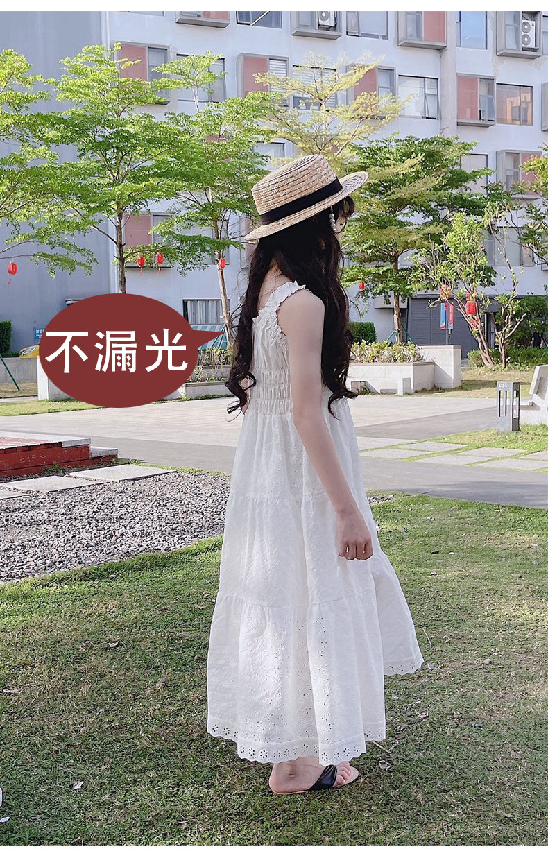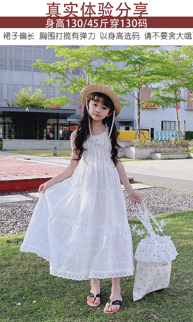女童連衣裙夏季白色長款吊帶裙高級感公主裙大童海邊度假超仙長裙
