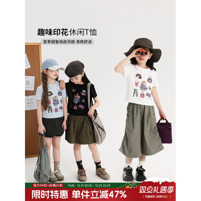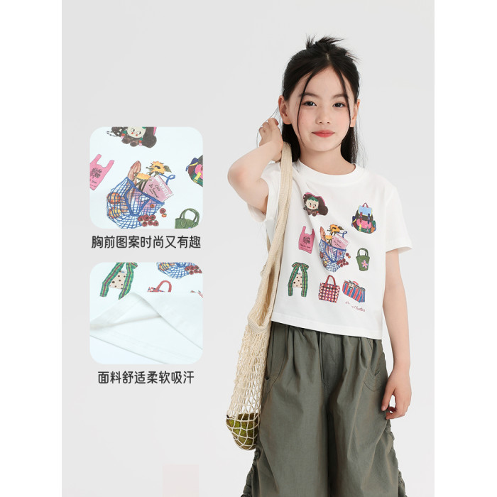 布丁哈魯童裝夏裝女童印花短袖2026夏季新款兒童甜美洋氣百搭T恤