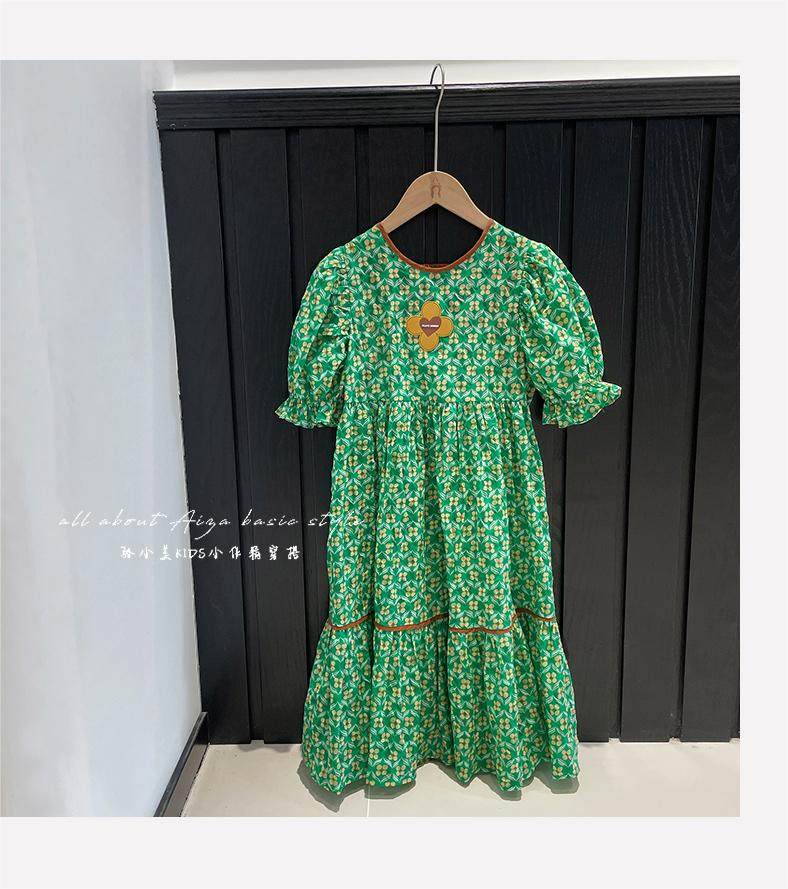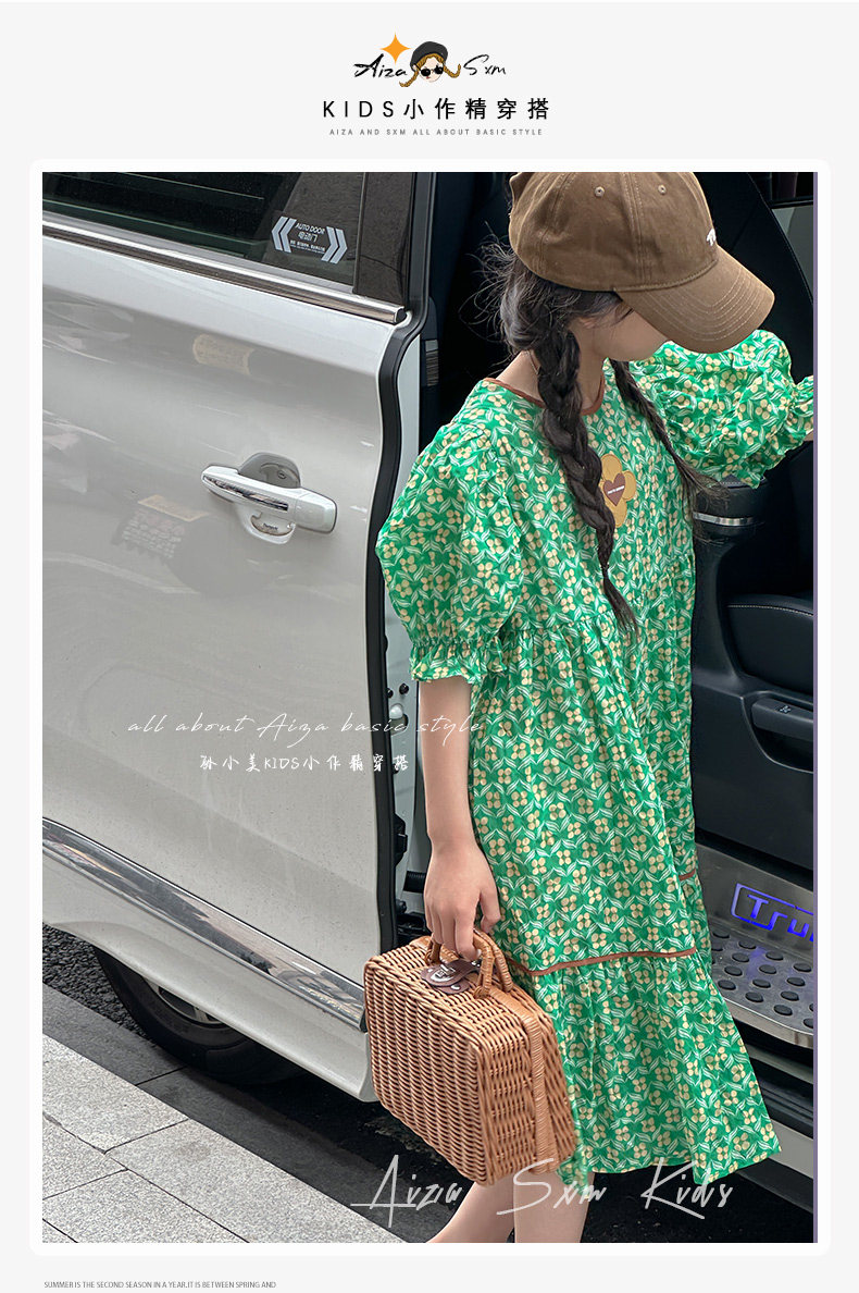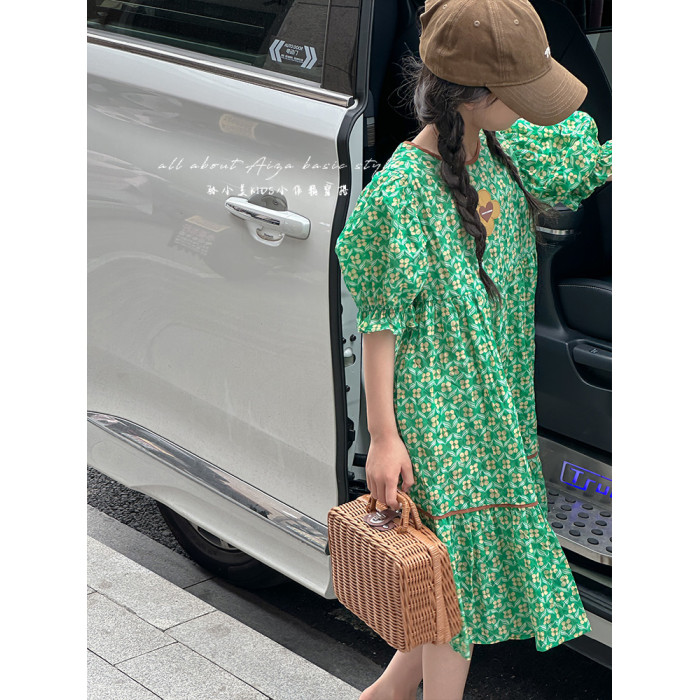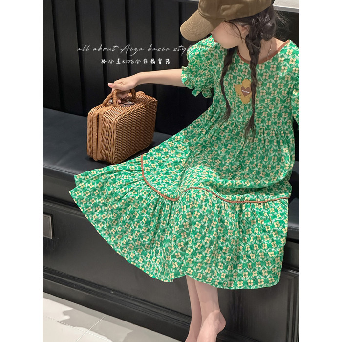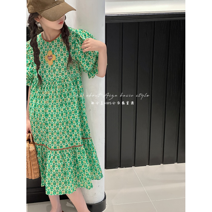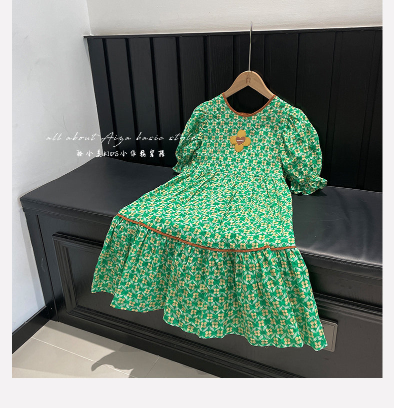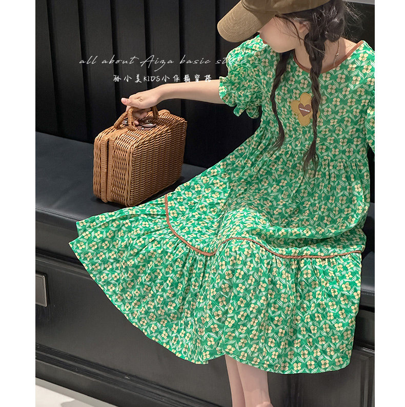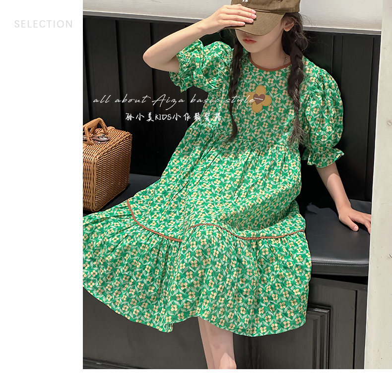 高級雕印女童連衣裙兒童泡泡短袖裙子2025夏裝新款韓國童裝公主裙