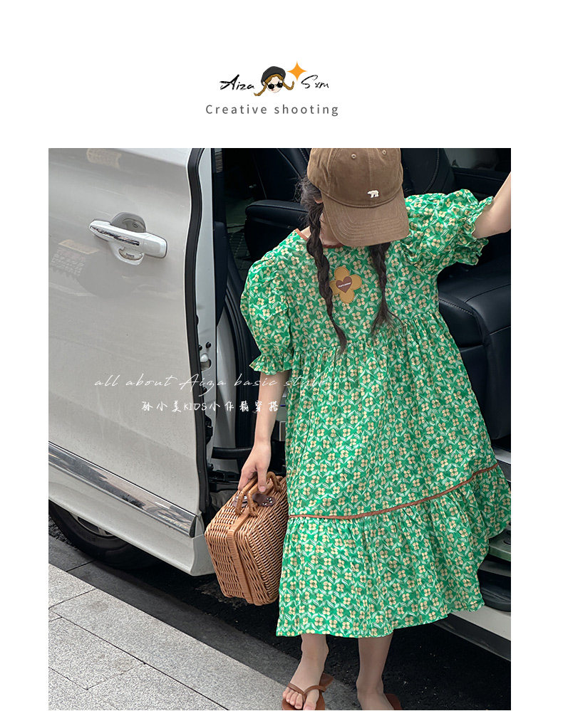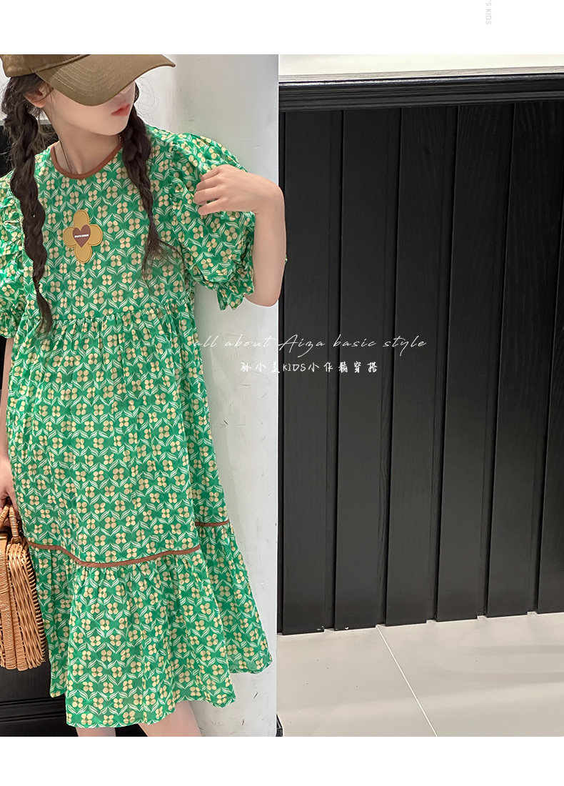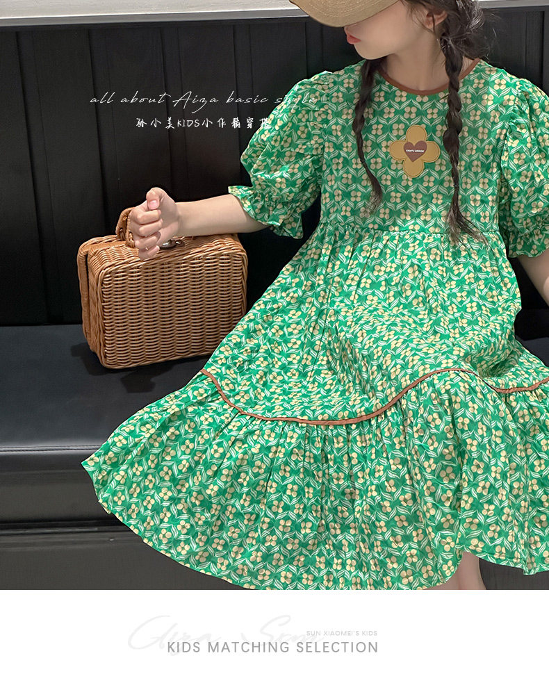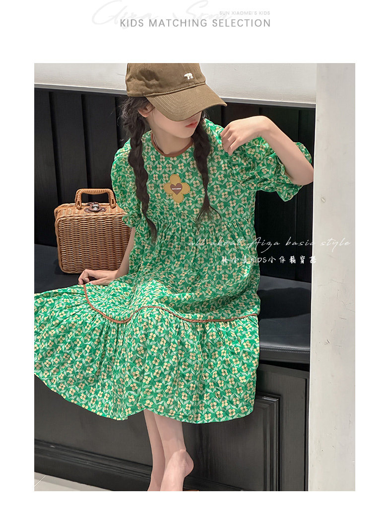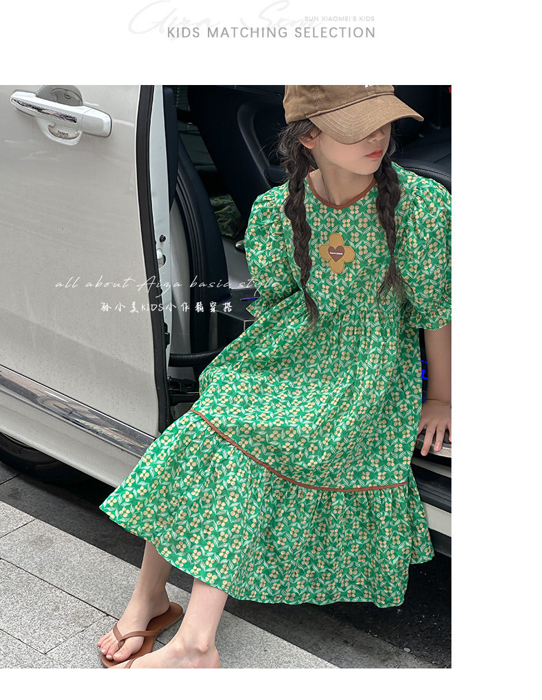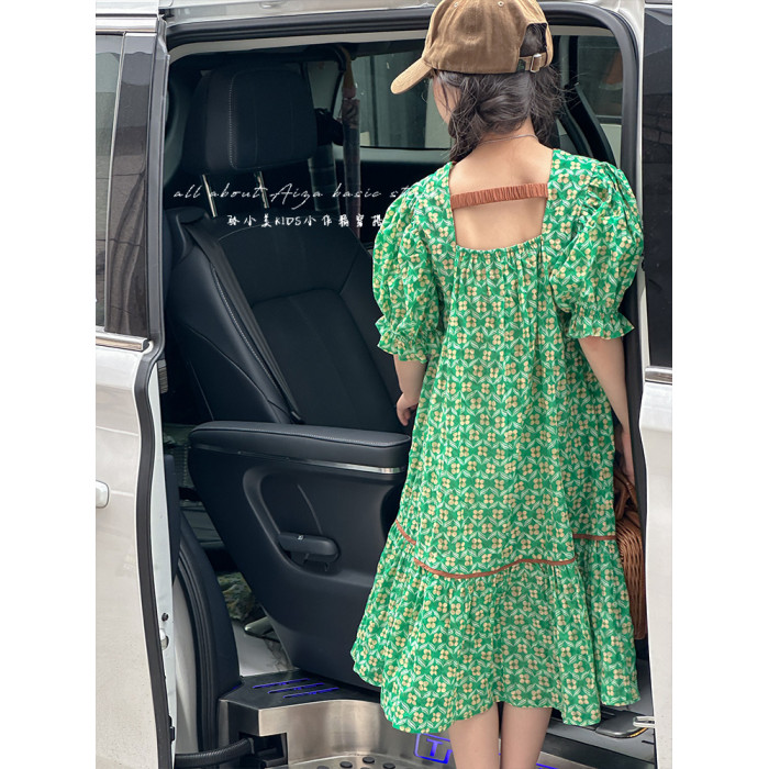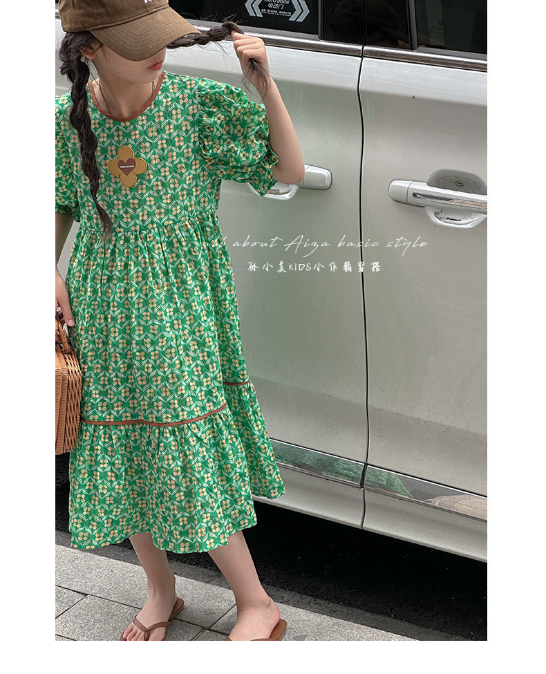 高級雕印女童連衣裙兒童泡泡短袖裙子2025夏裝新款韓國童裝公主裙