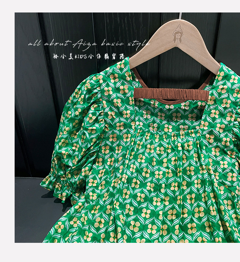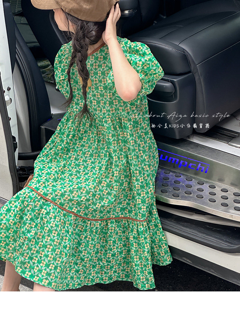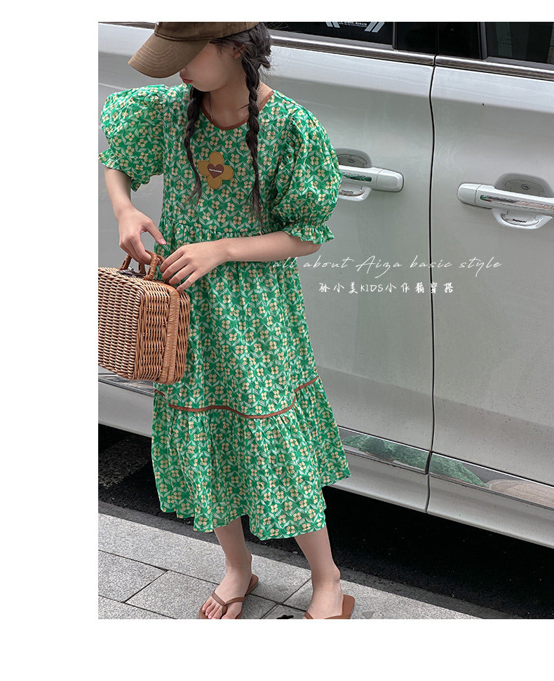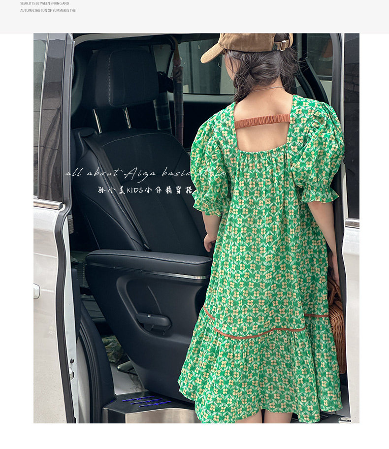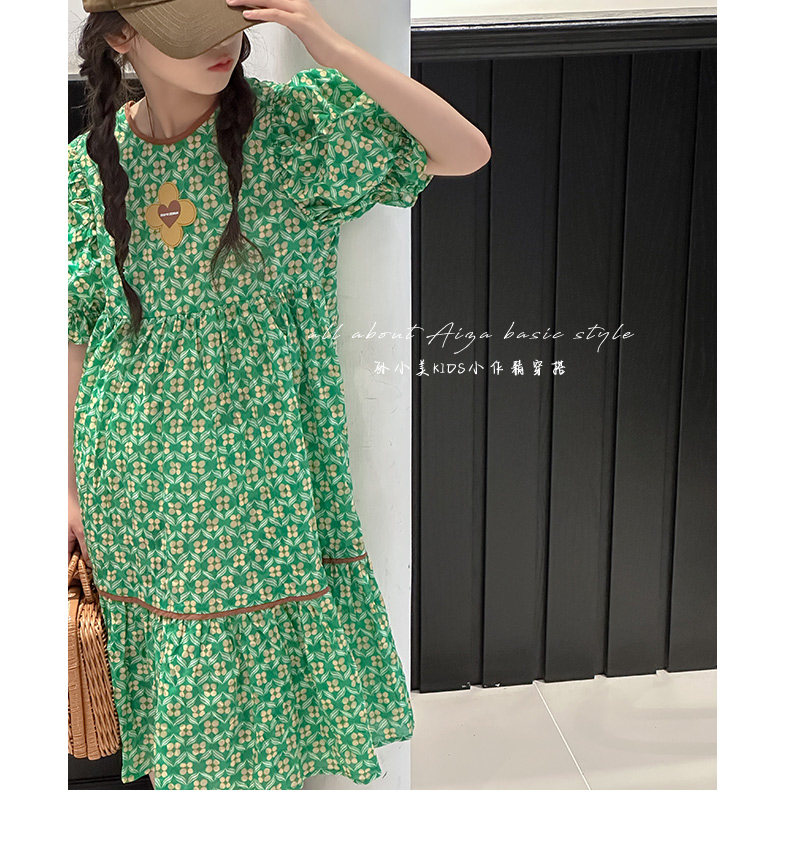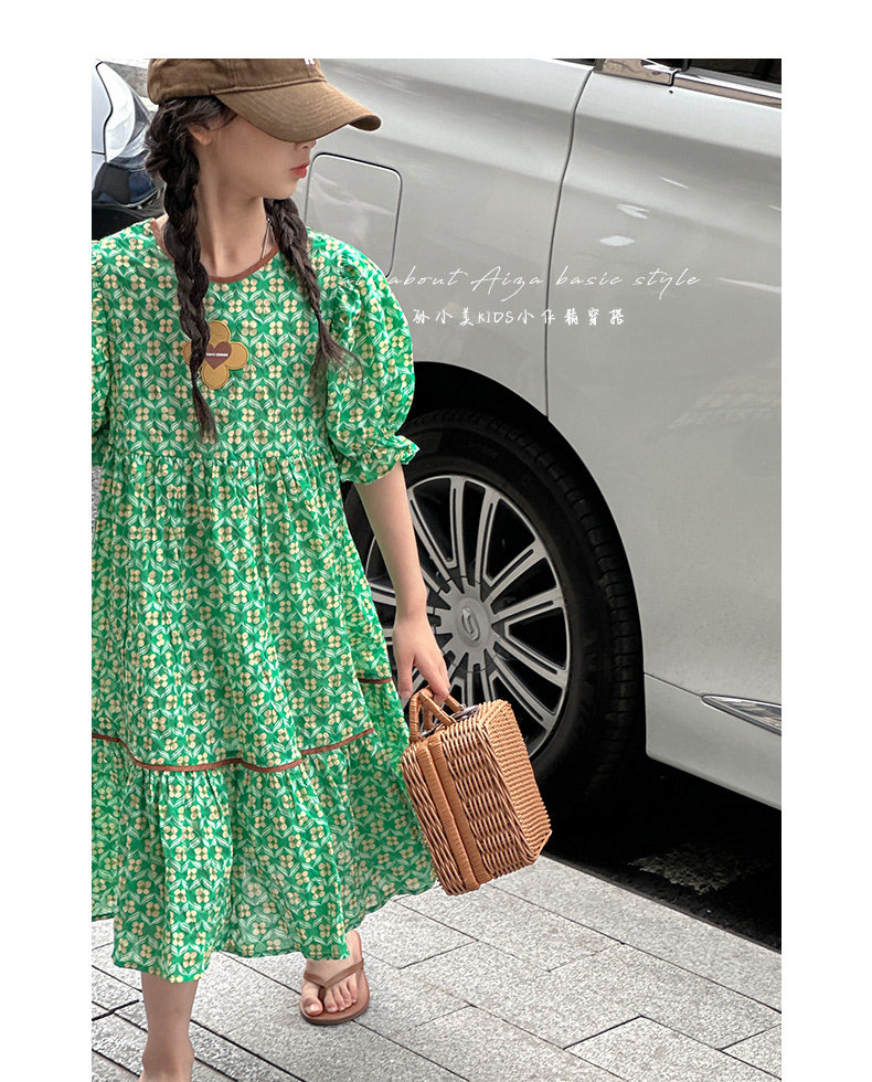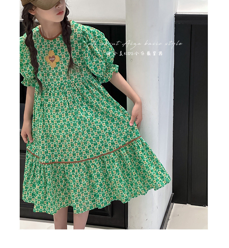 高級雕印女童連衣裙兒童泡泡短袖裙子2025夏裝新款韓國童裝公主裙