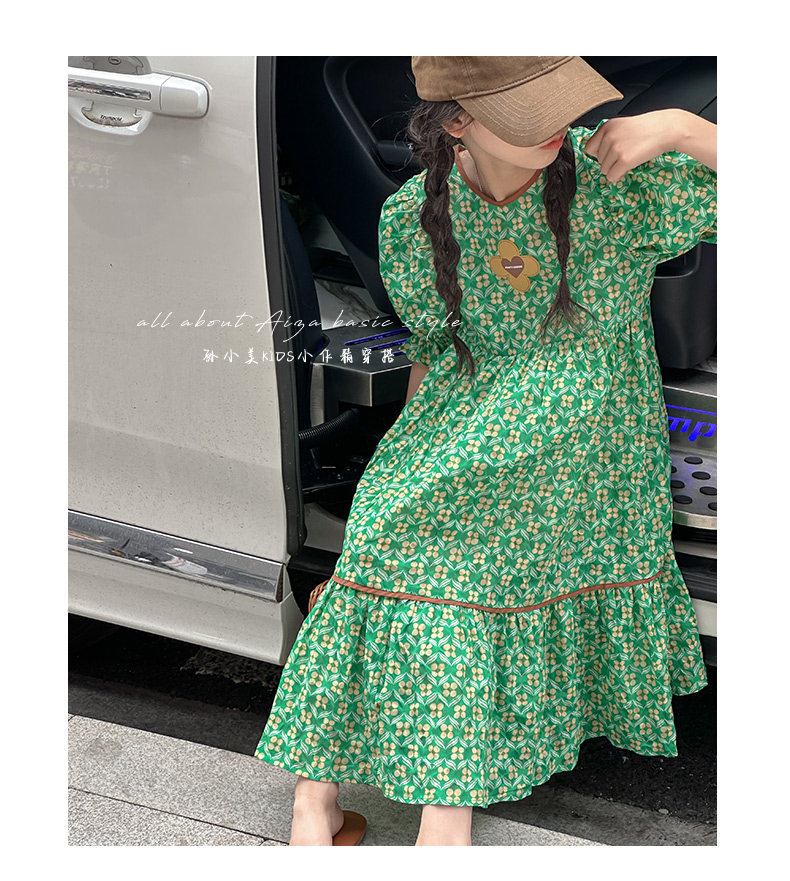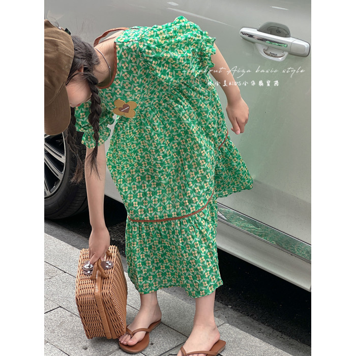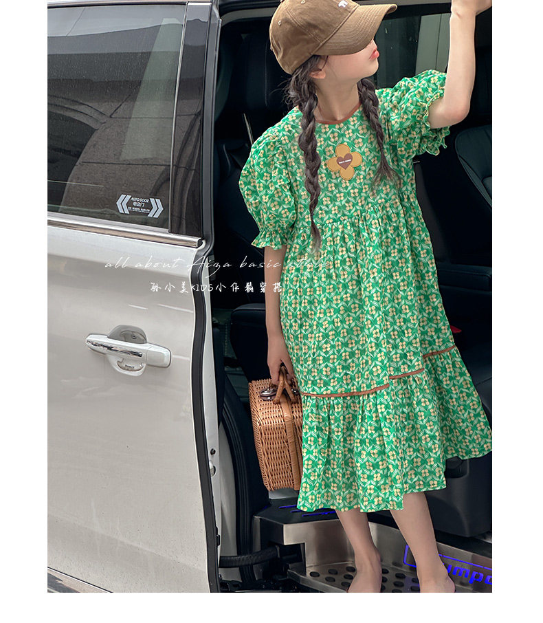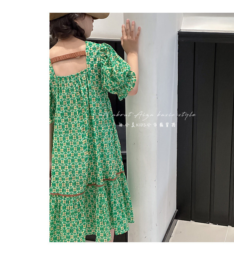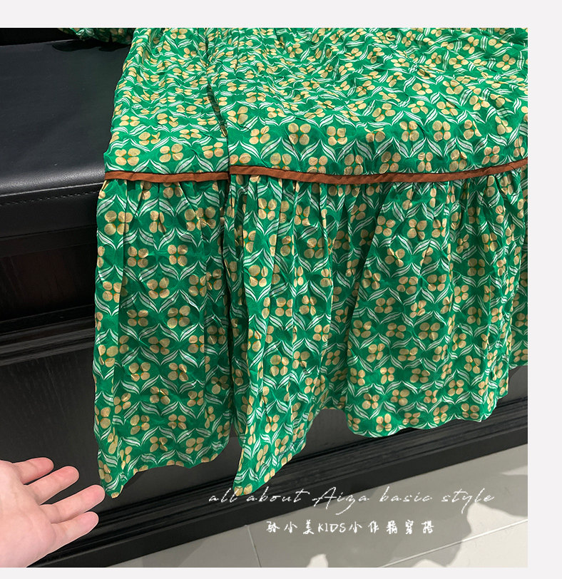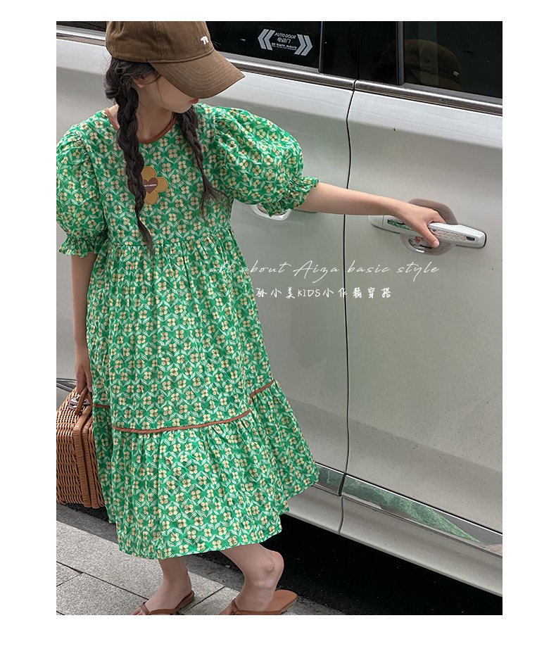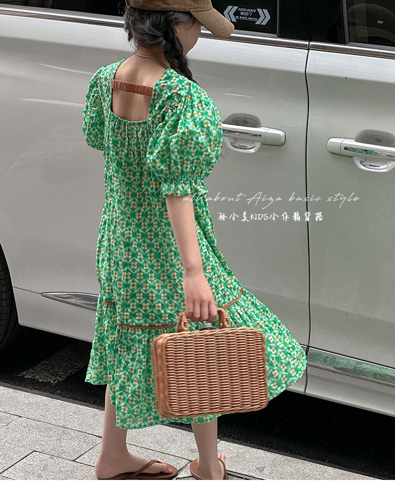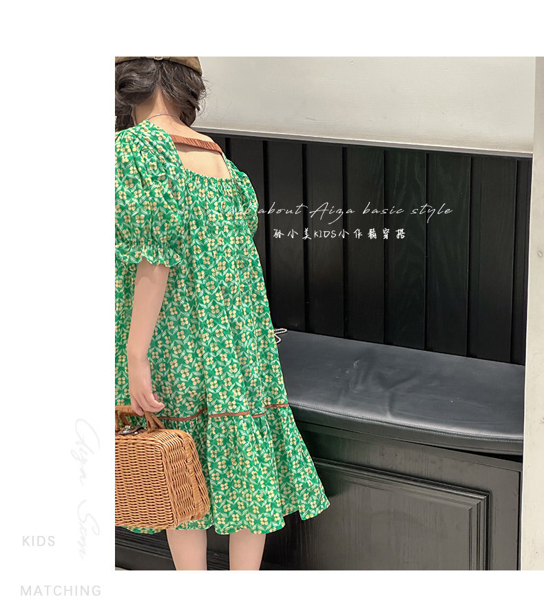 高級雕印女童連衣裙兒童泡泡短袖裙子2025夏裝新款韓國童裝公主裙