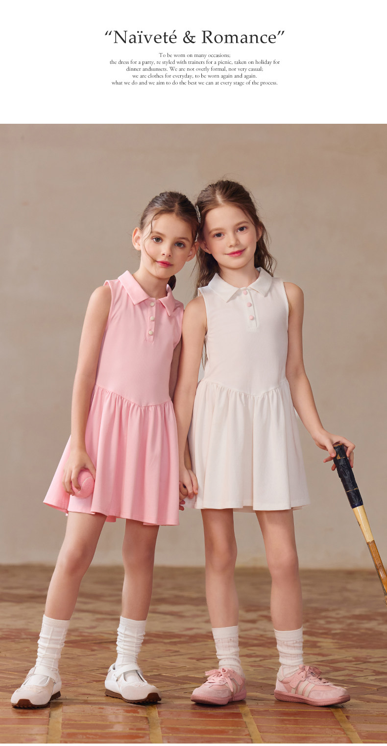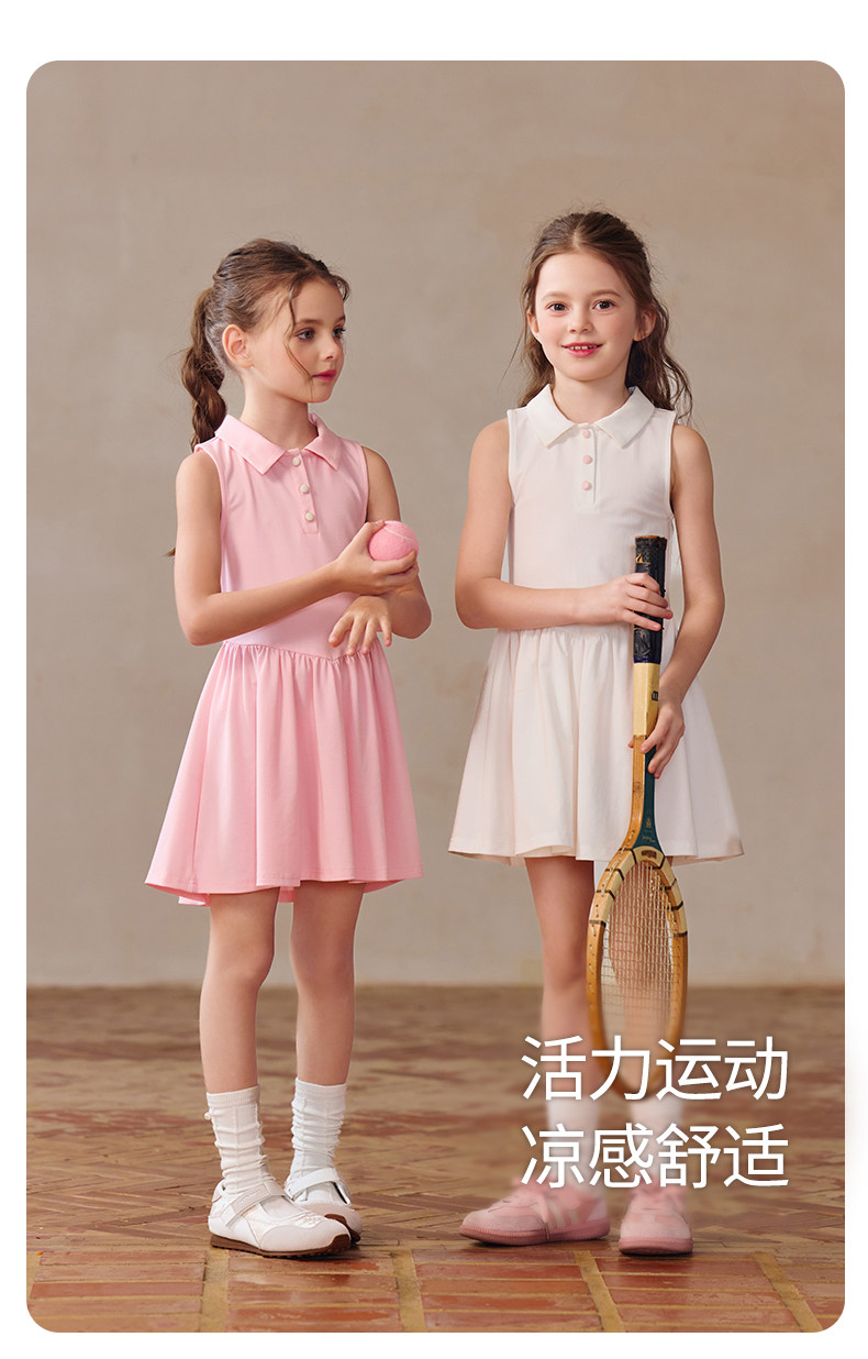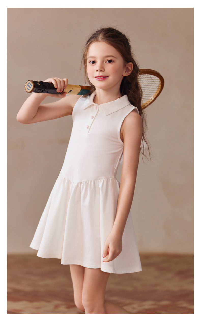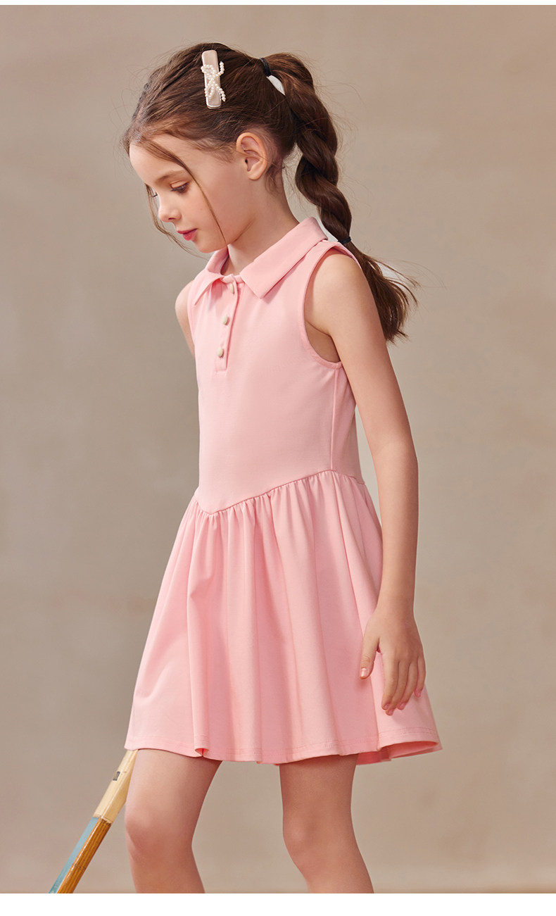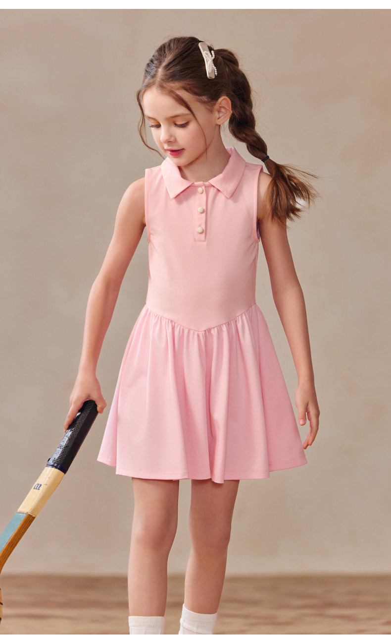 Little Naive女童polo運動連衣裙夏季涼感無袖裙子兒童學院連衣裙