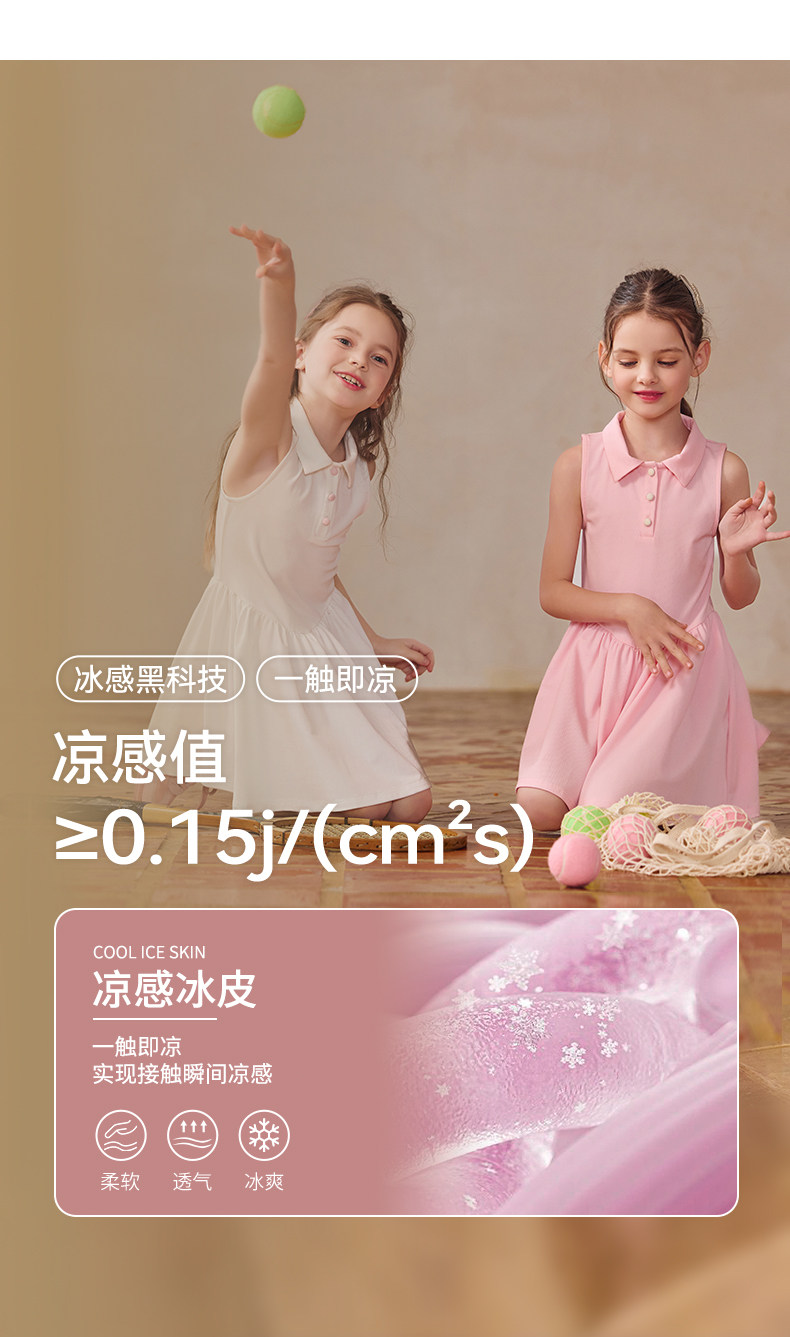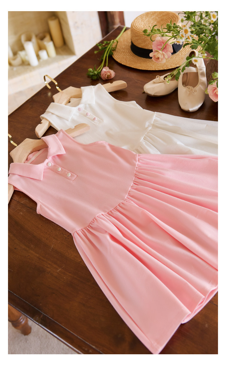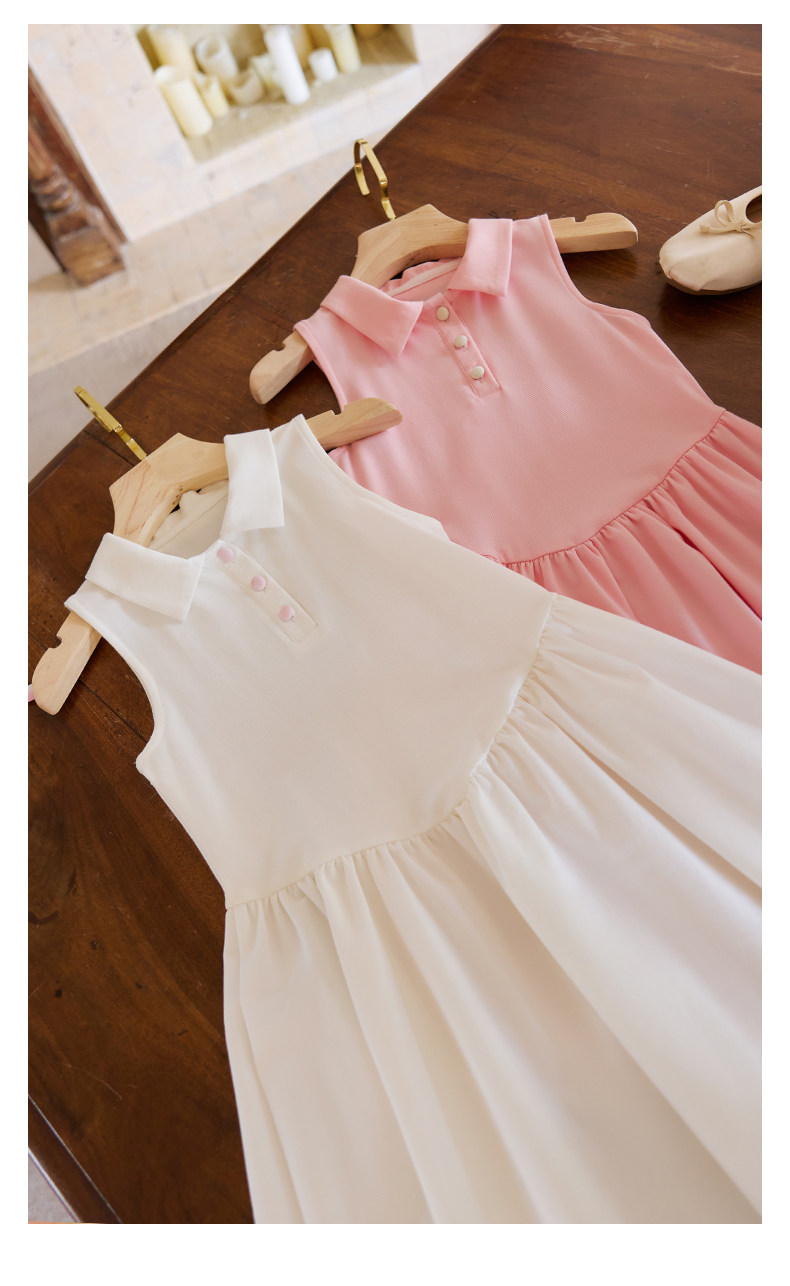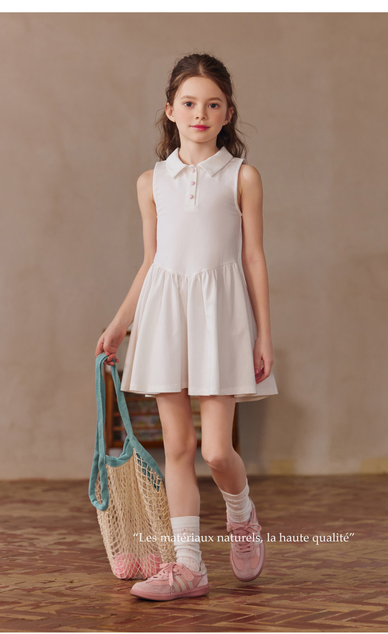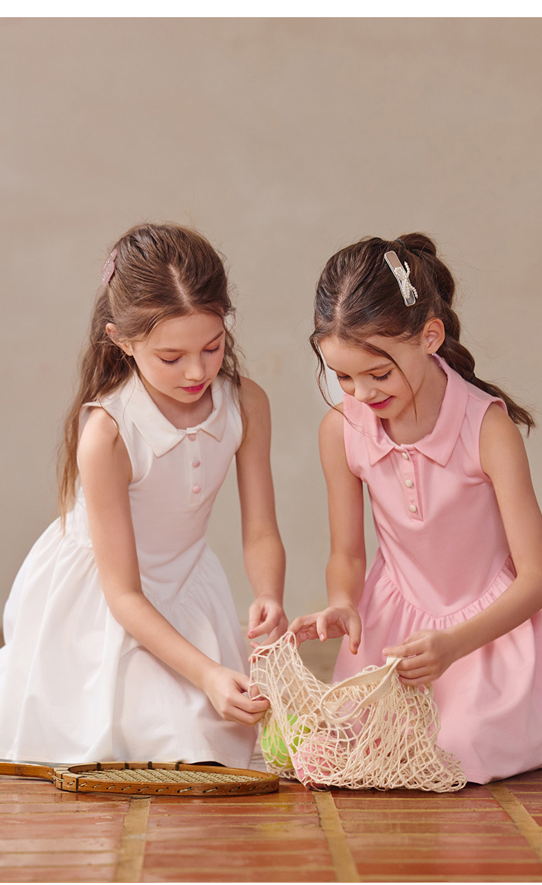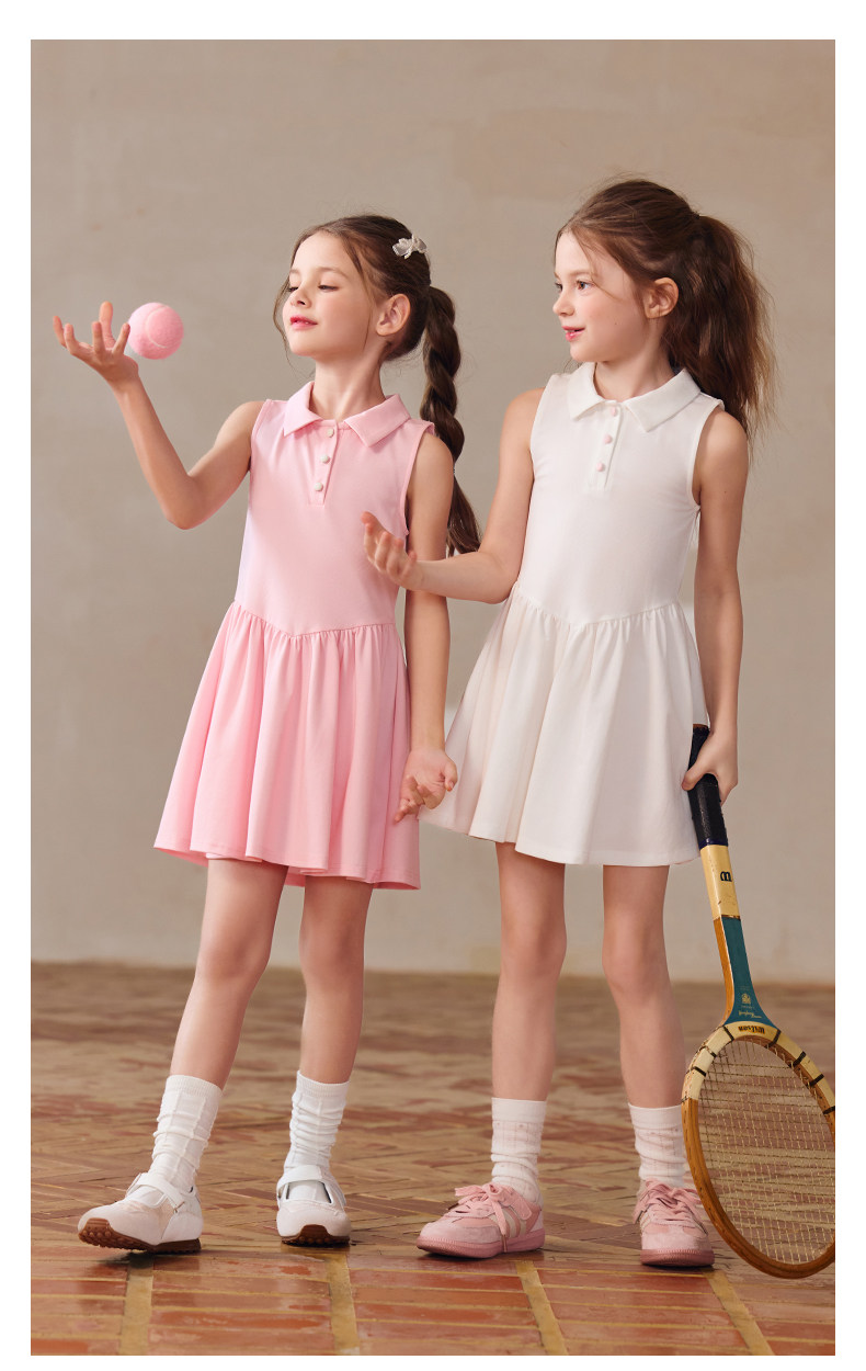 Little Naive女童polo運動連衣裙夏季涼感無袖裙子兒童學院連衣裙