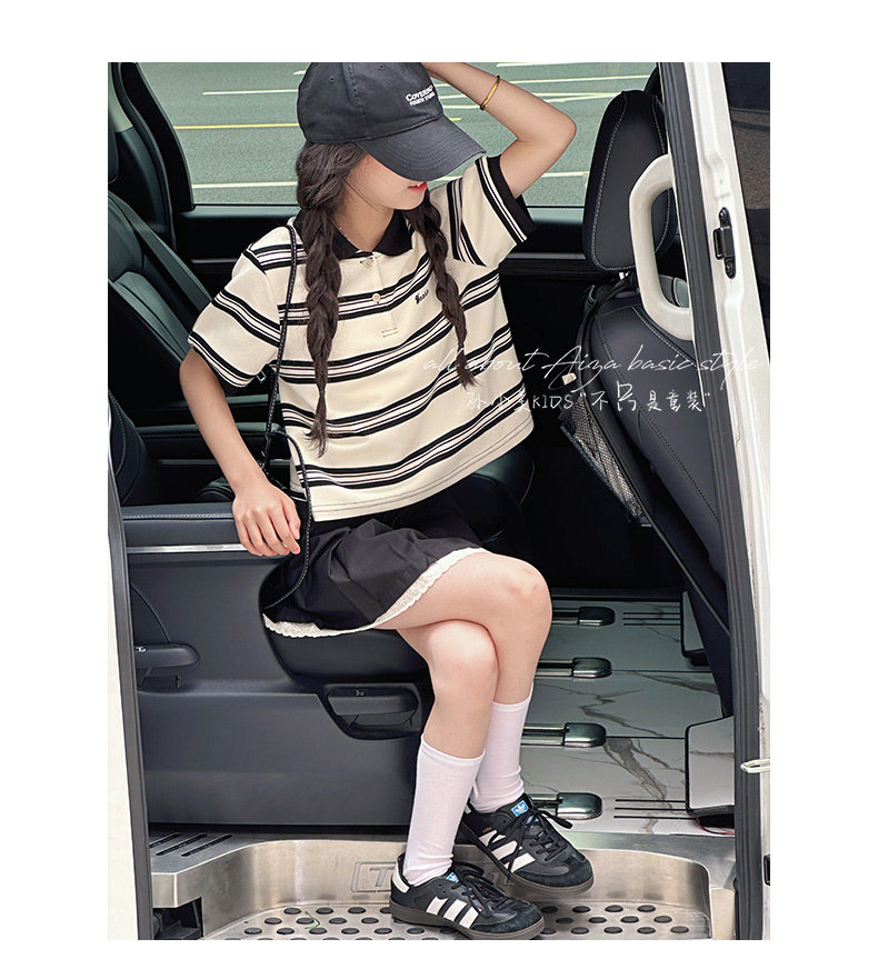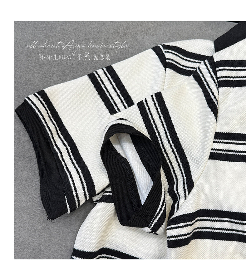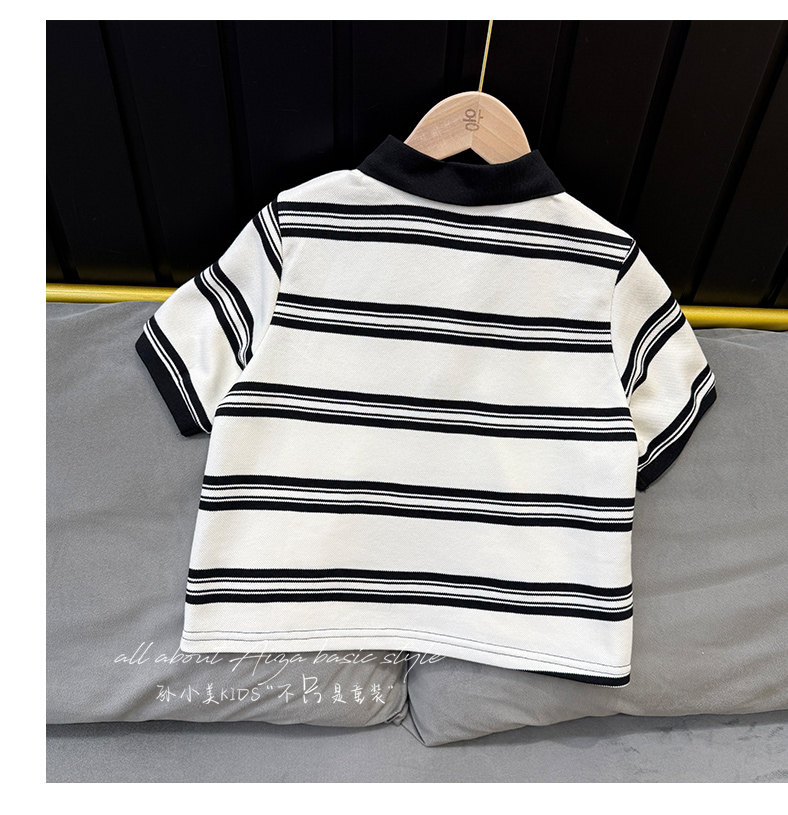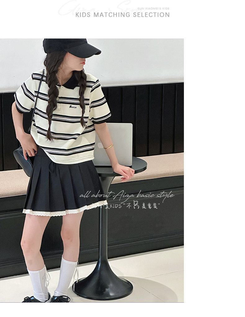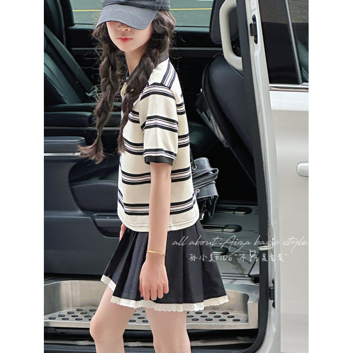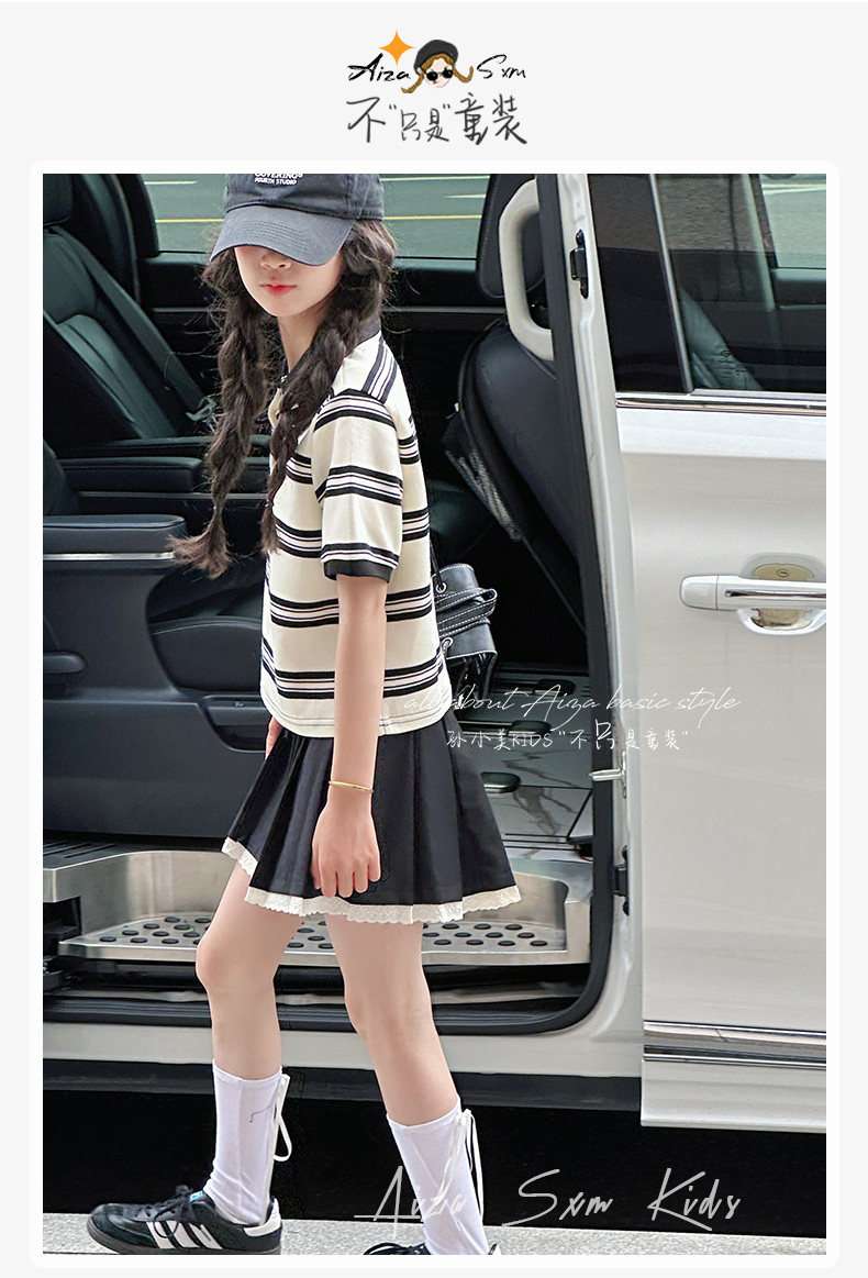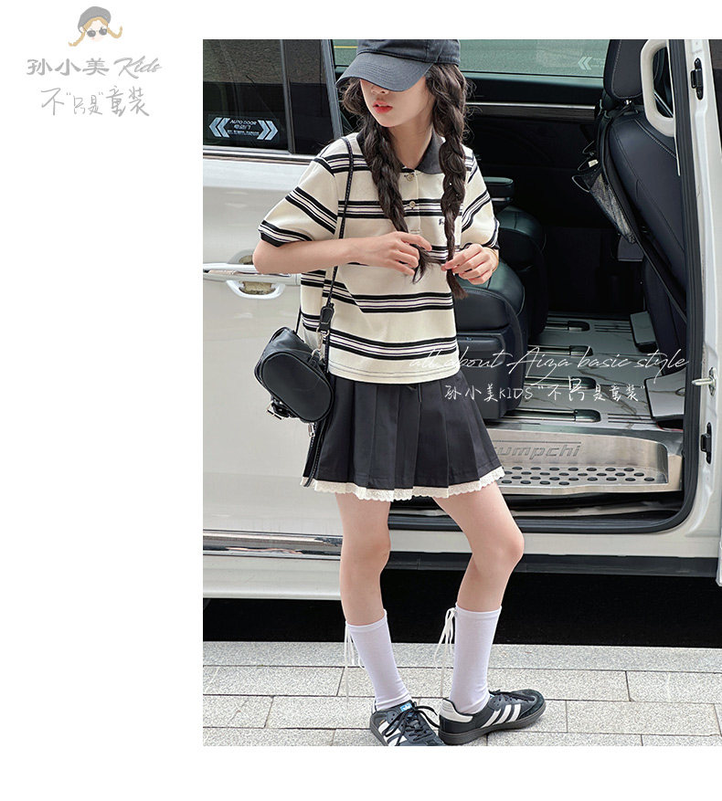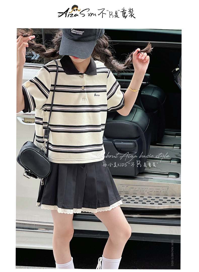 孫小美kids 學院風女童polo衫短袖2025新款夏裝兒童條紋上衣T恤潮