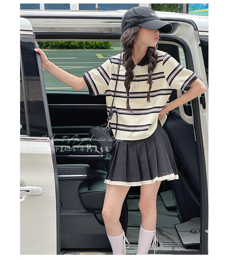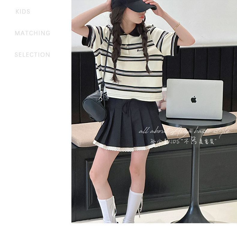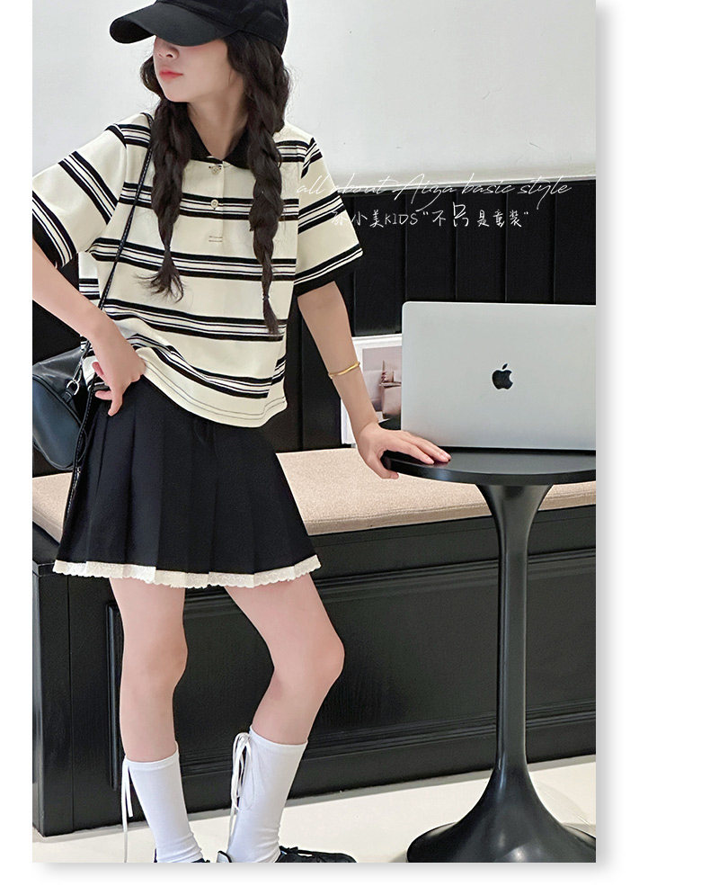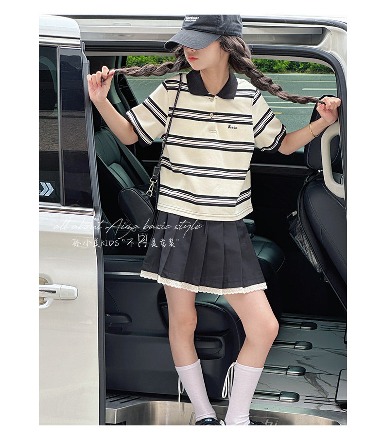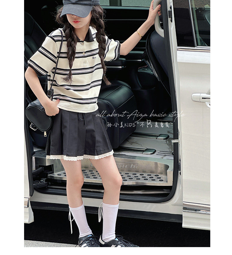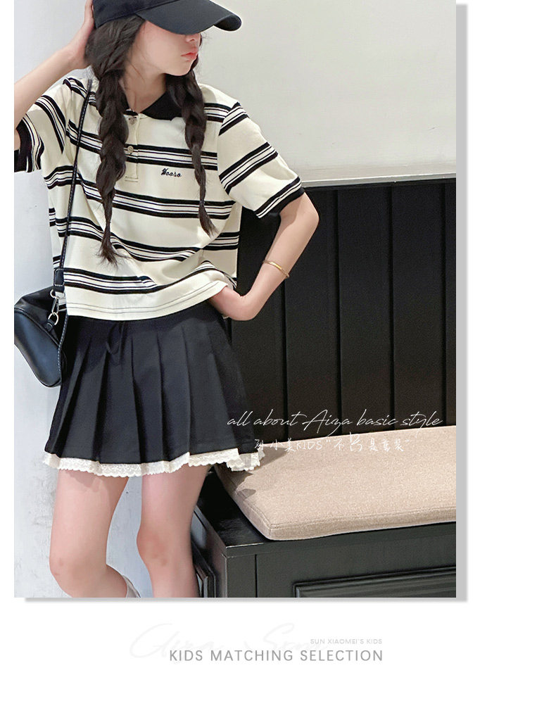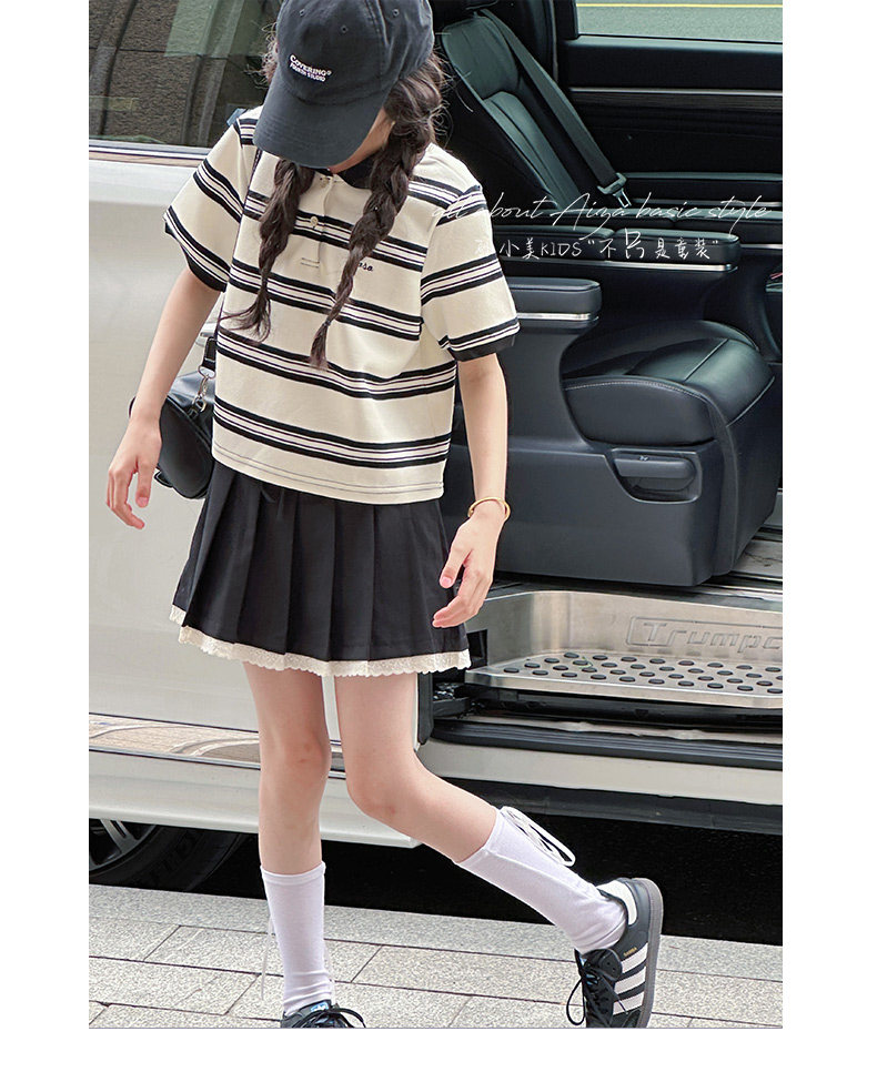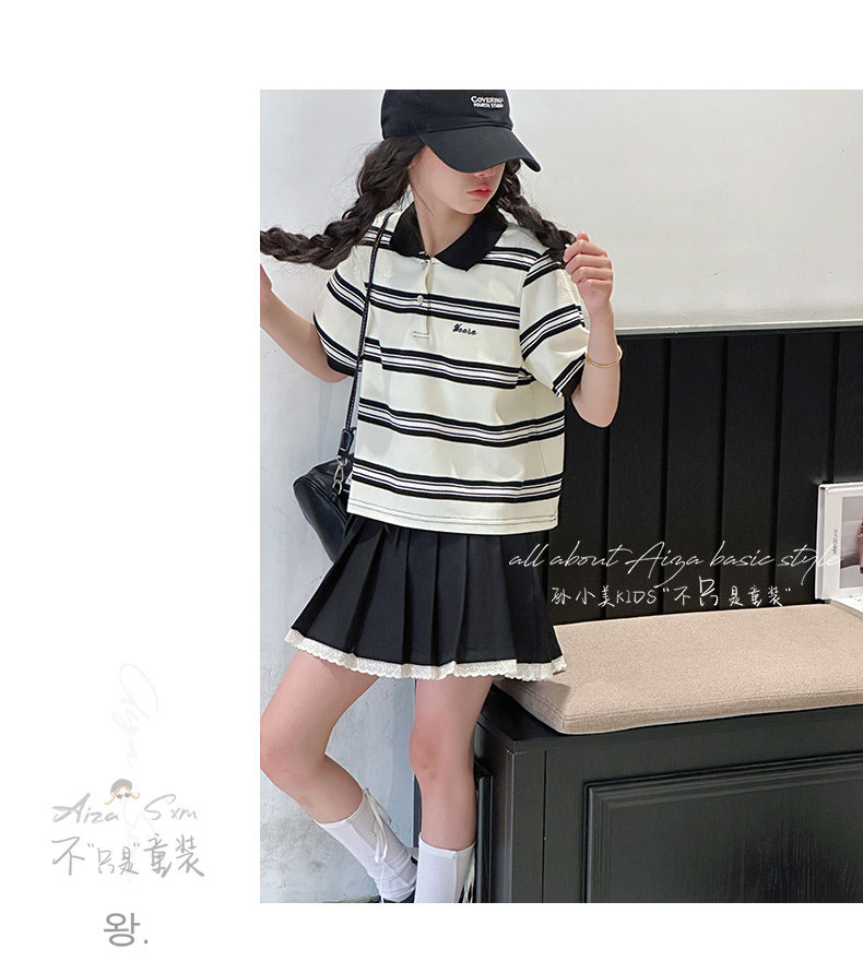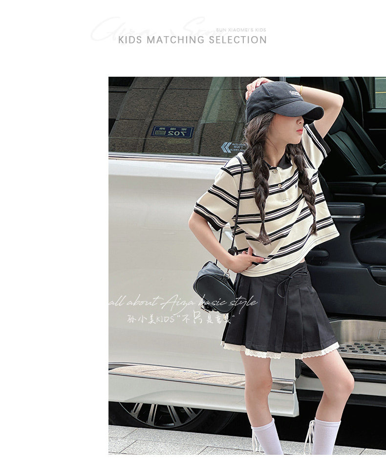 孫小美kids 學院風女童polo衫短袖2025新款夏裝兒童條紋上衣T恤潮