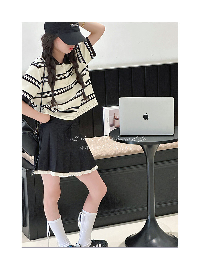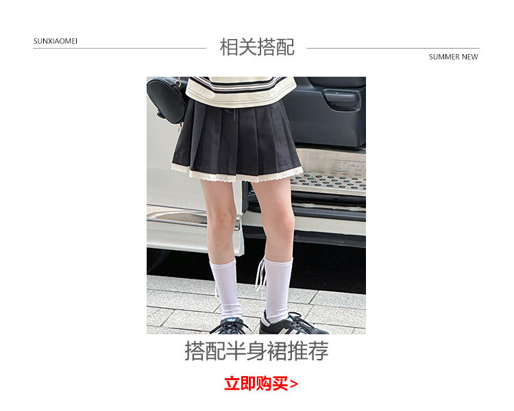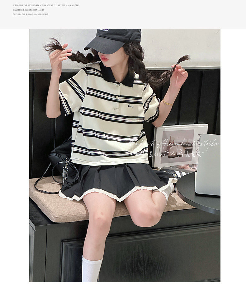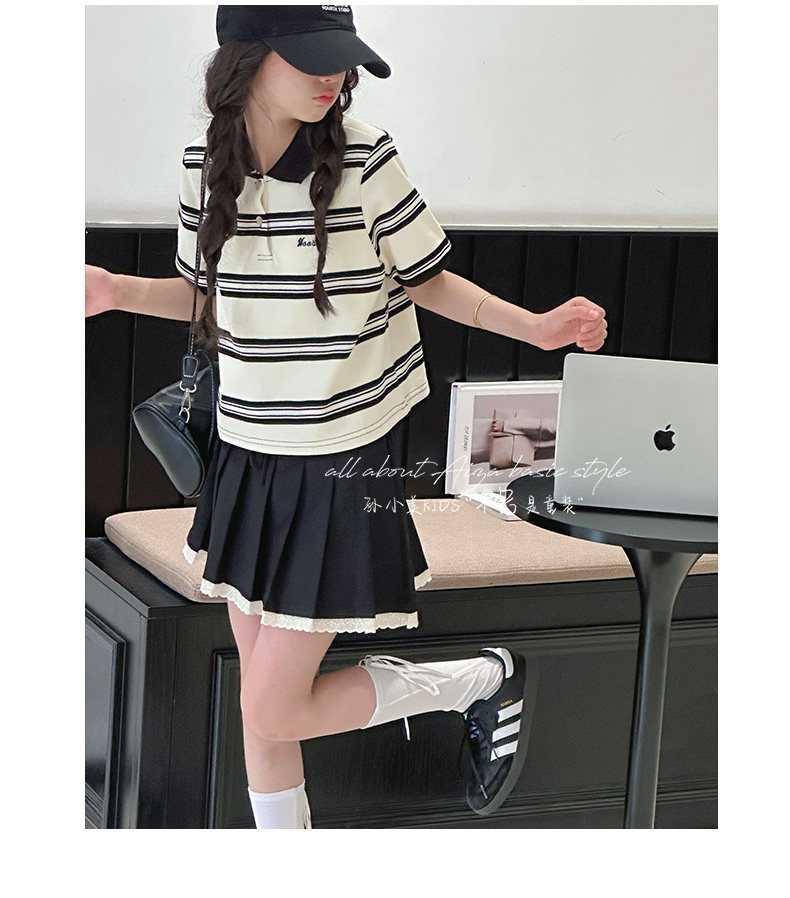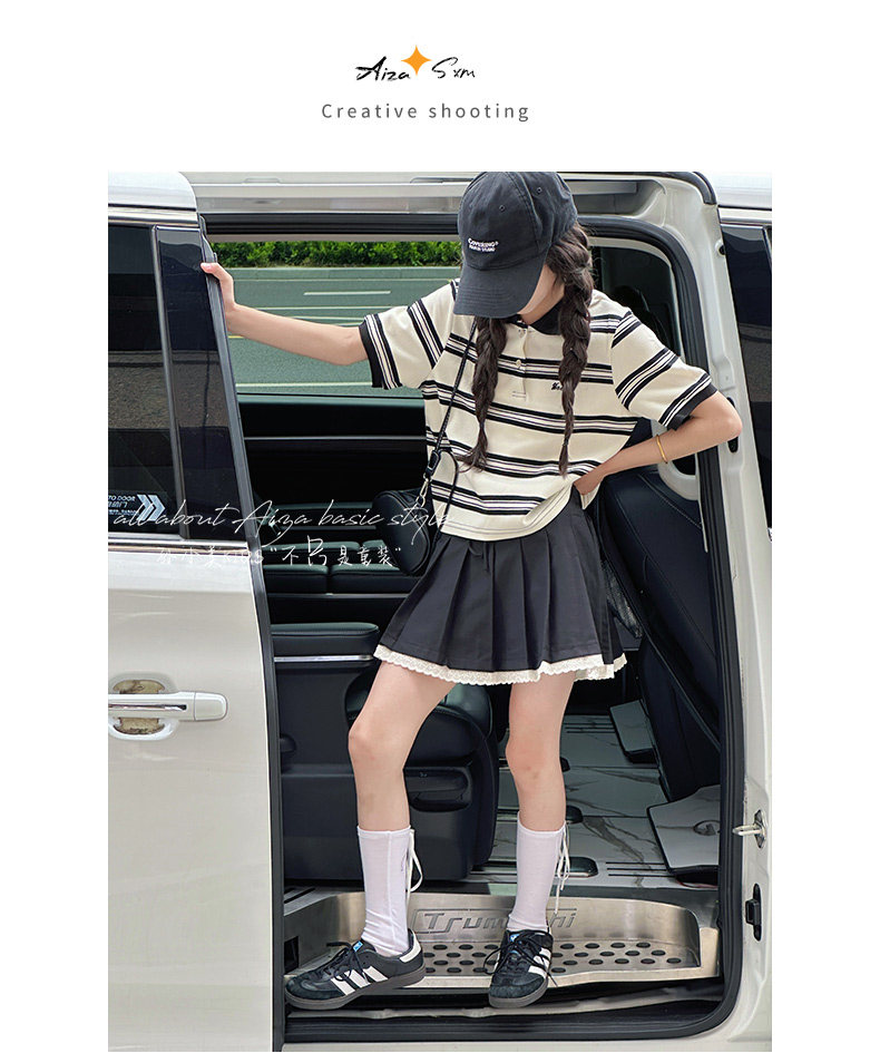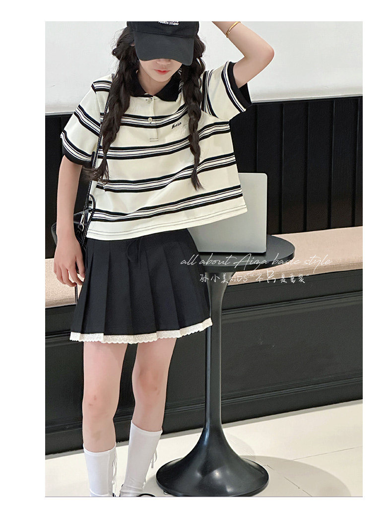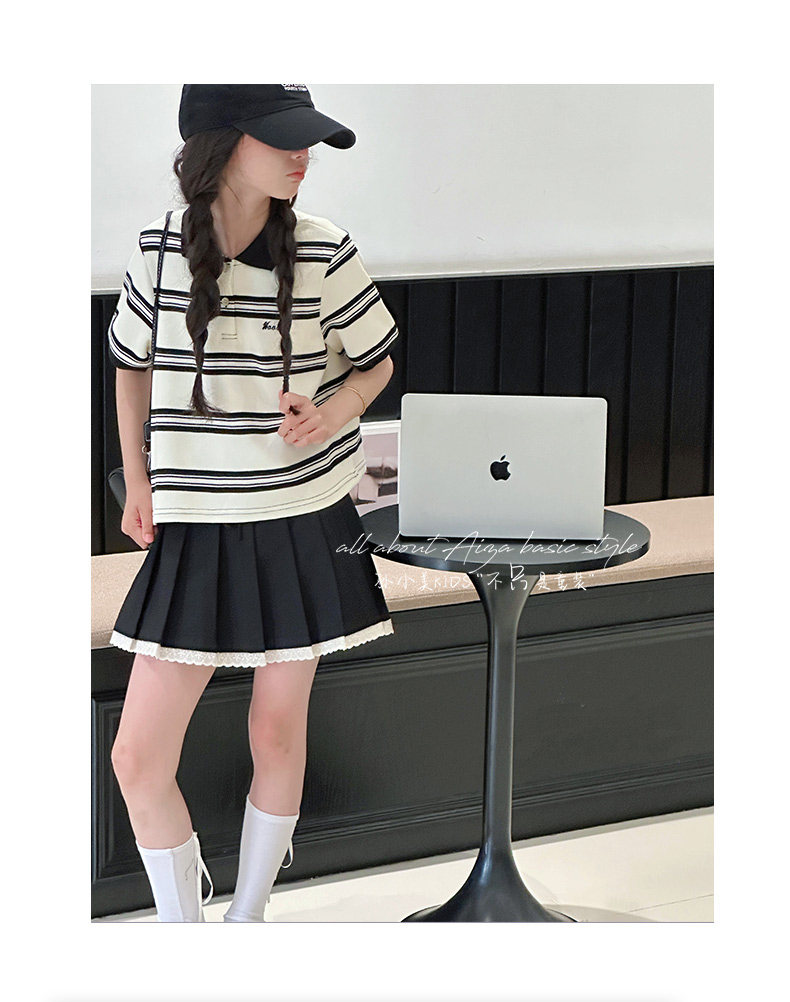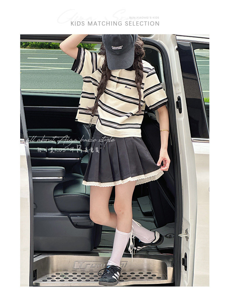 孫小美kids 學院風女童polo衫短袖2025新款夏裝兒童條紋上衣T恤潮