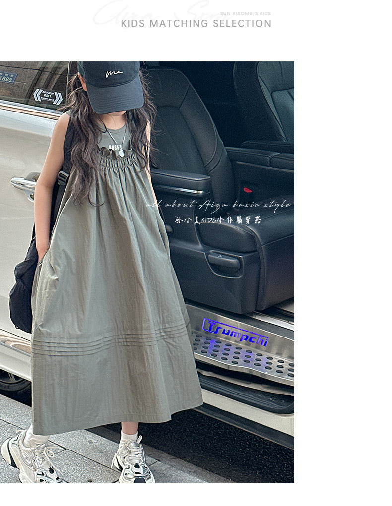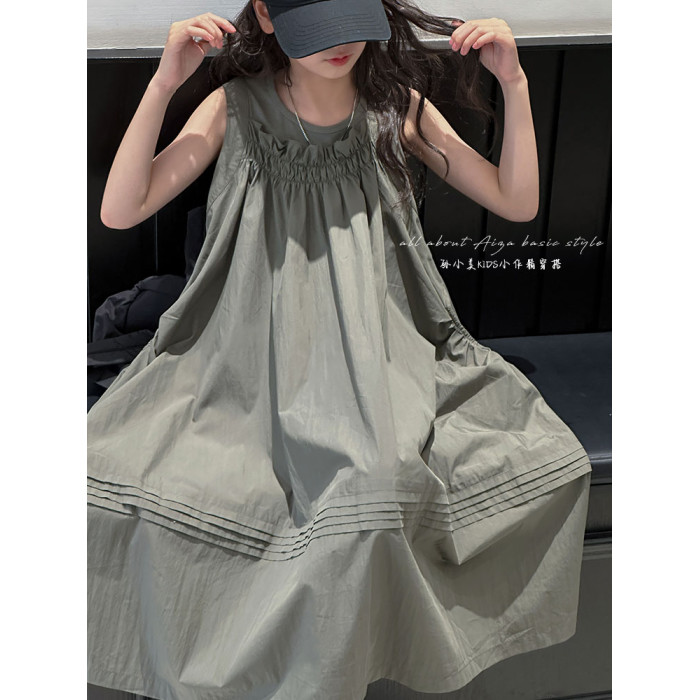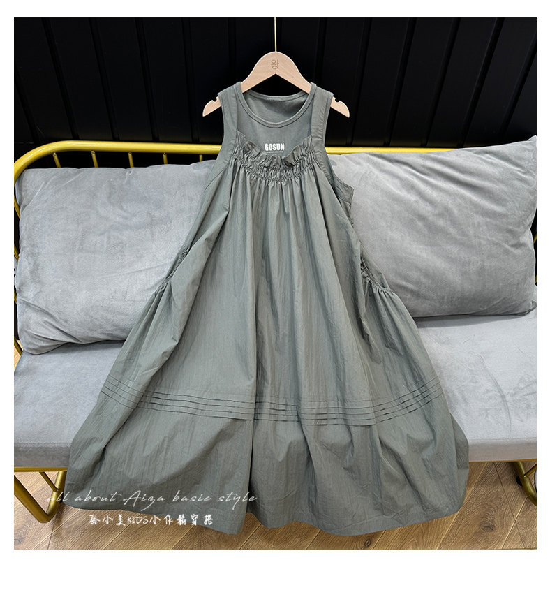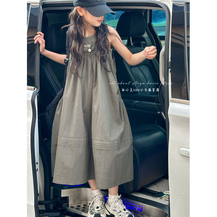 高級女童夏季連衣裙2025新款兒童無袖裙子吊帶裙女孩A字裙背心裙