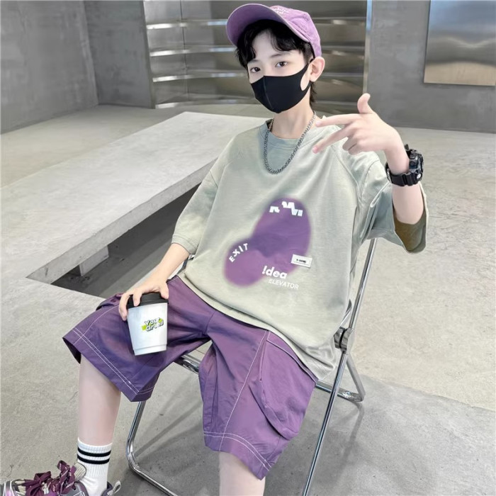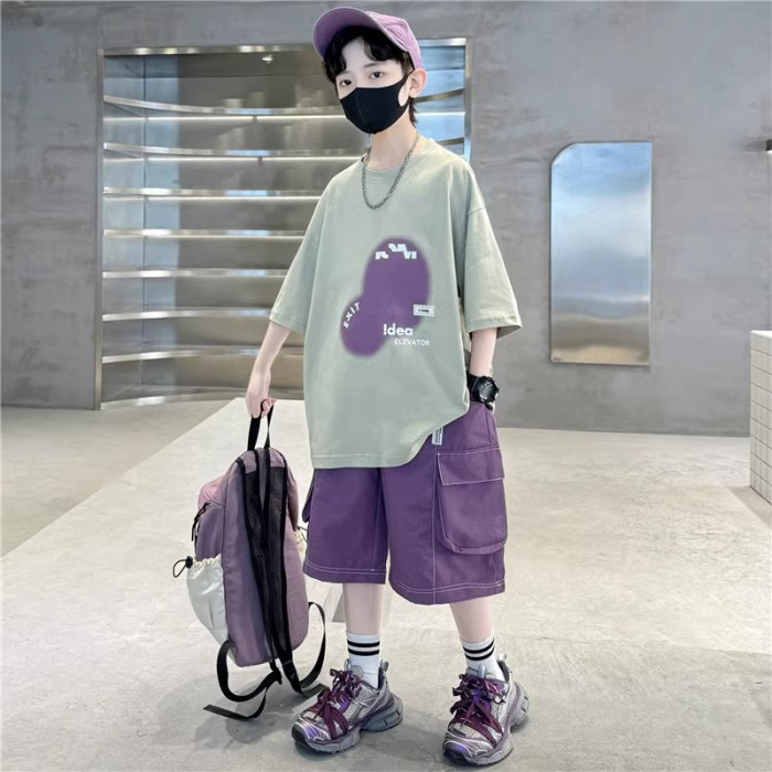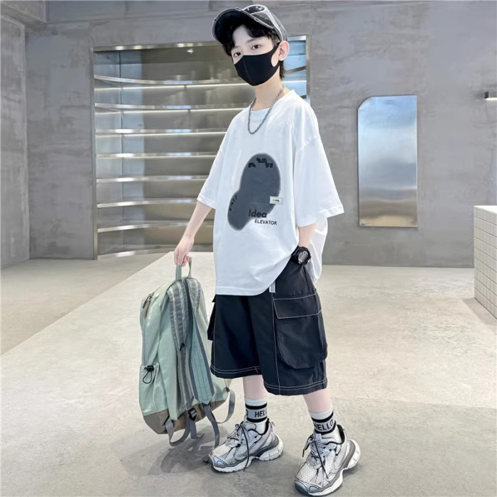巴拉新品兒童裝男童夏裝短袖套裝中大童夏季男孩帥氣時髦潮酷衣服