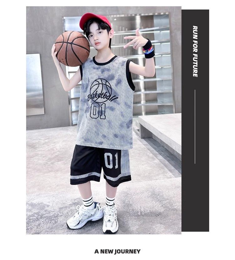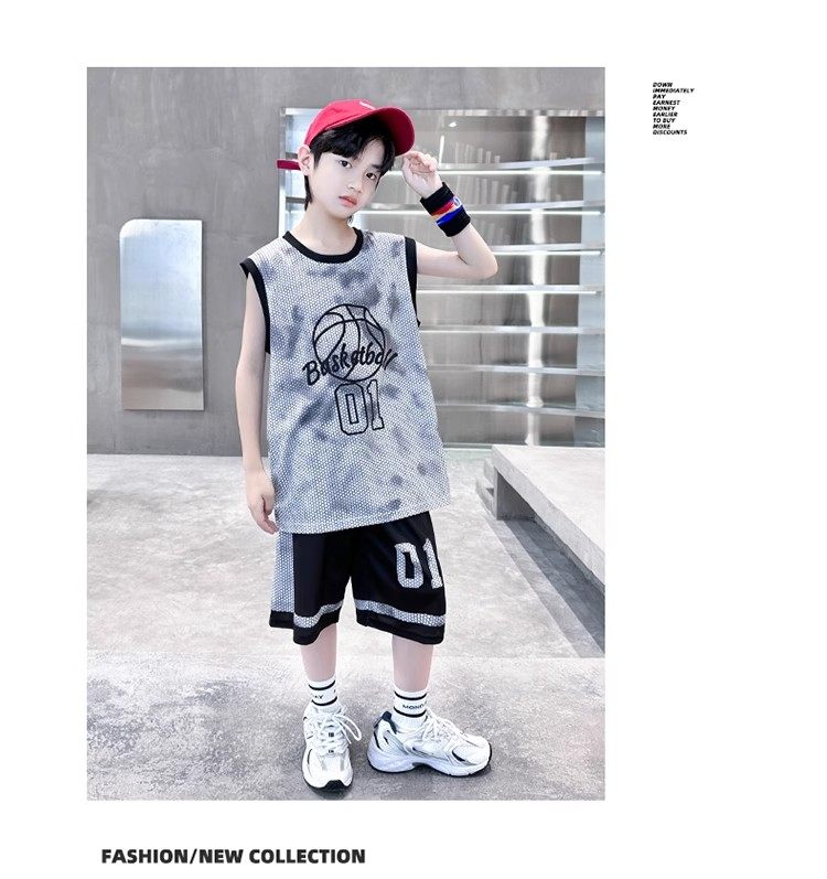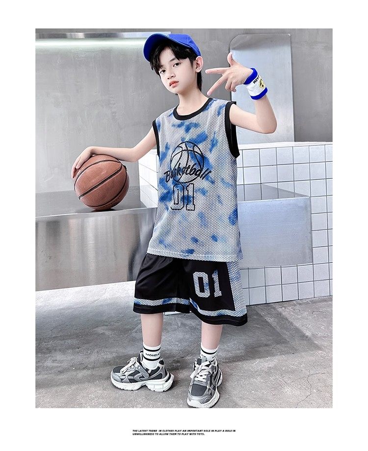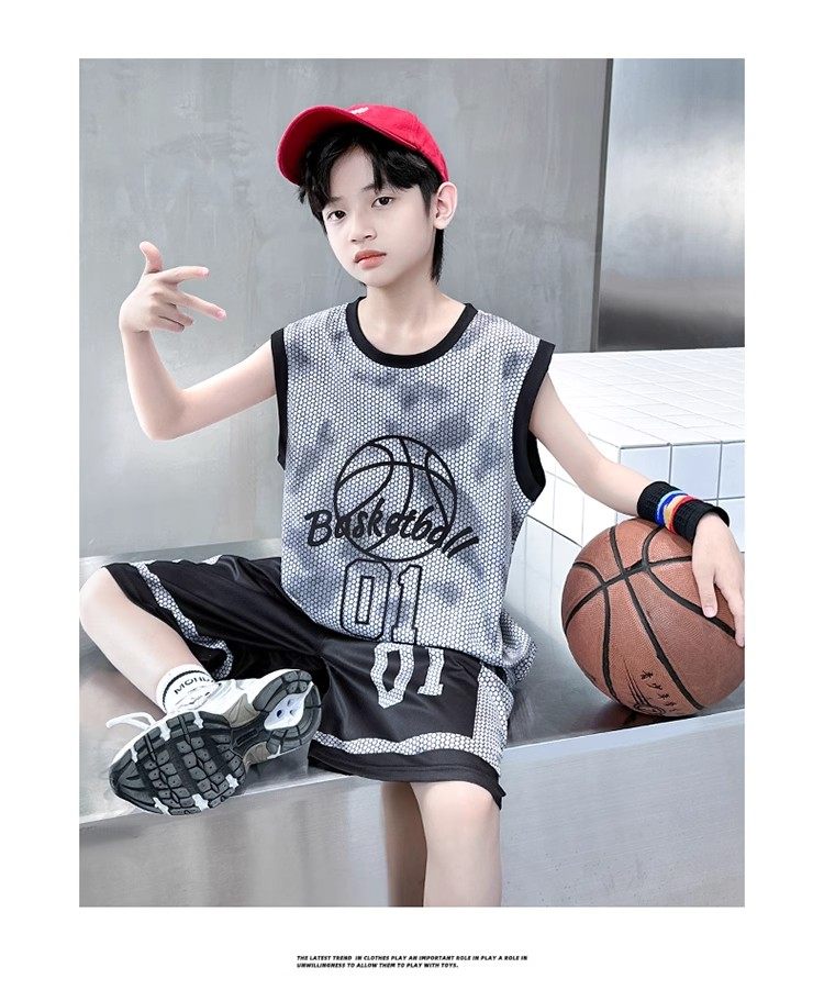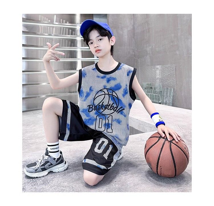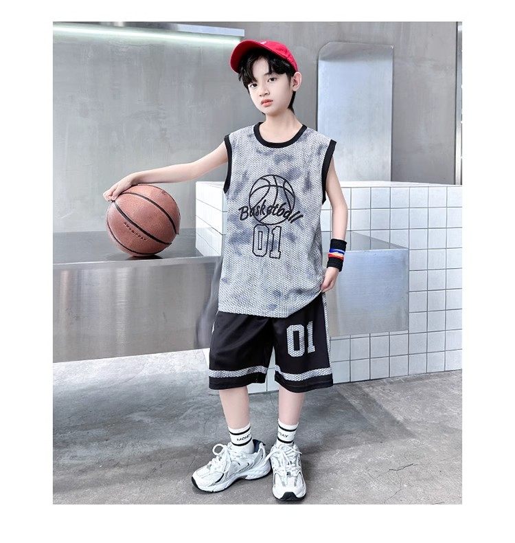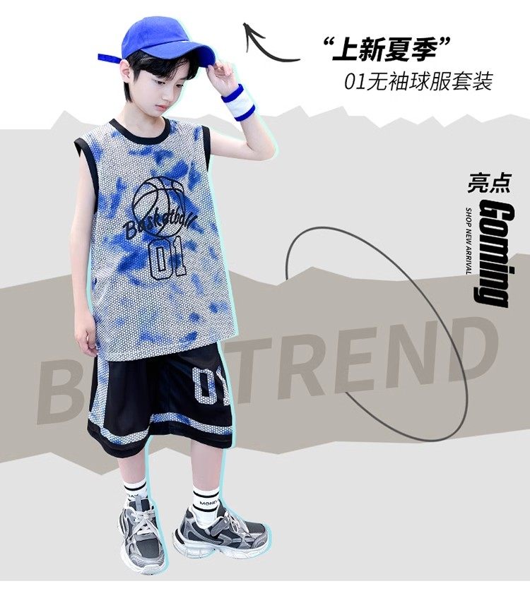 巴拉新款童裝男童籃球服速乾套裝兒童無袖背心男孩夏季運動球衣潮