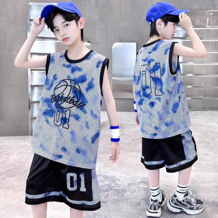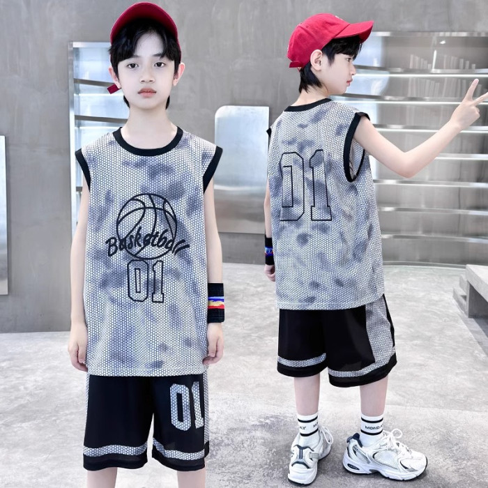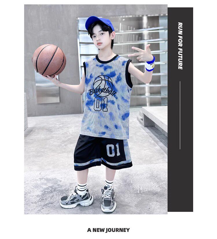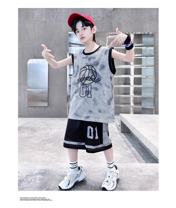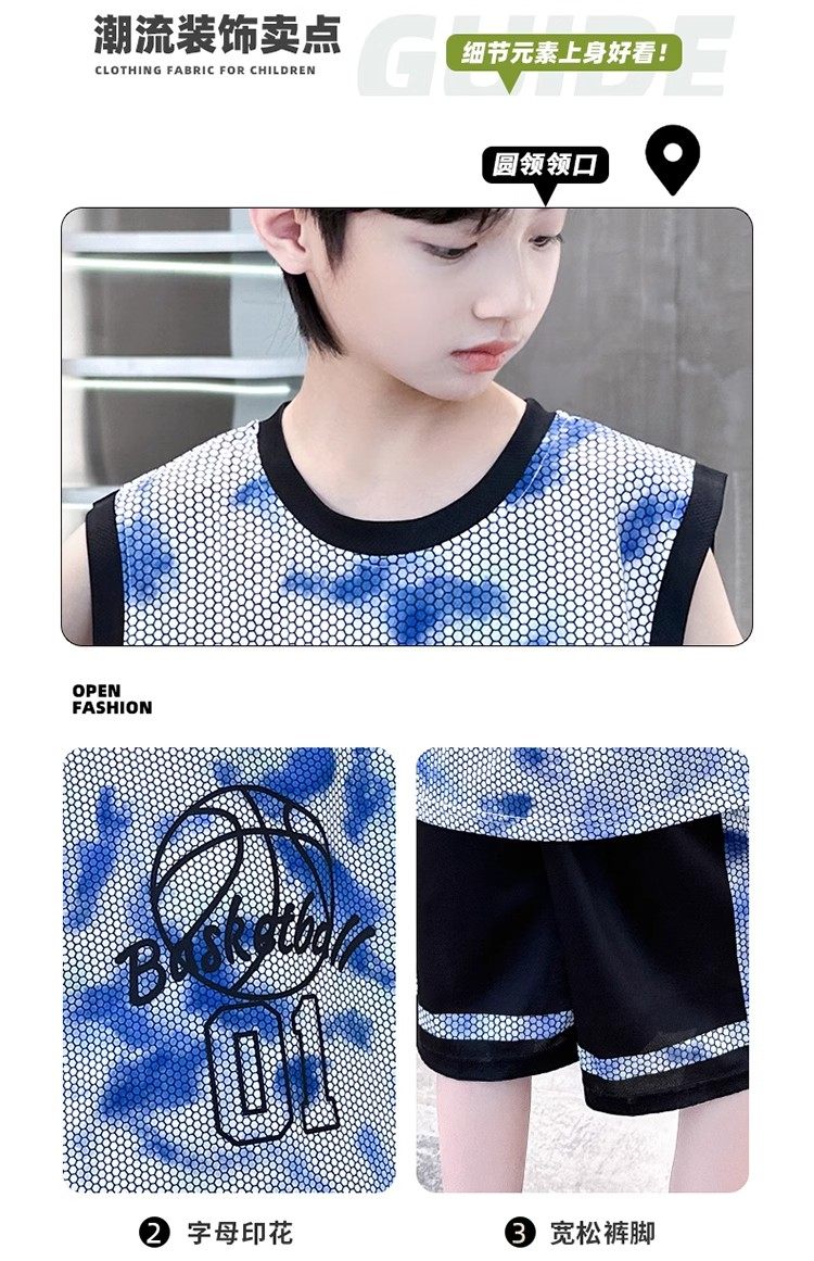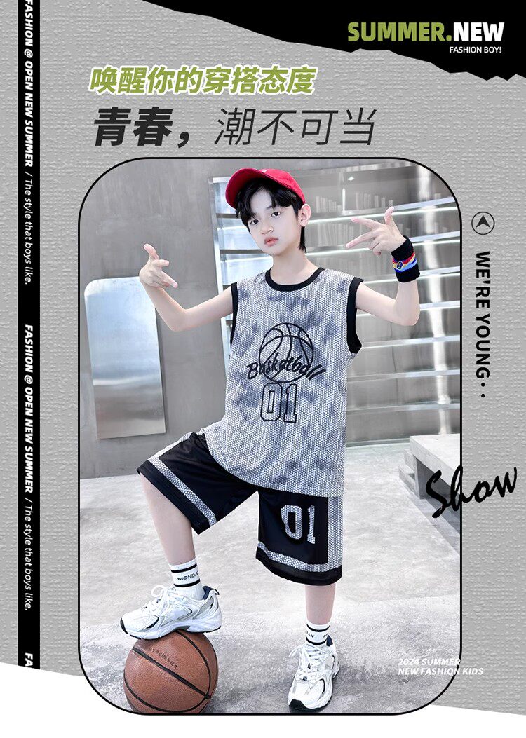 巴拉新款童裝男童籃球服速乾套裝兒童無袖背心男孩夏季運動球衣潮