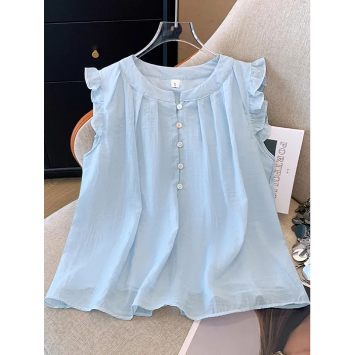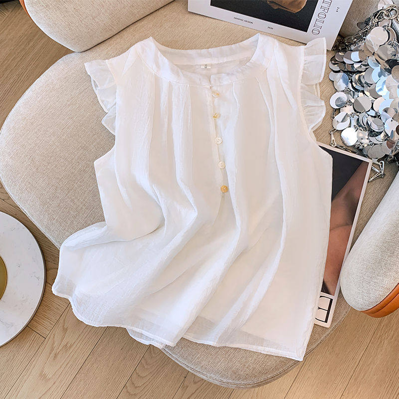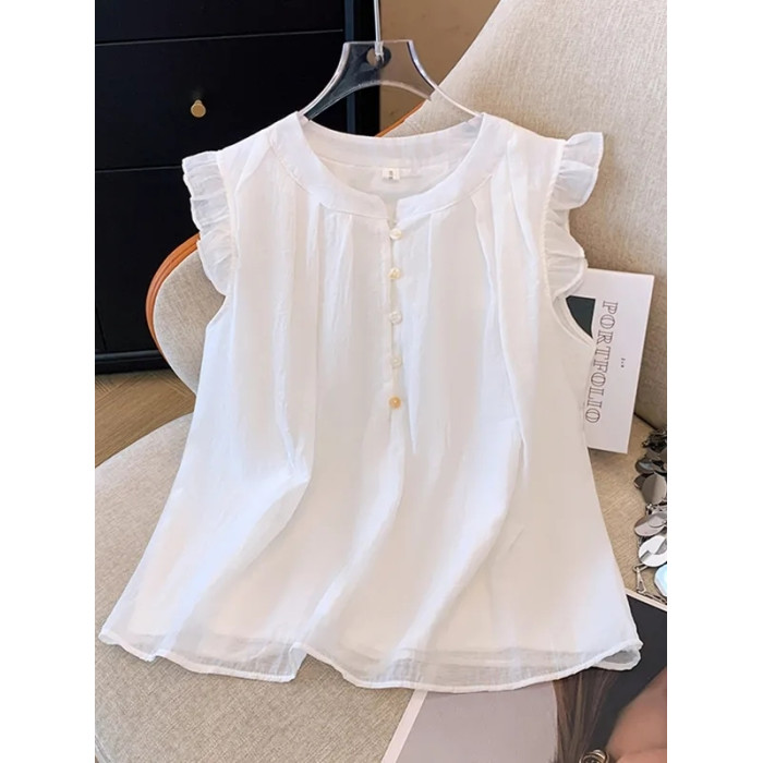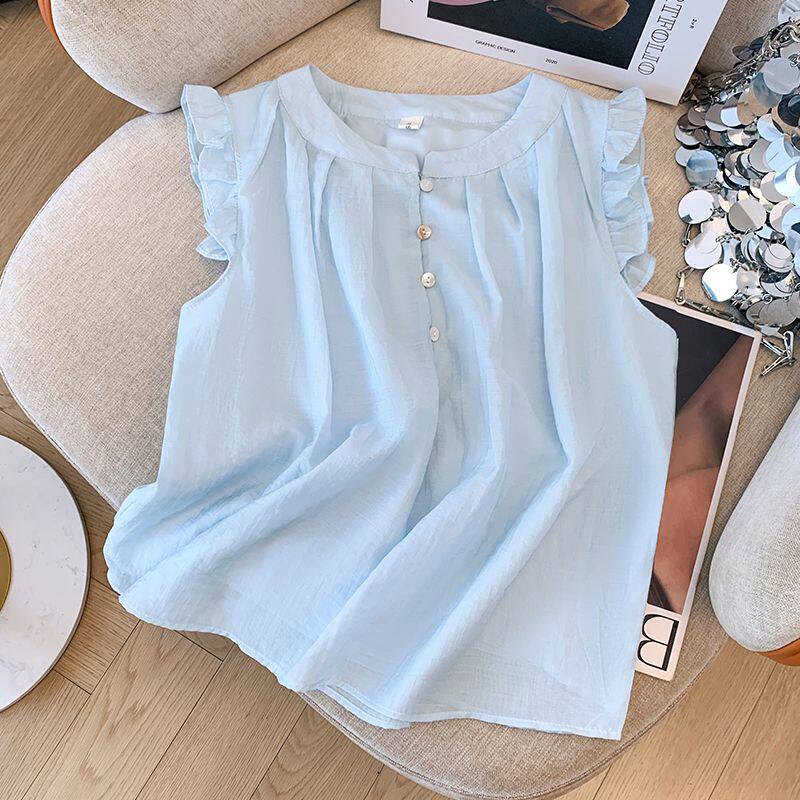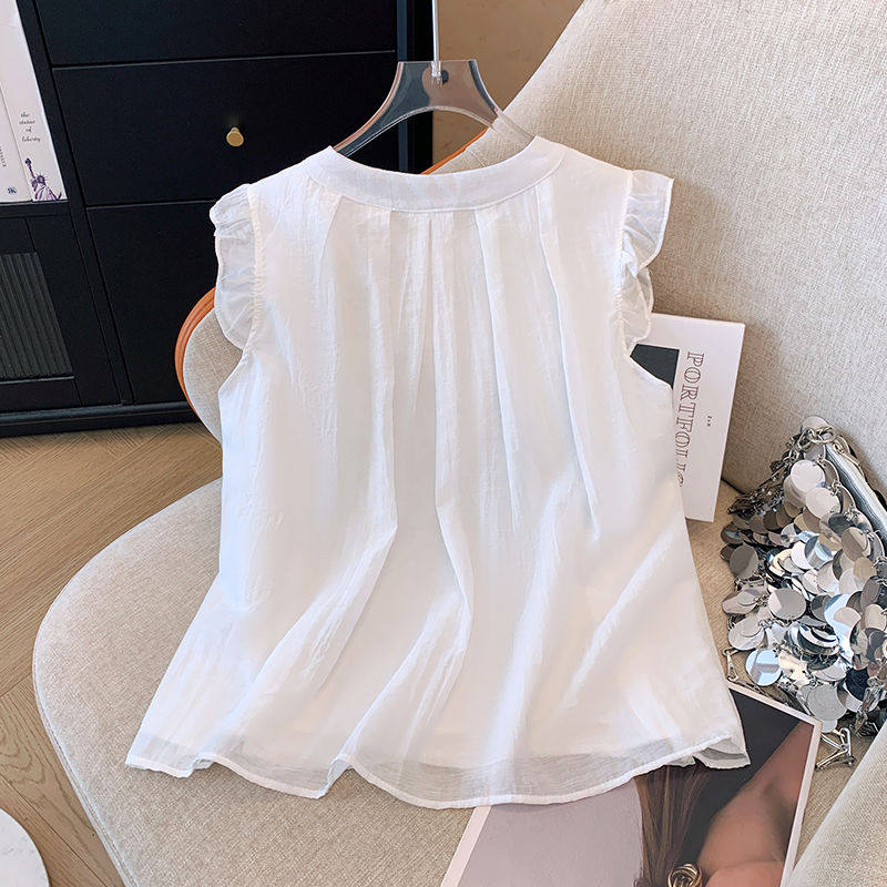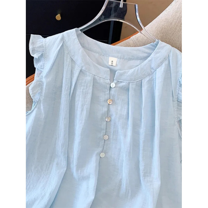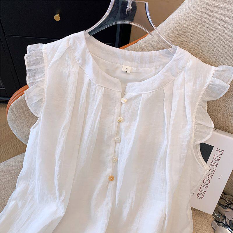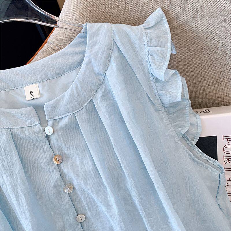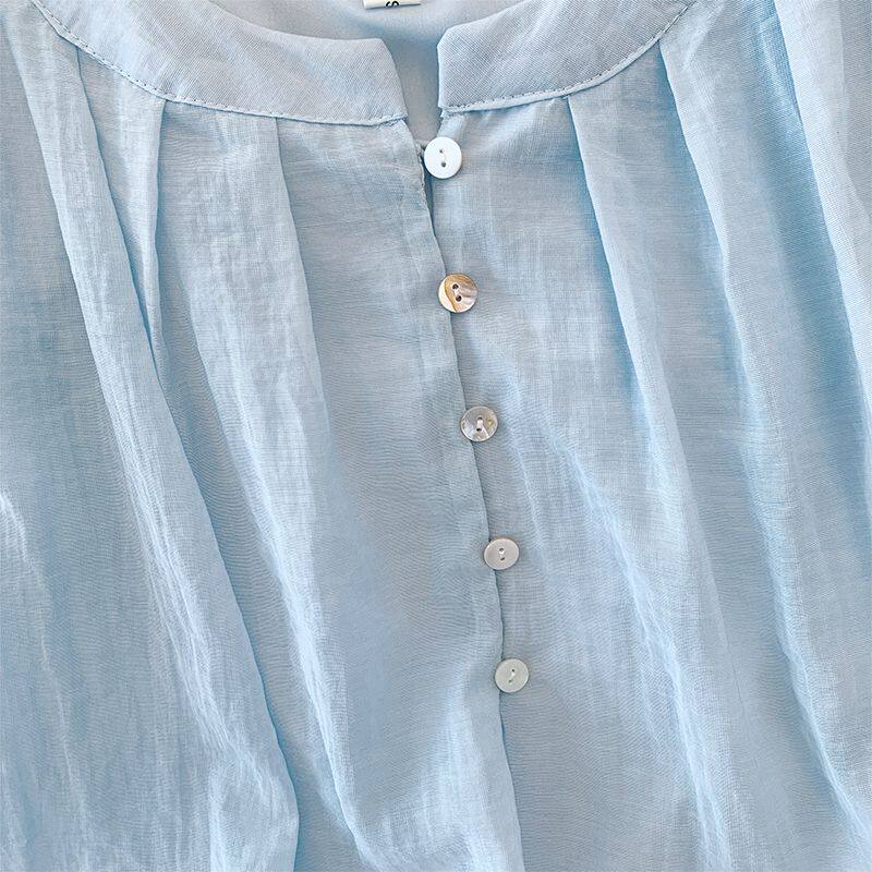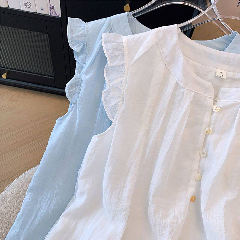 2025新款夏季女童中大童兒童襯衣娃娃衫雪紡洋氣短袖襯衫薄款上衣