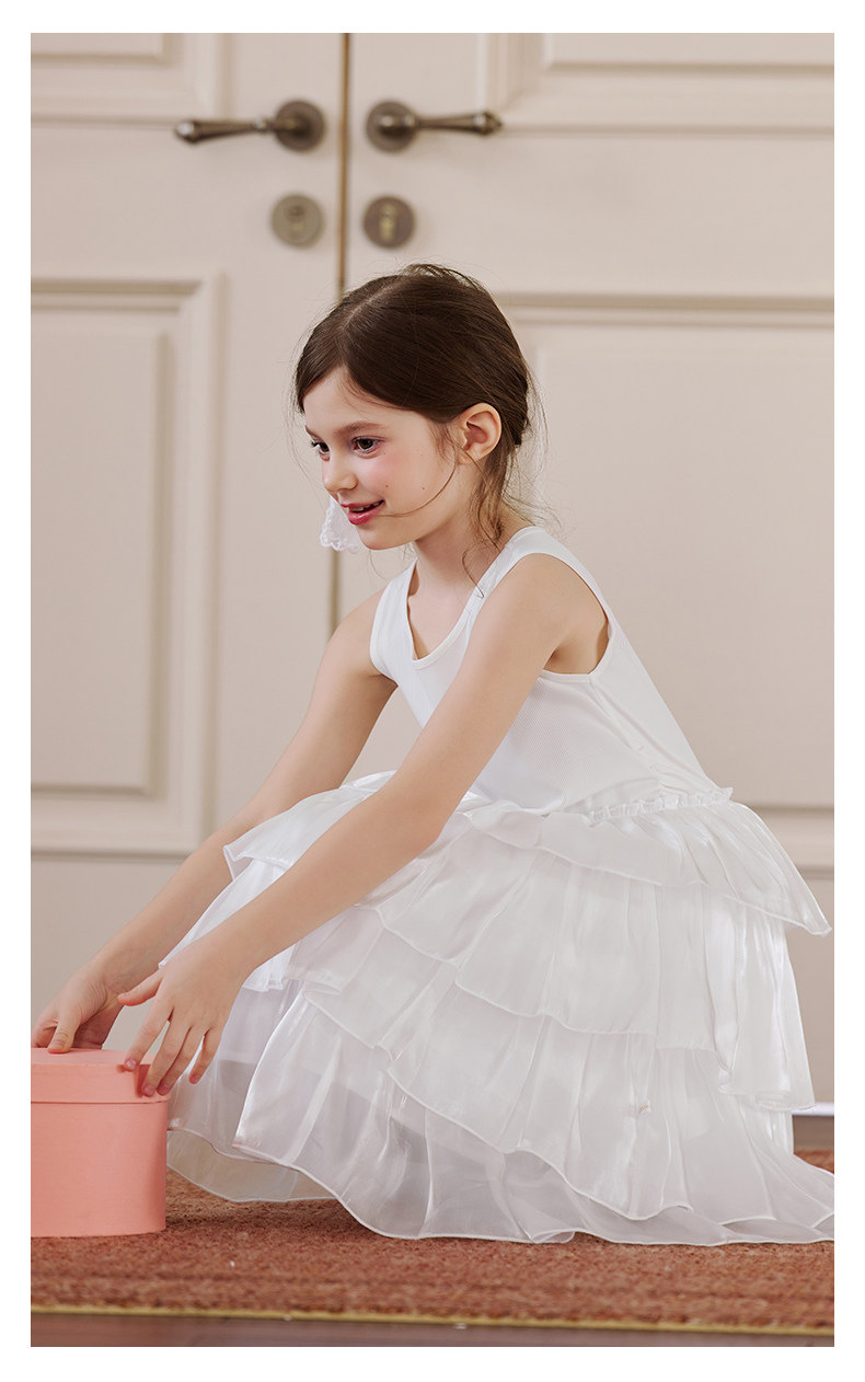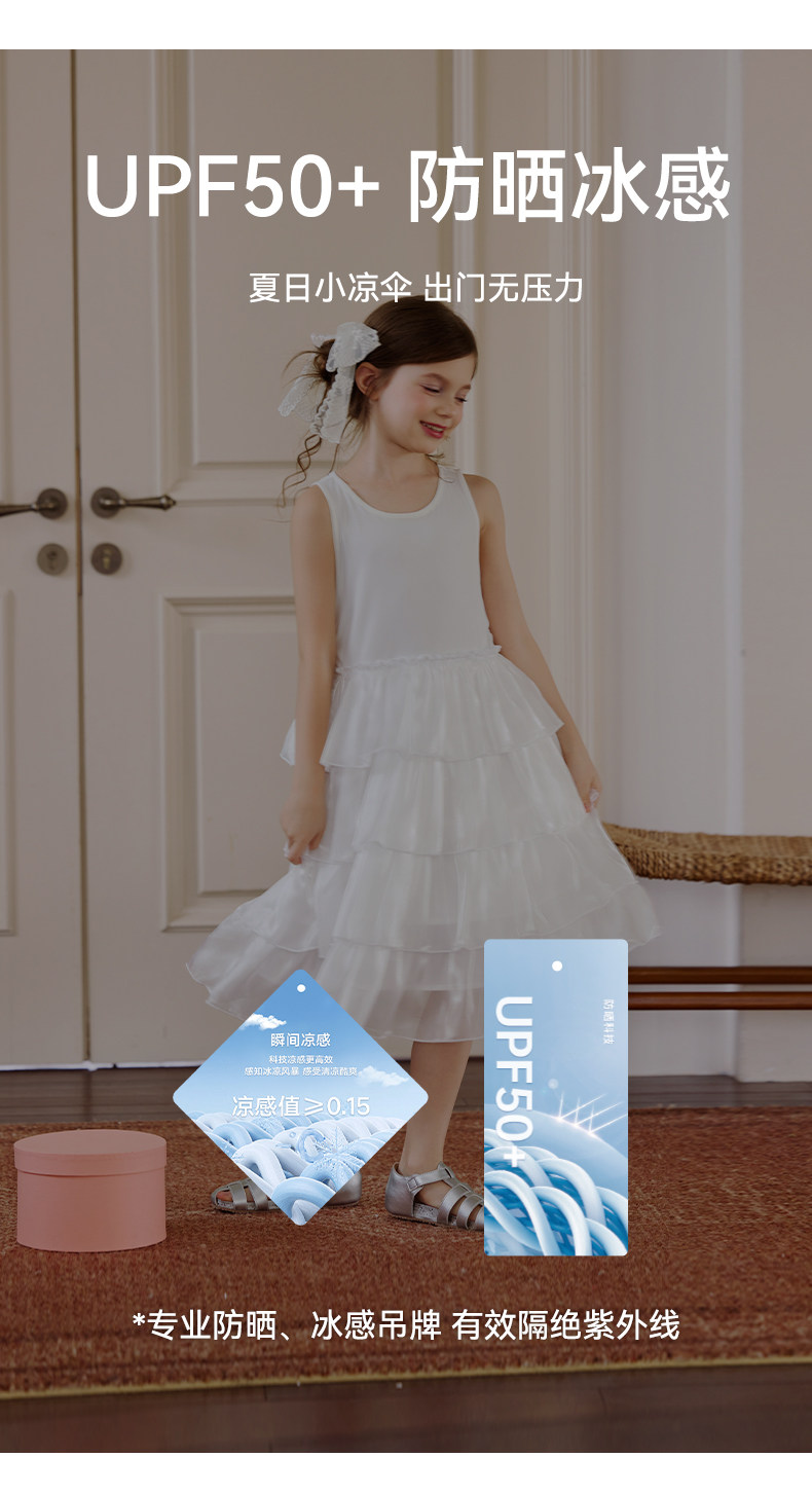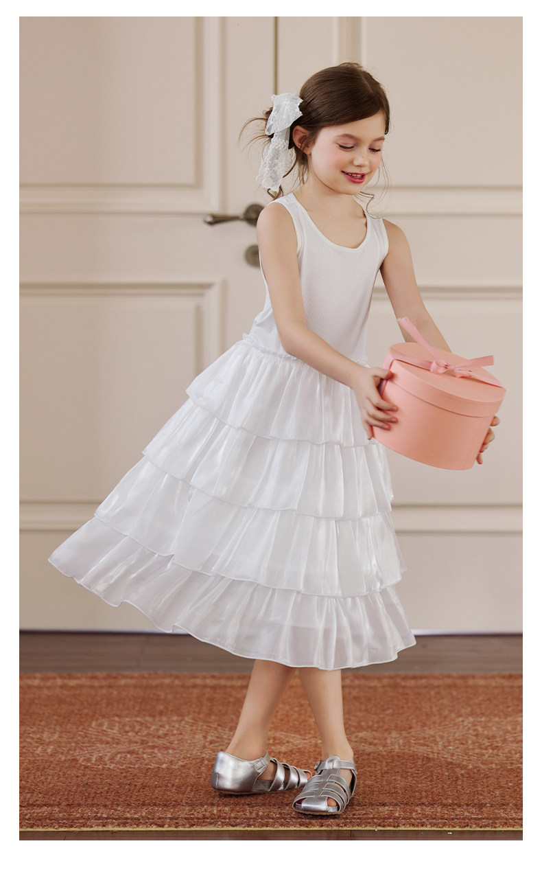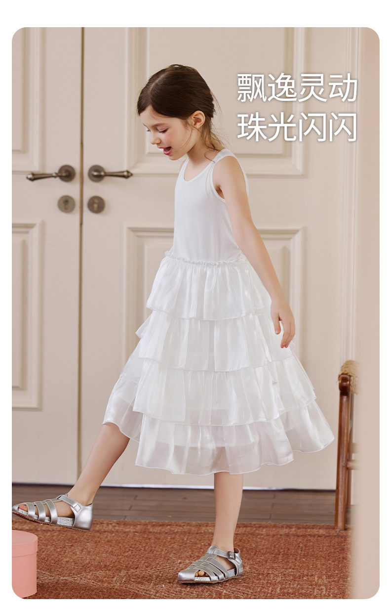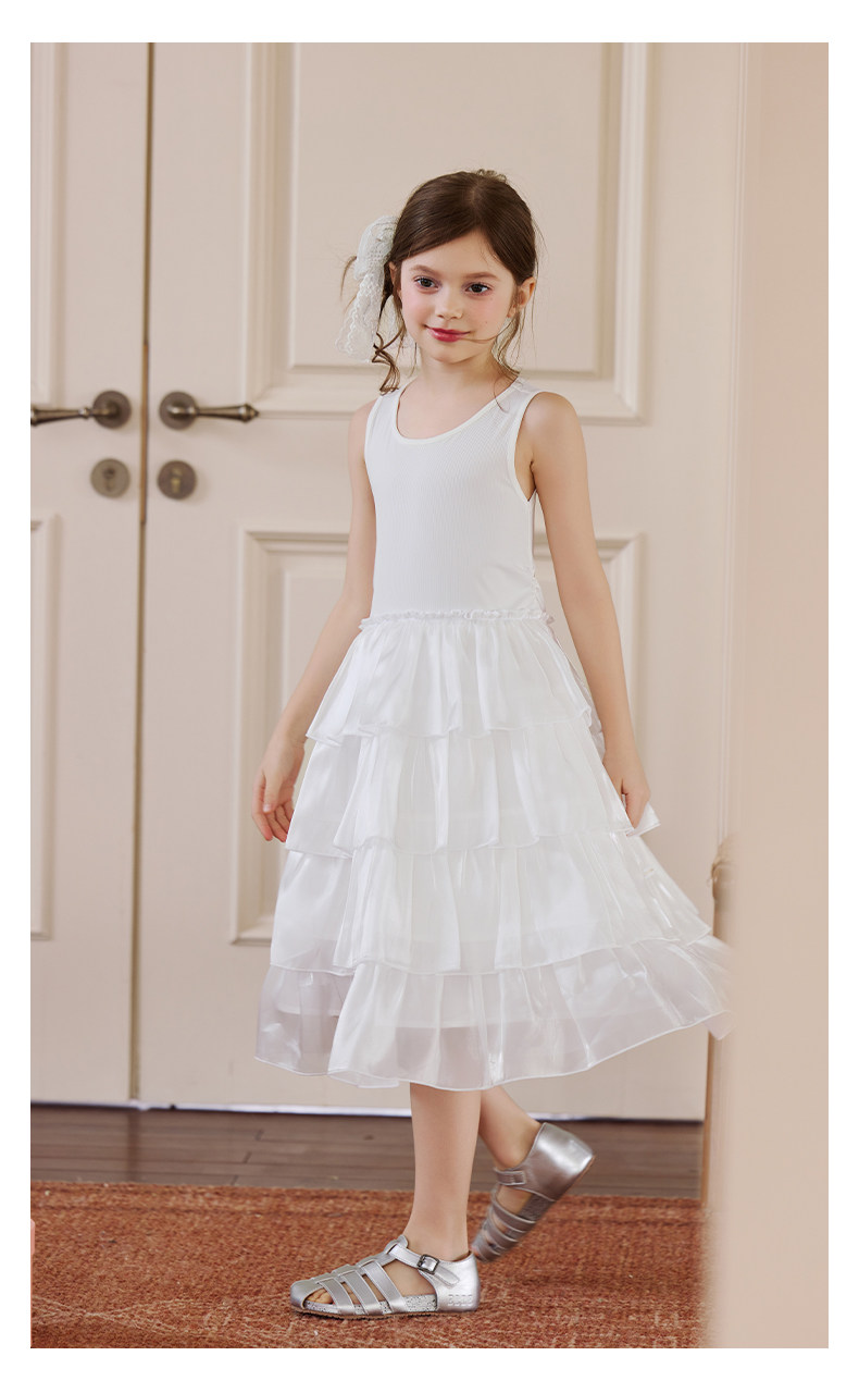Little Naive女童連衣裙夏季新款公主蛋糕裙子兒童涼感彈力背心裙