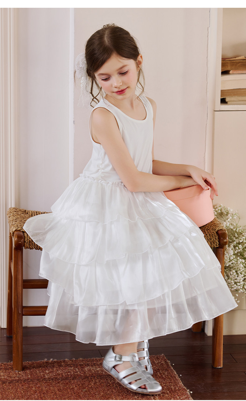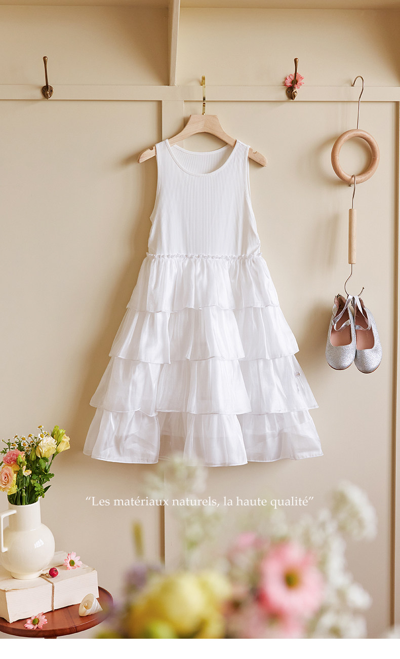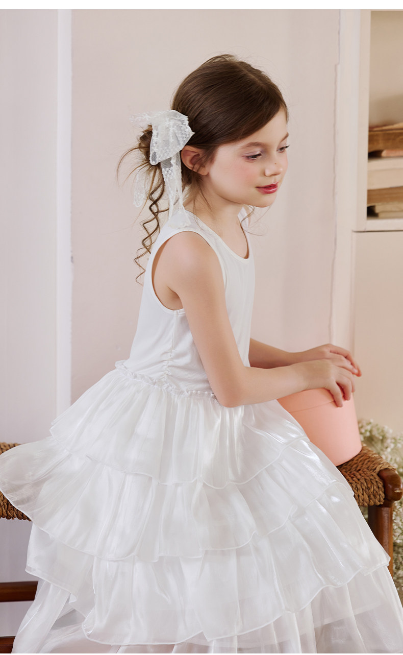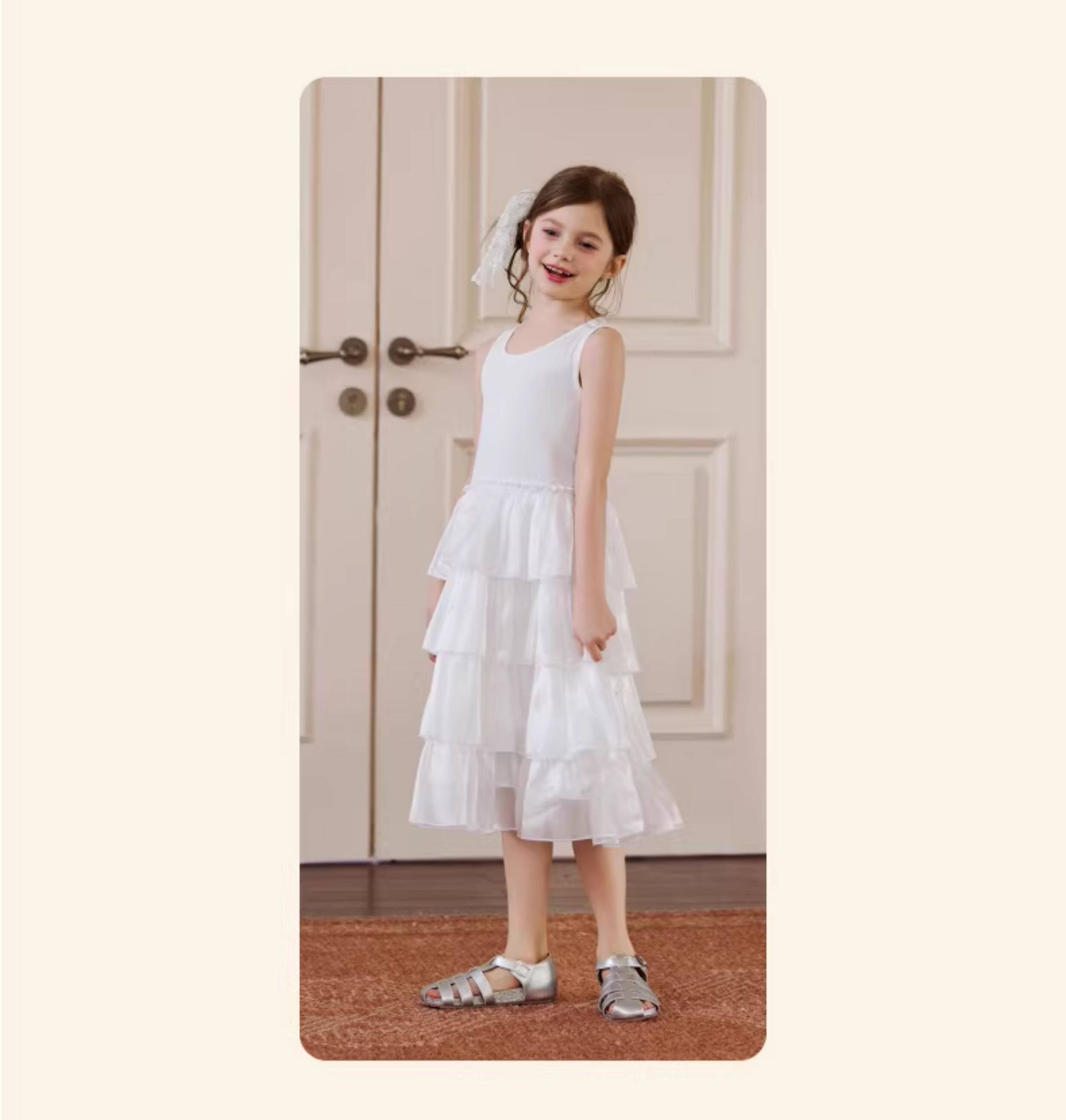 Little Naive女童連衣裙夏季新款公主蛋糕裙子兒童涼感彈力背心裙