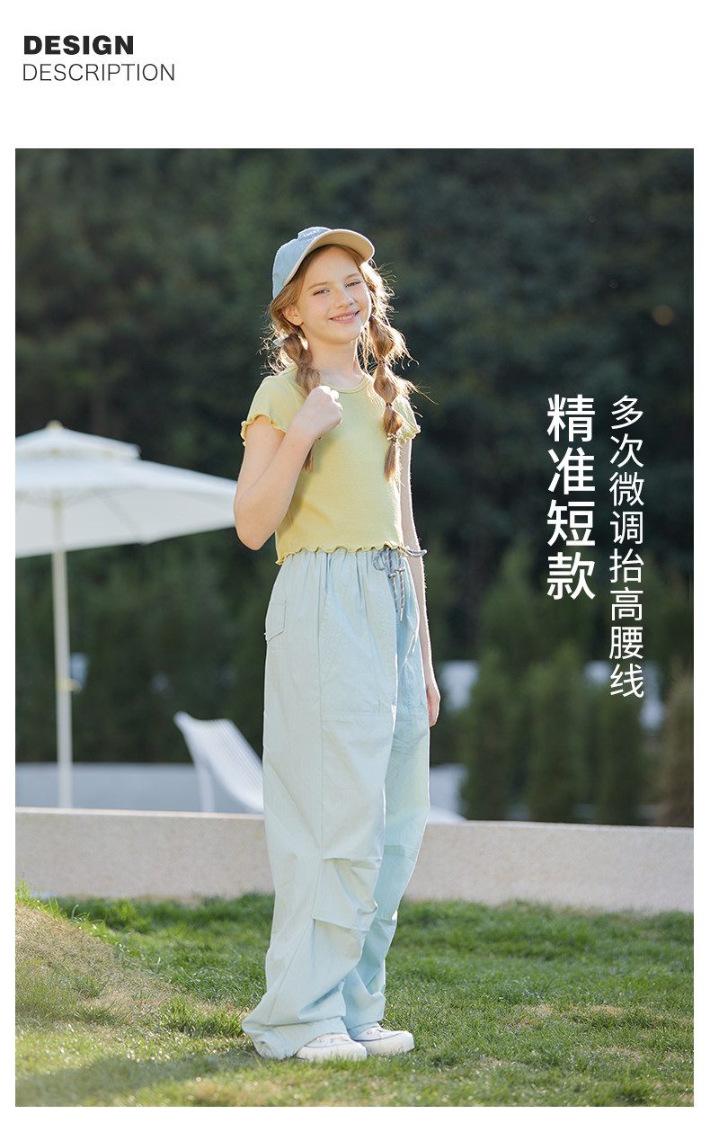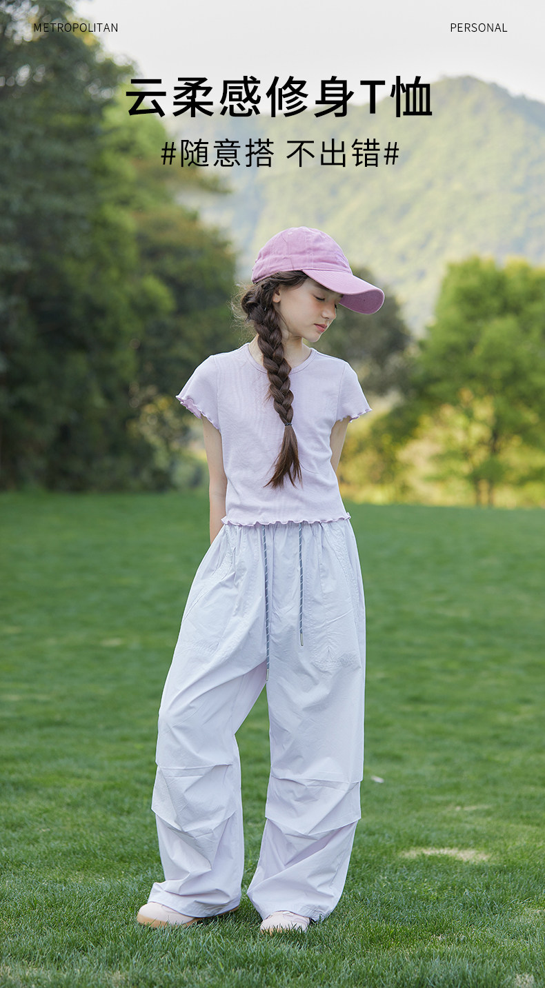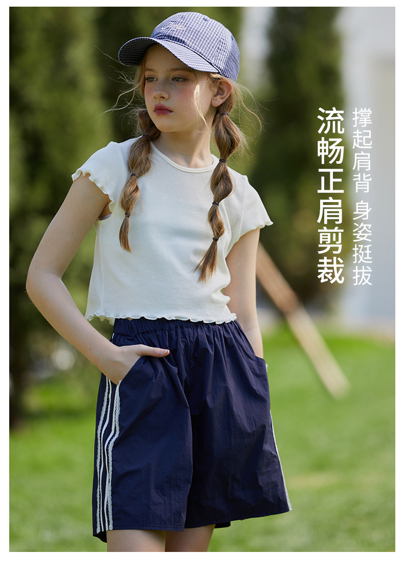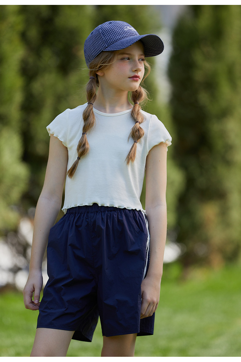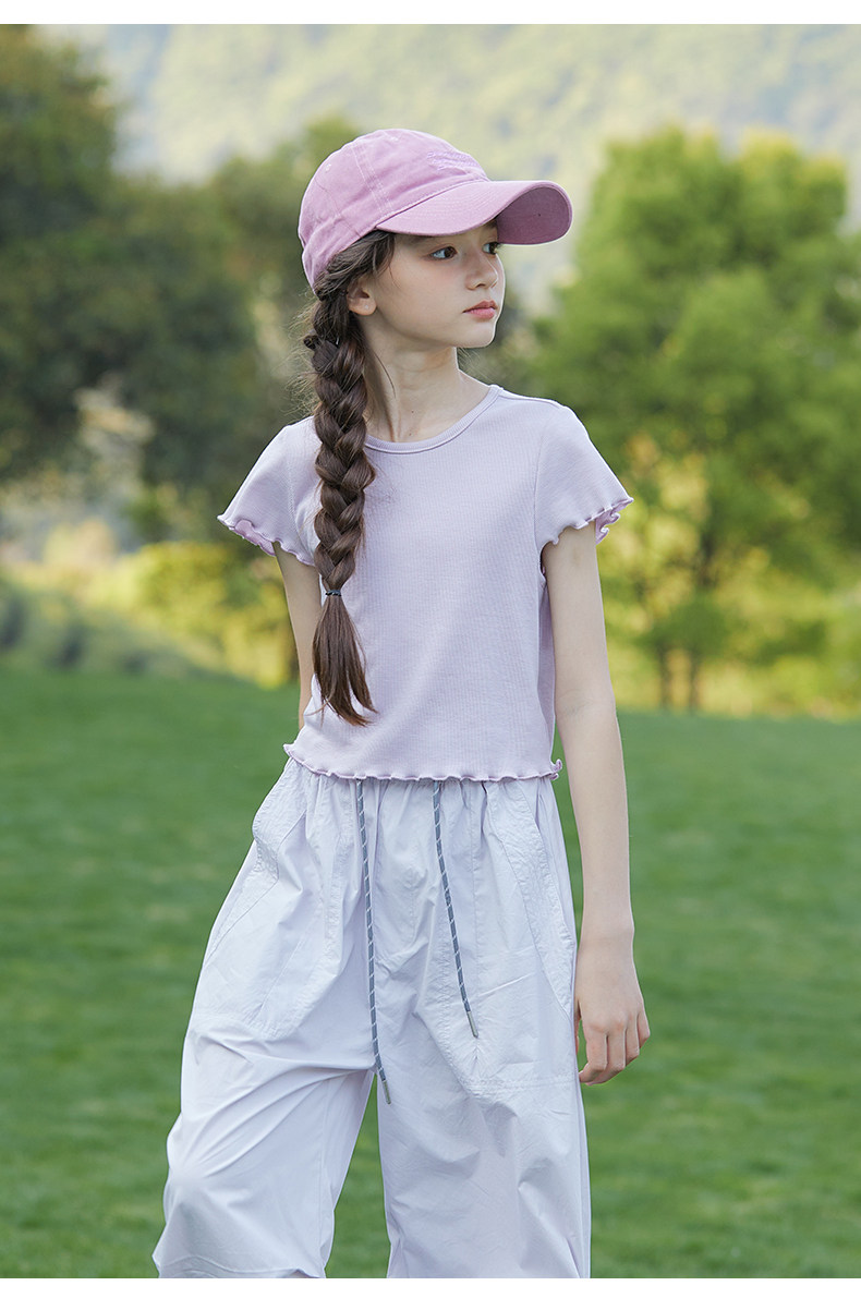 女童木耳邊花邊修身短袖T恤大童2026夏季新款輕薄設計感短款上衣