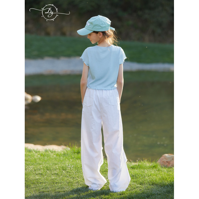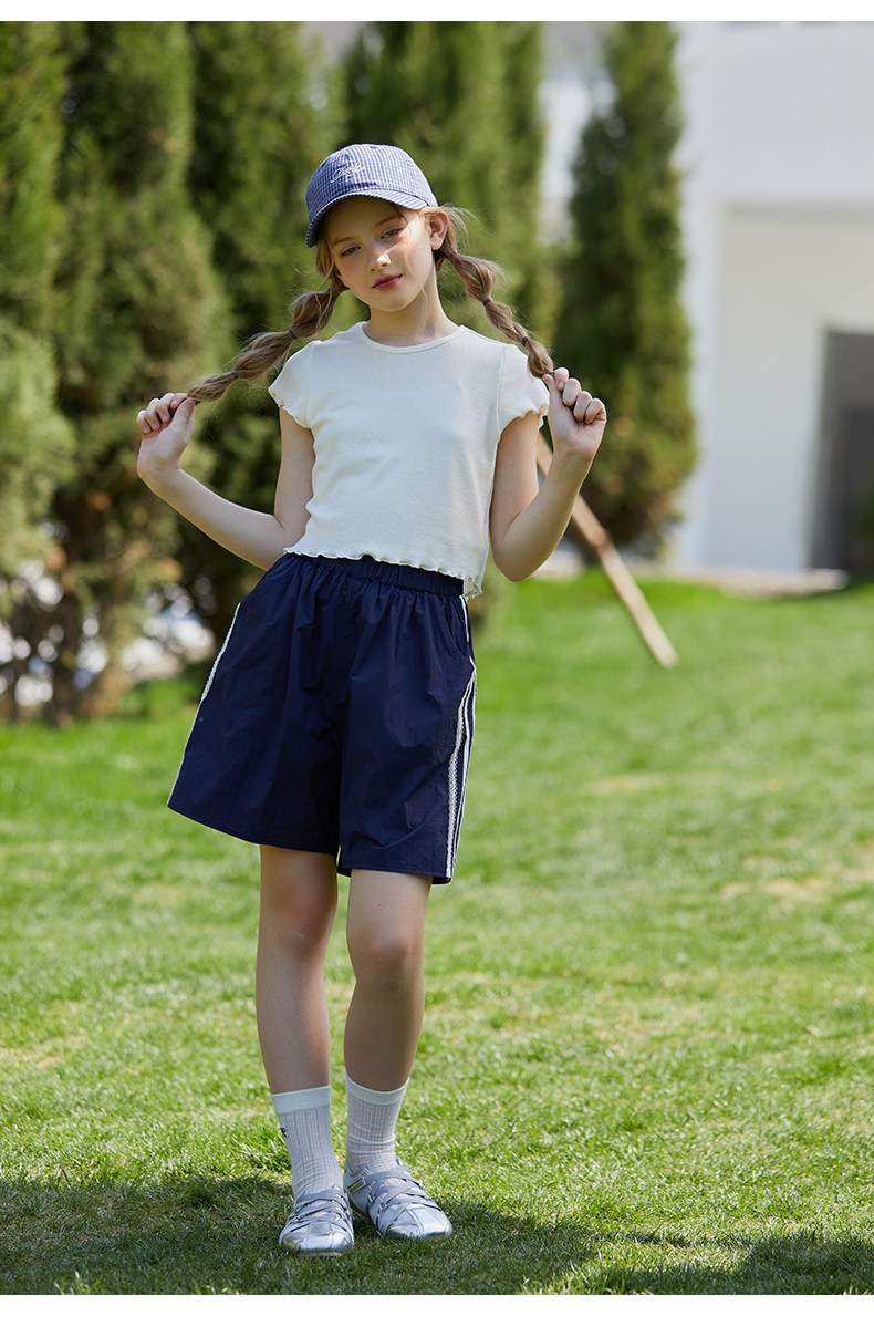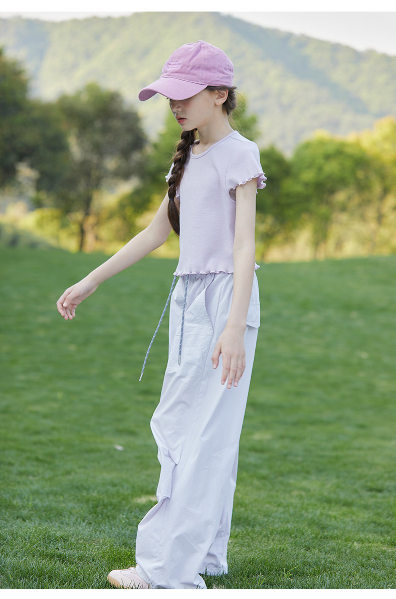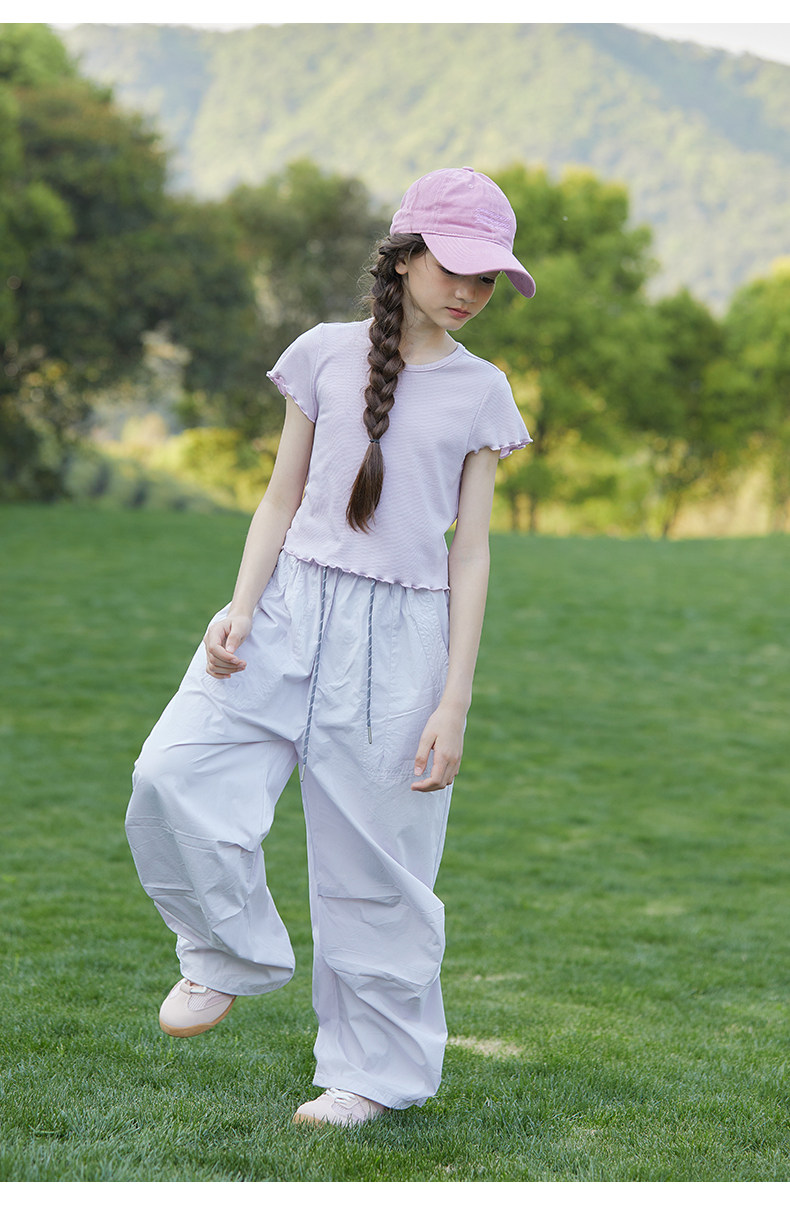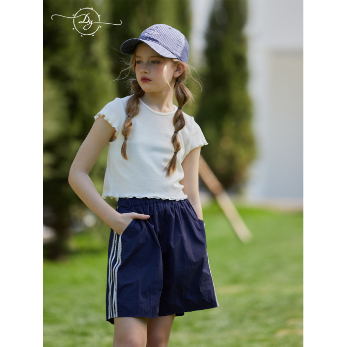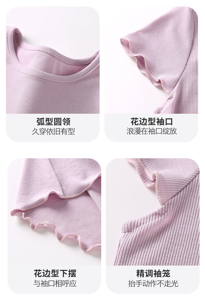 女童木耳邊花邊修身短袖T恤大童2026夏季新款輕薄設計感短款上衣