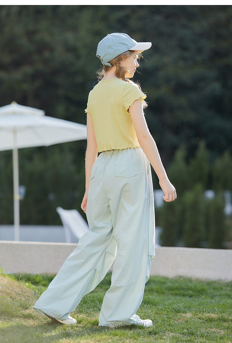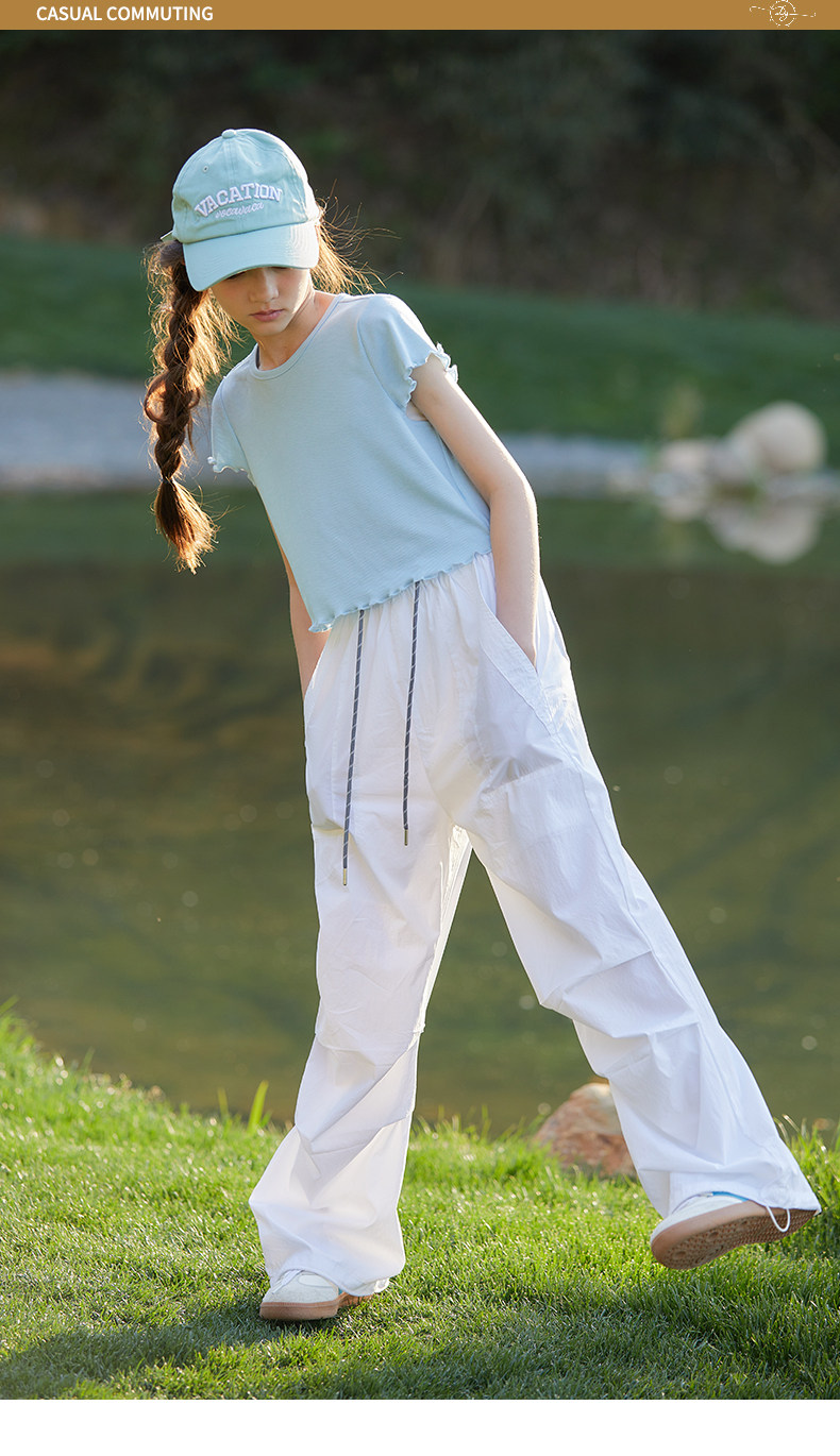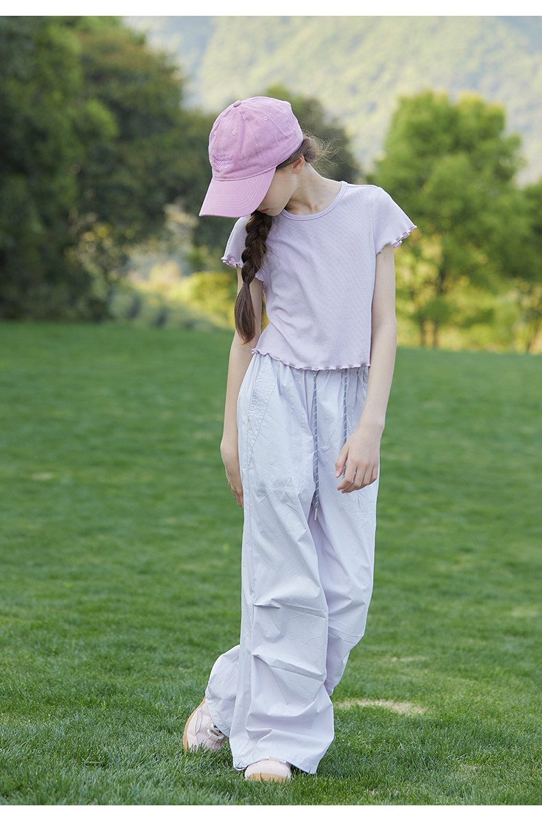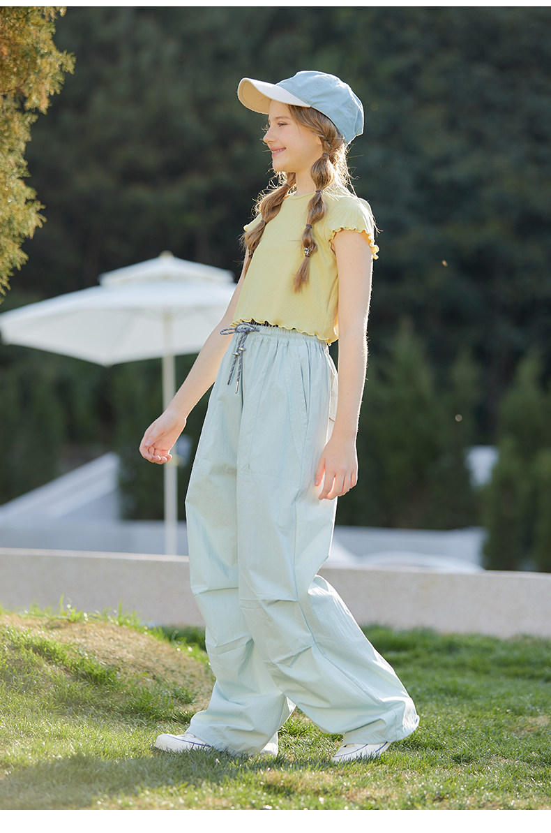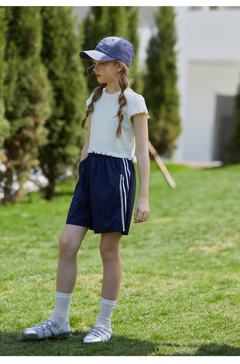 女童木耳邊花邊修身短袖T恤大童2026夏季新款輕薄設計感短款上衣