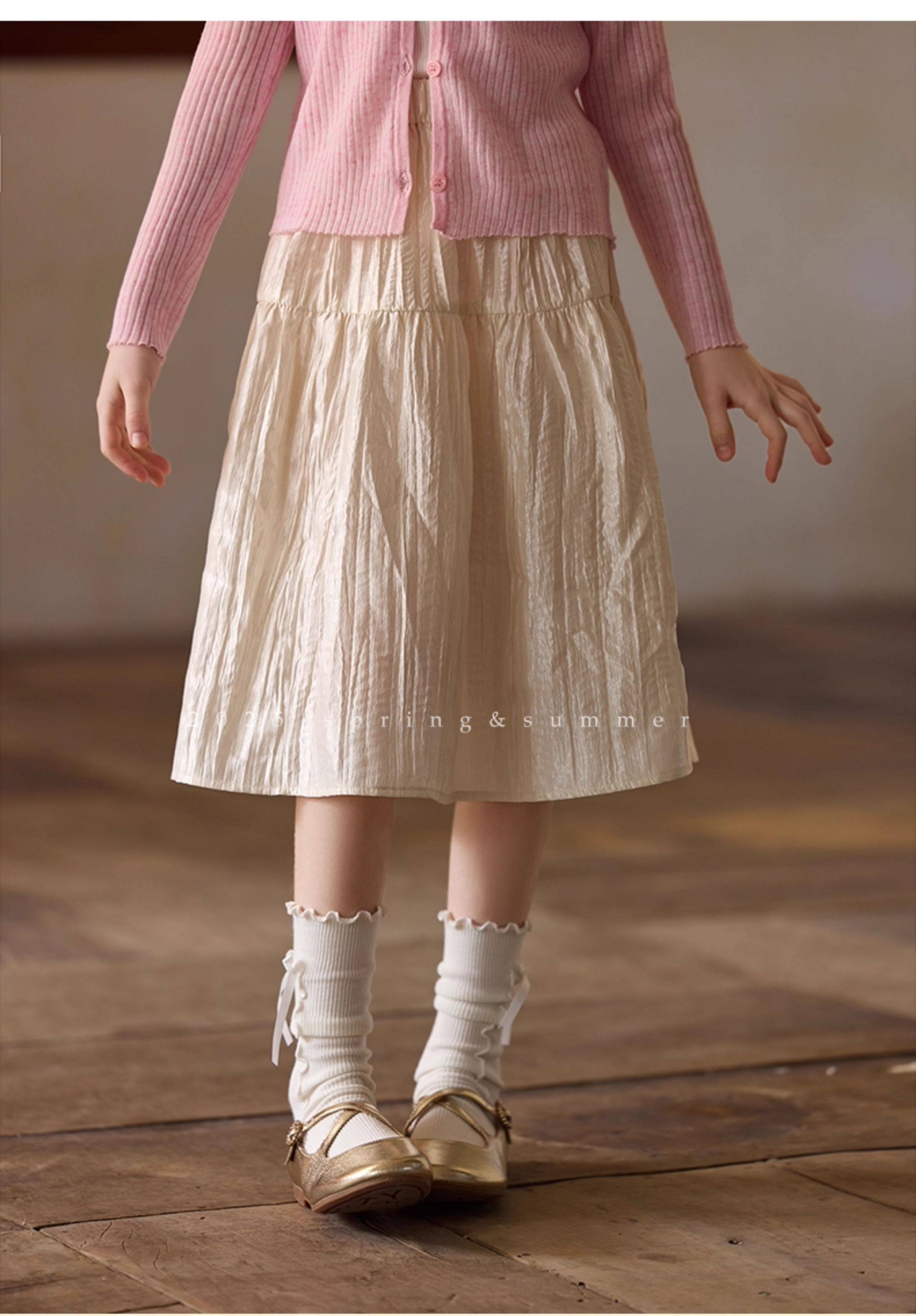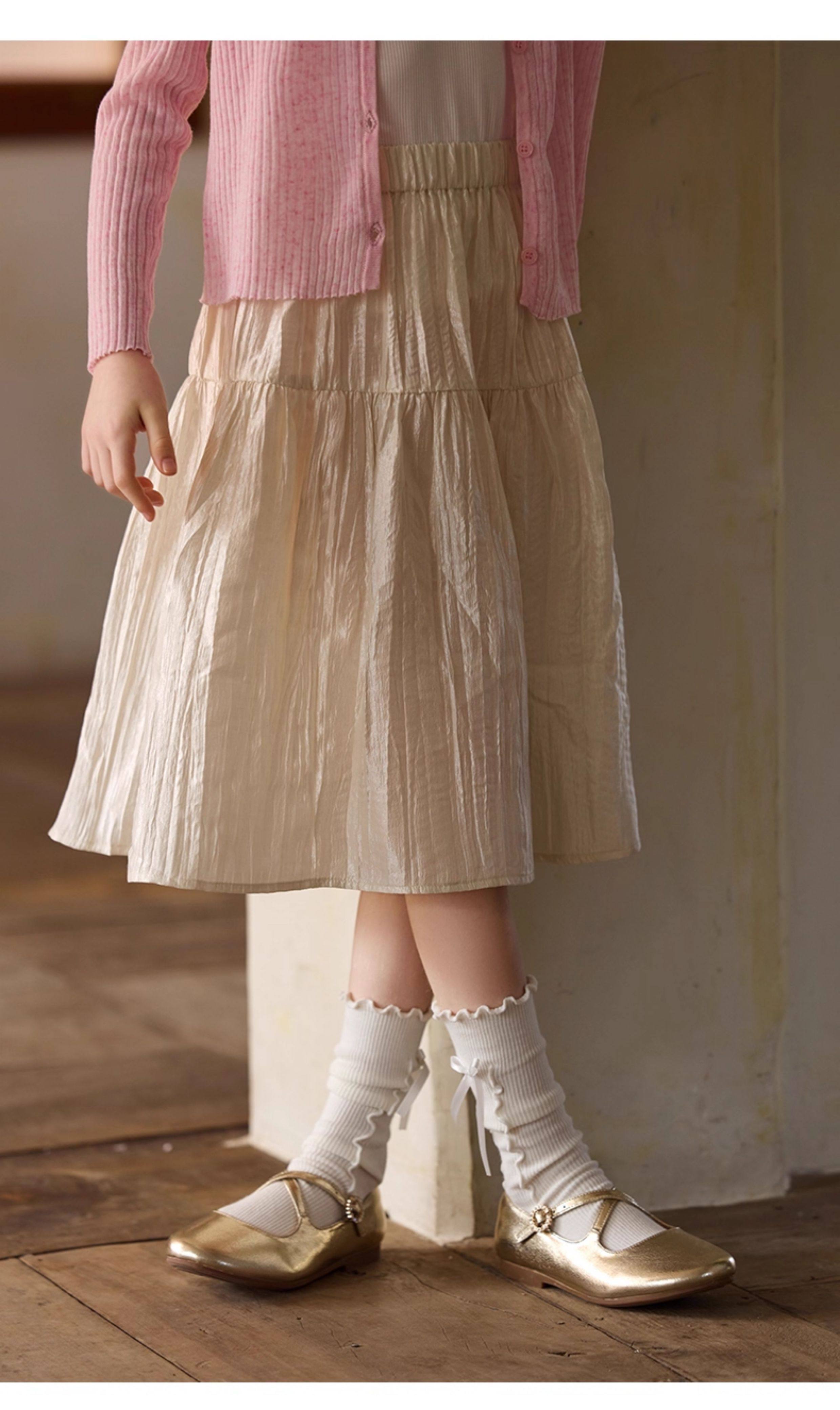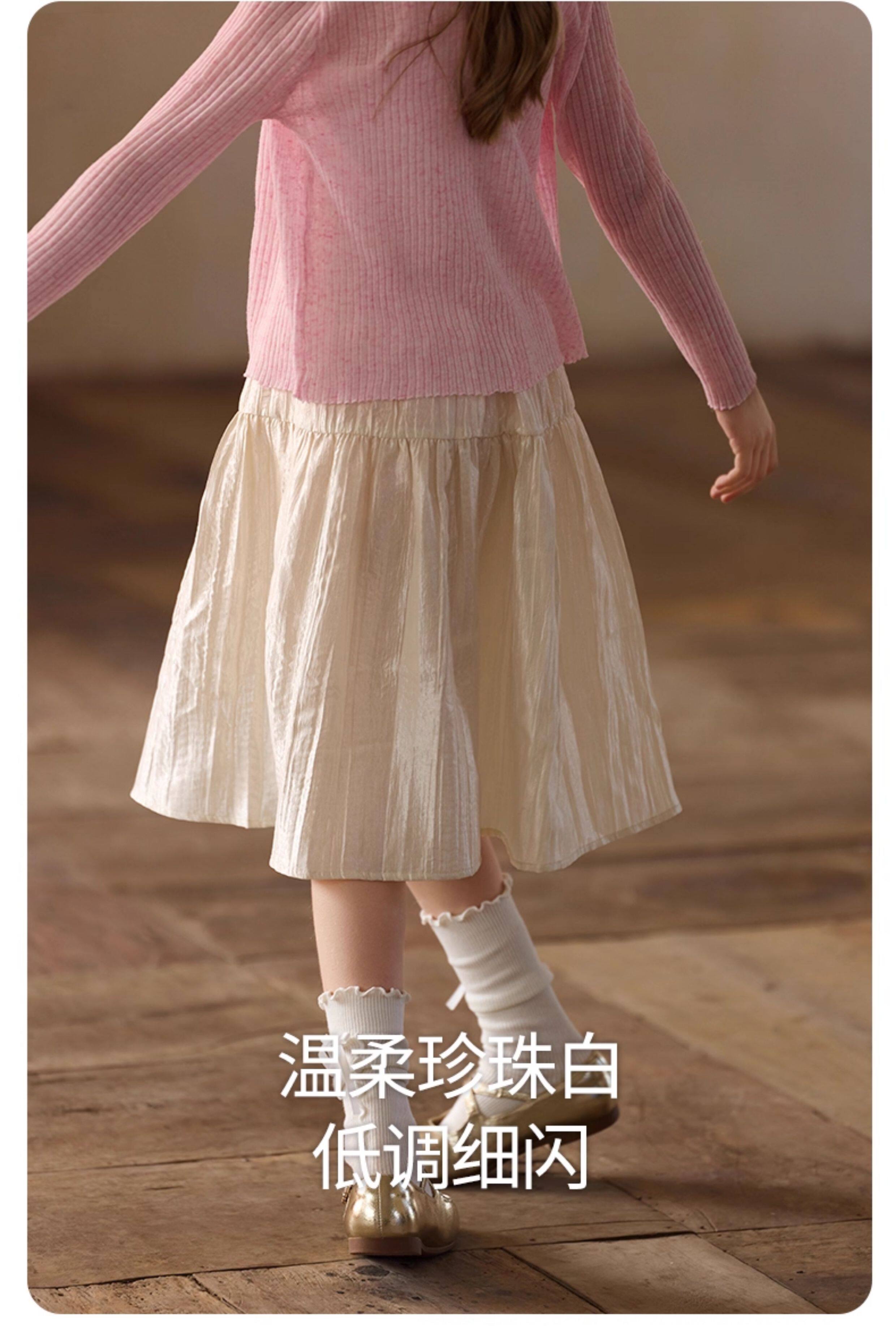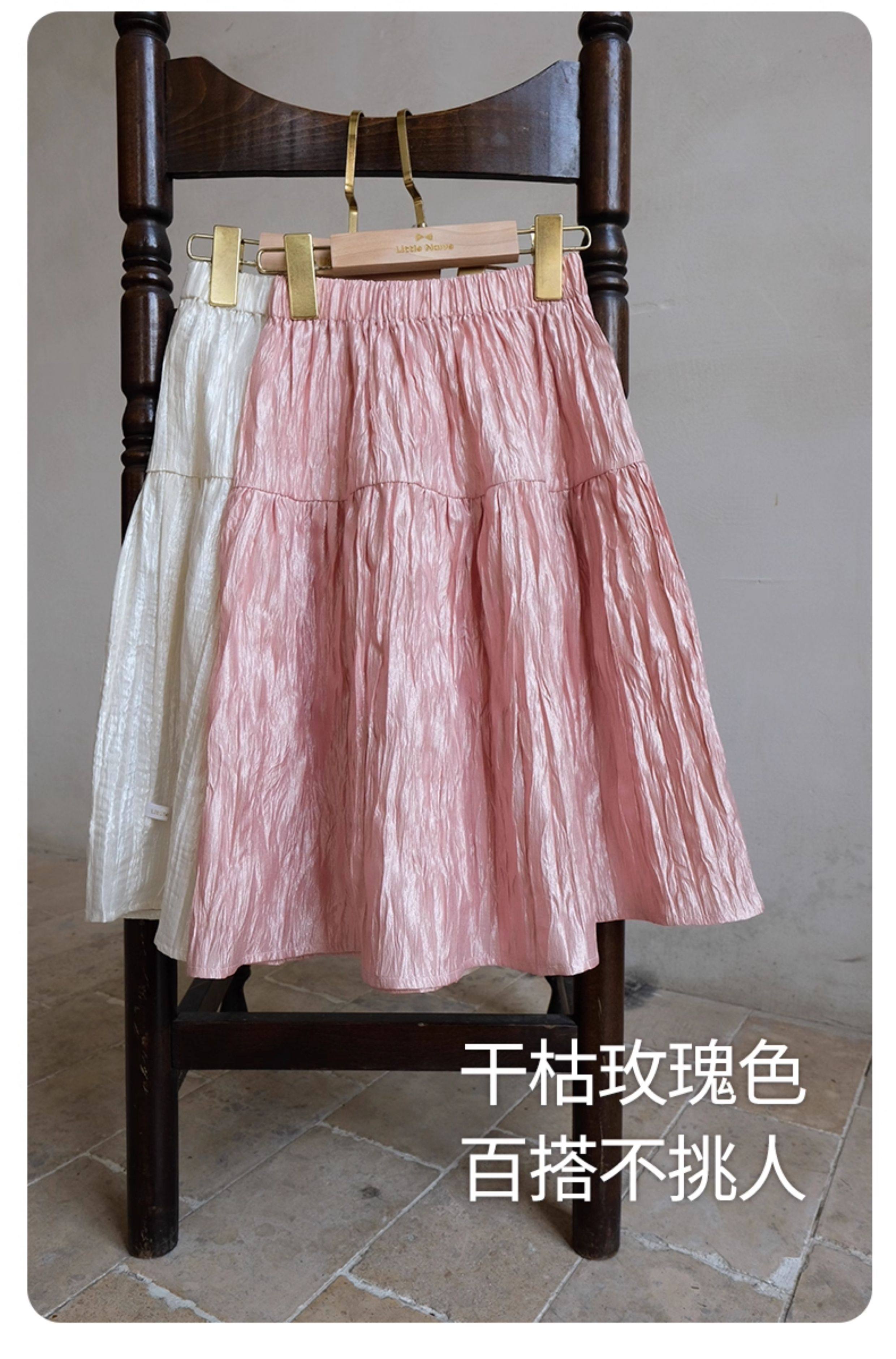 Little Naive兒童半身裙春夏新款光澤皺感裙子女童中長款甜美半裙