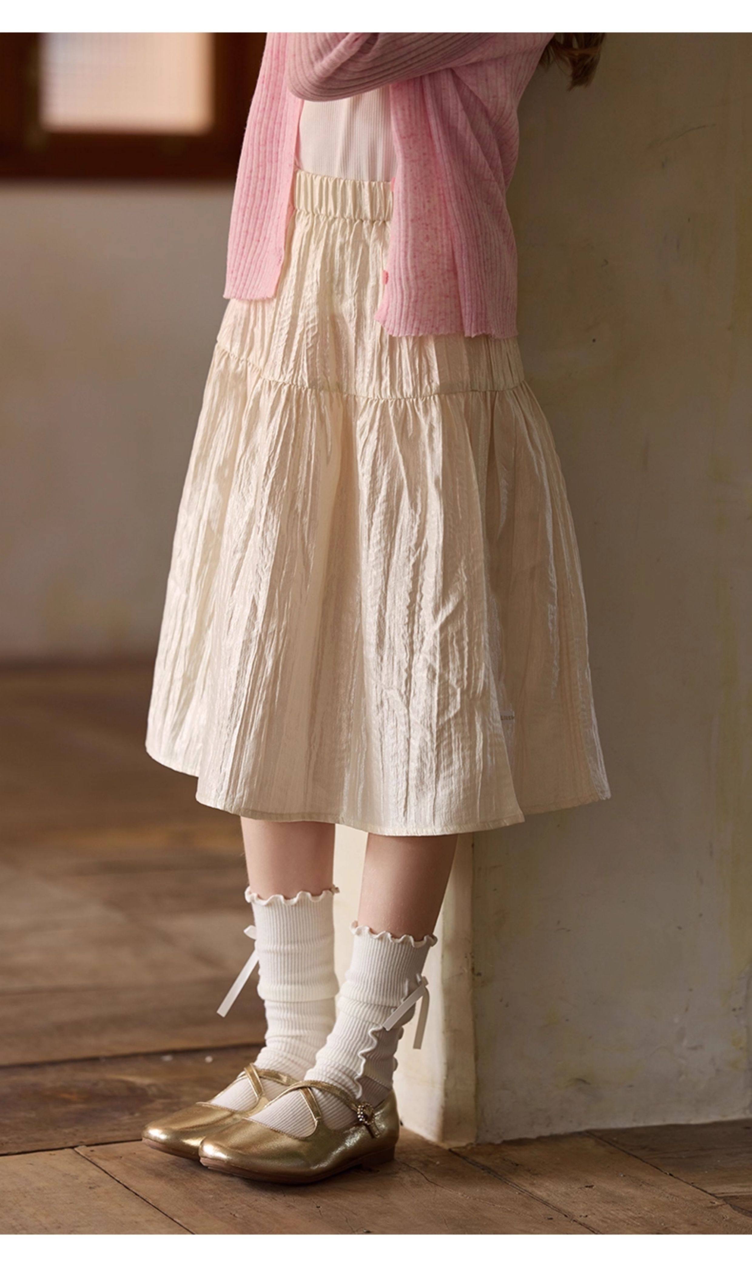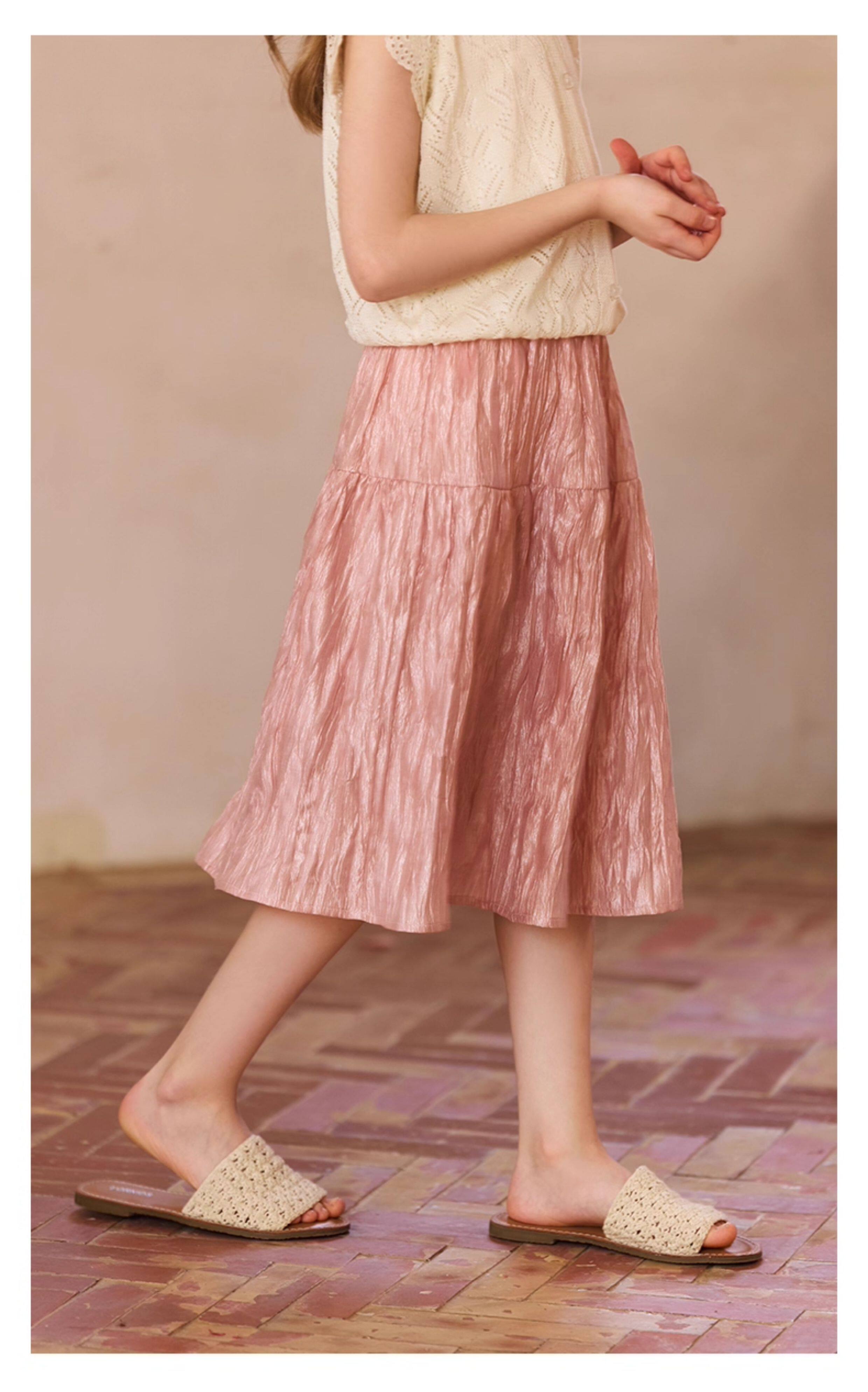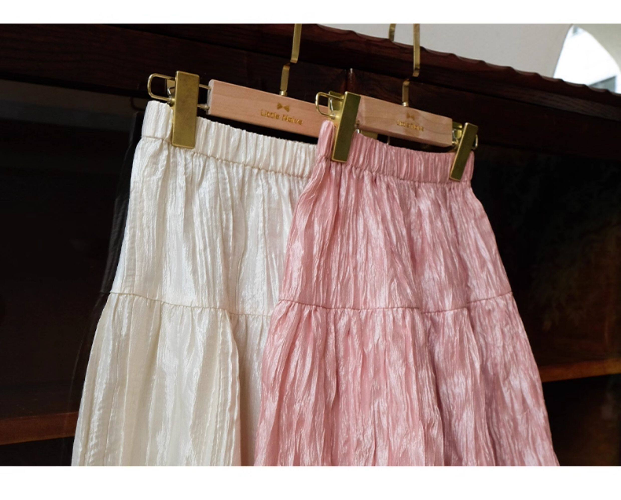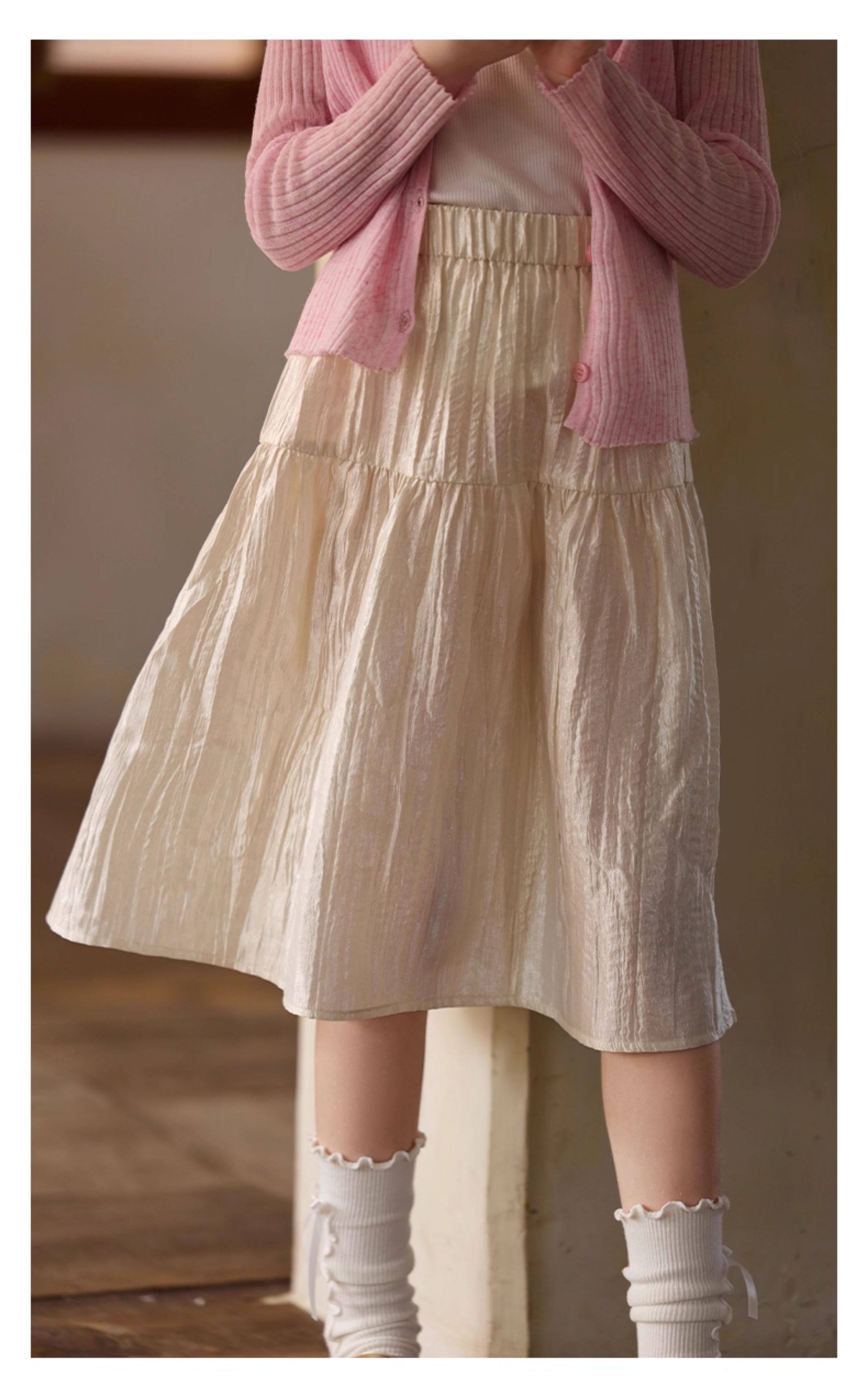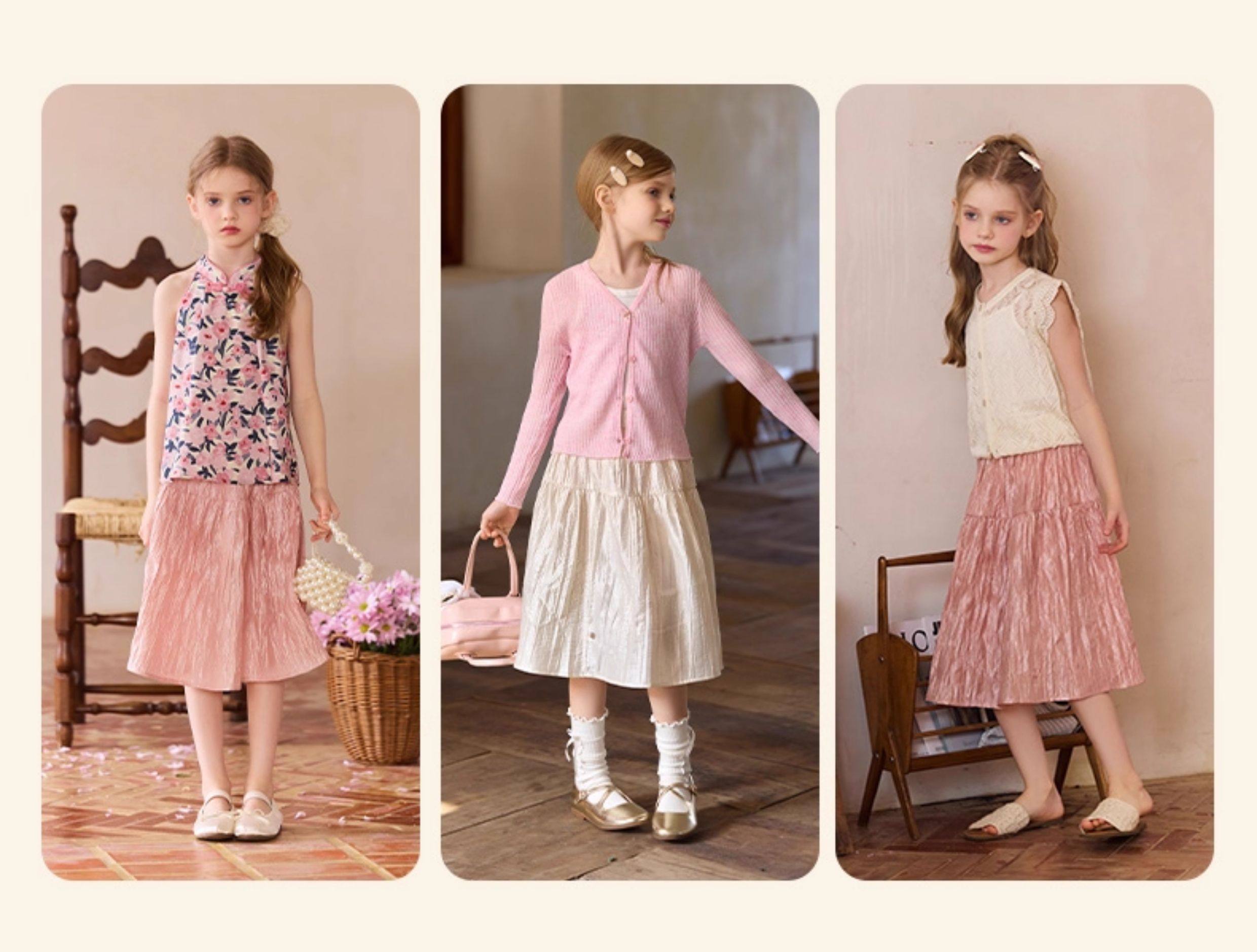 Little Naive兒童半身裙春夏新款光澤皺感裙子女童中長款甜美半裙