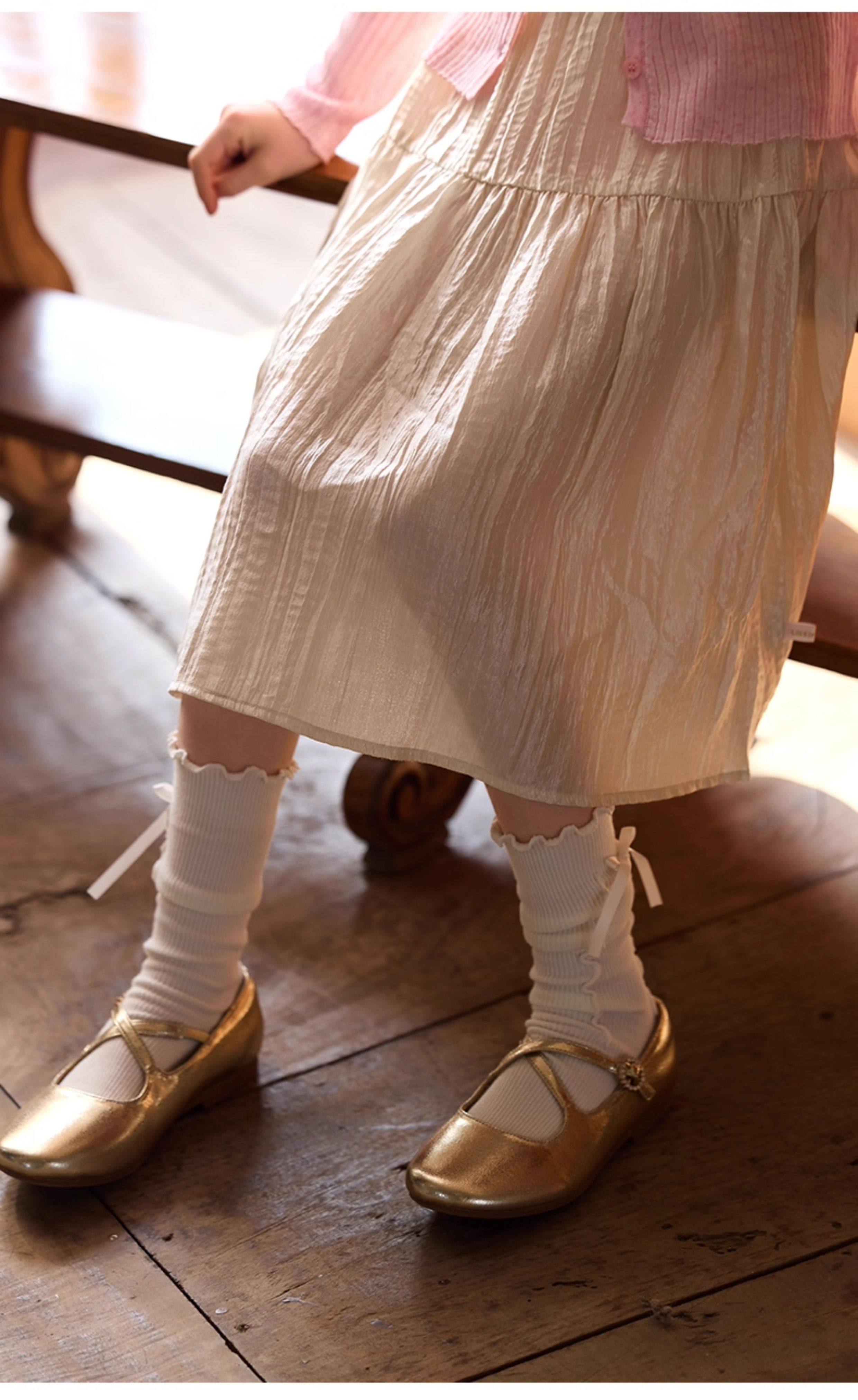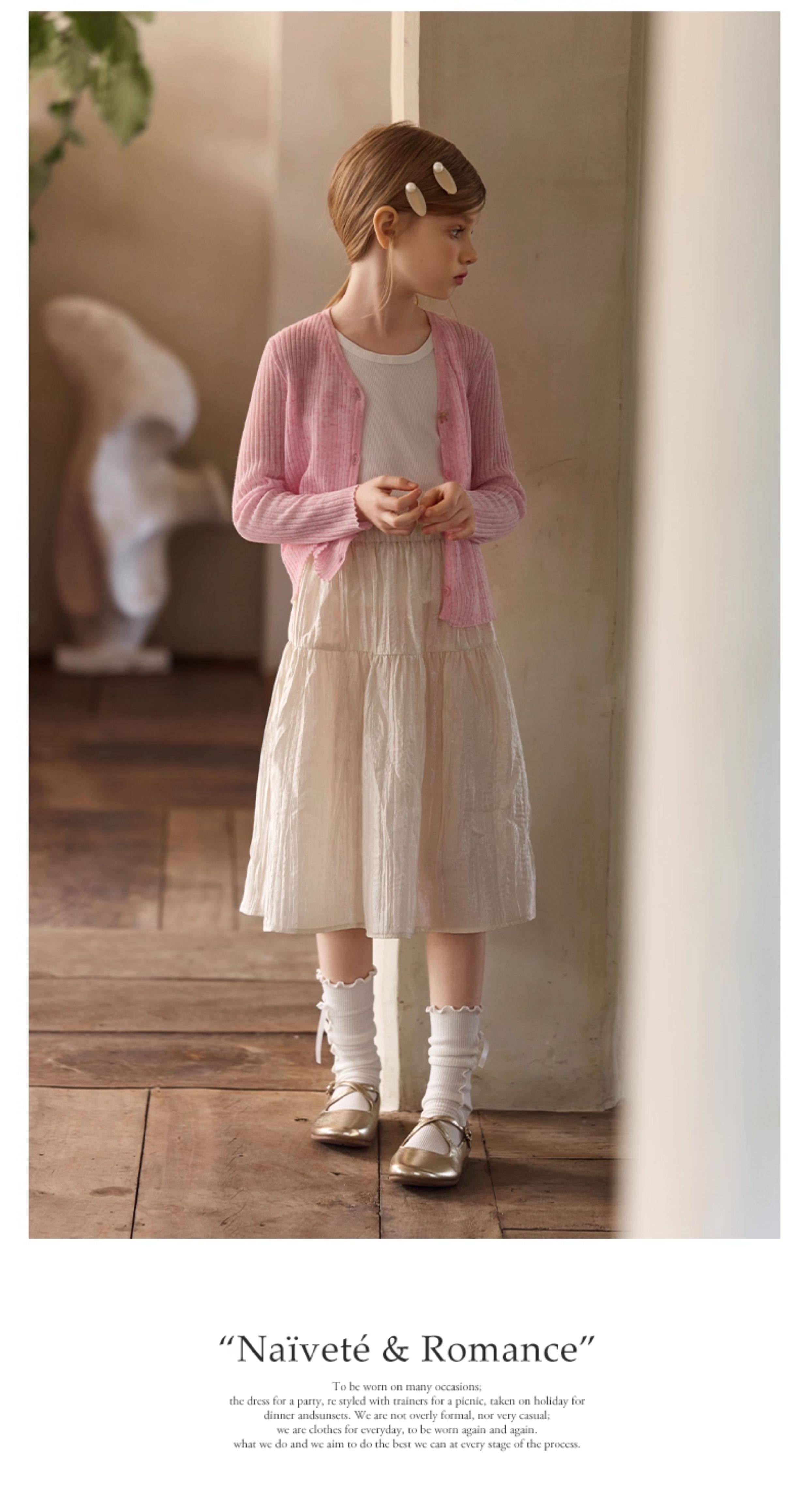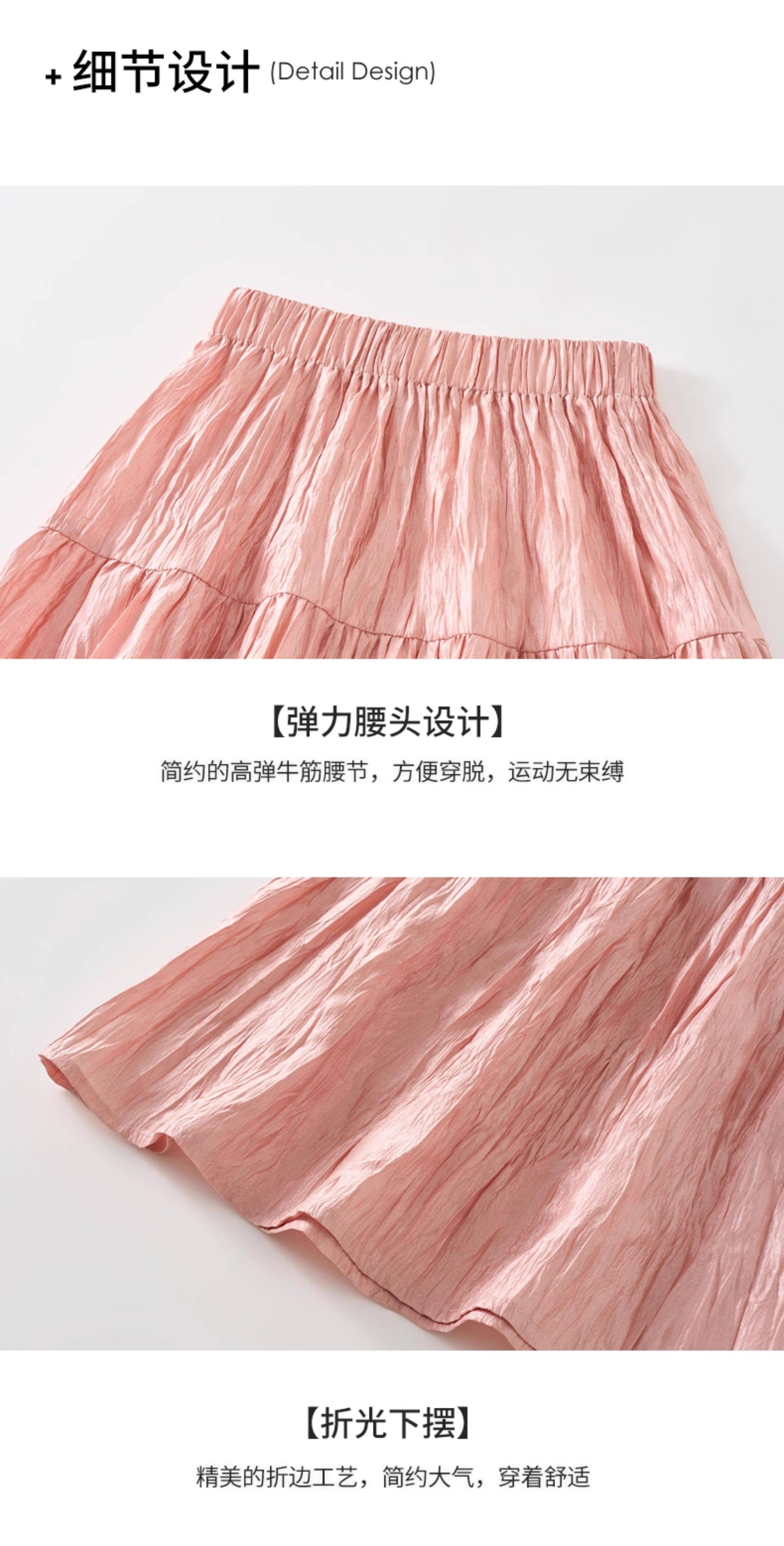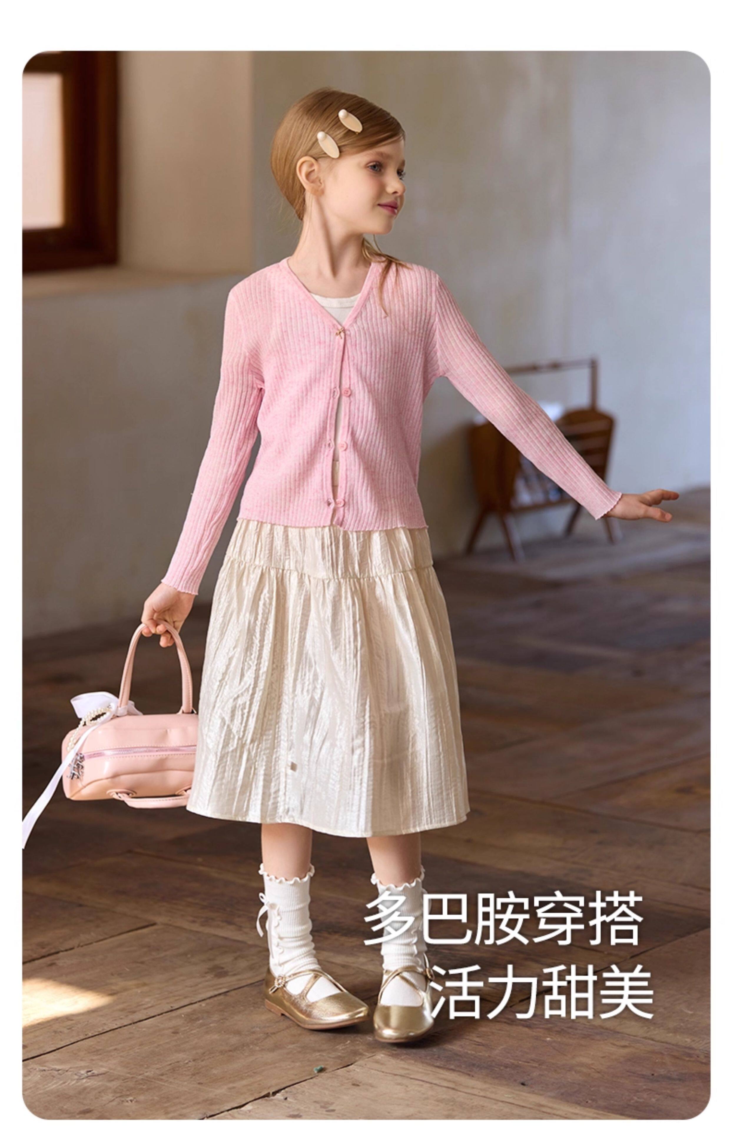Little Naive兒童半身裙春夏新款光澤皺感裙子女童中長款甜美半裙