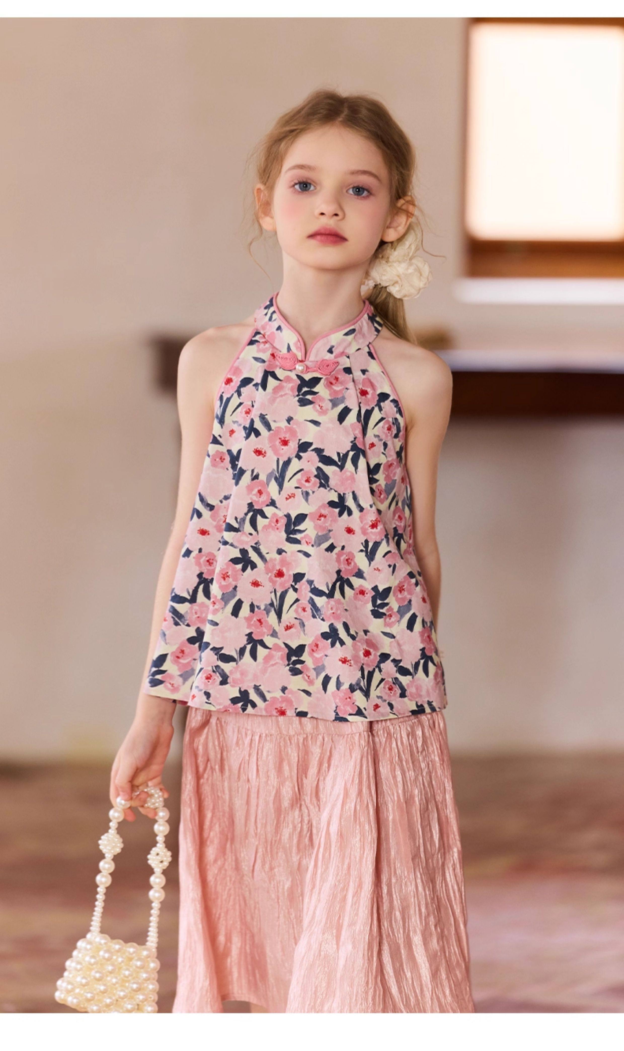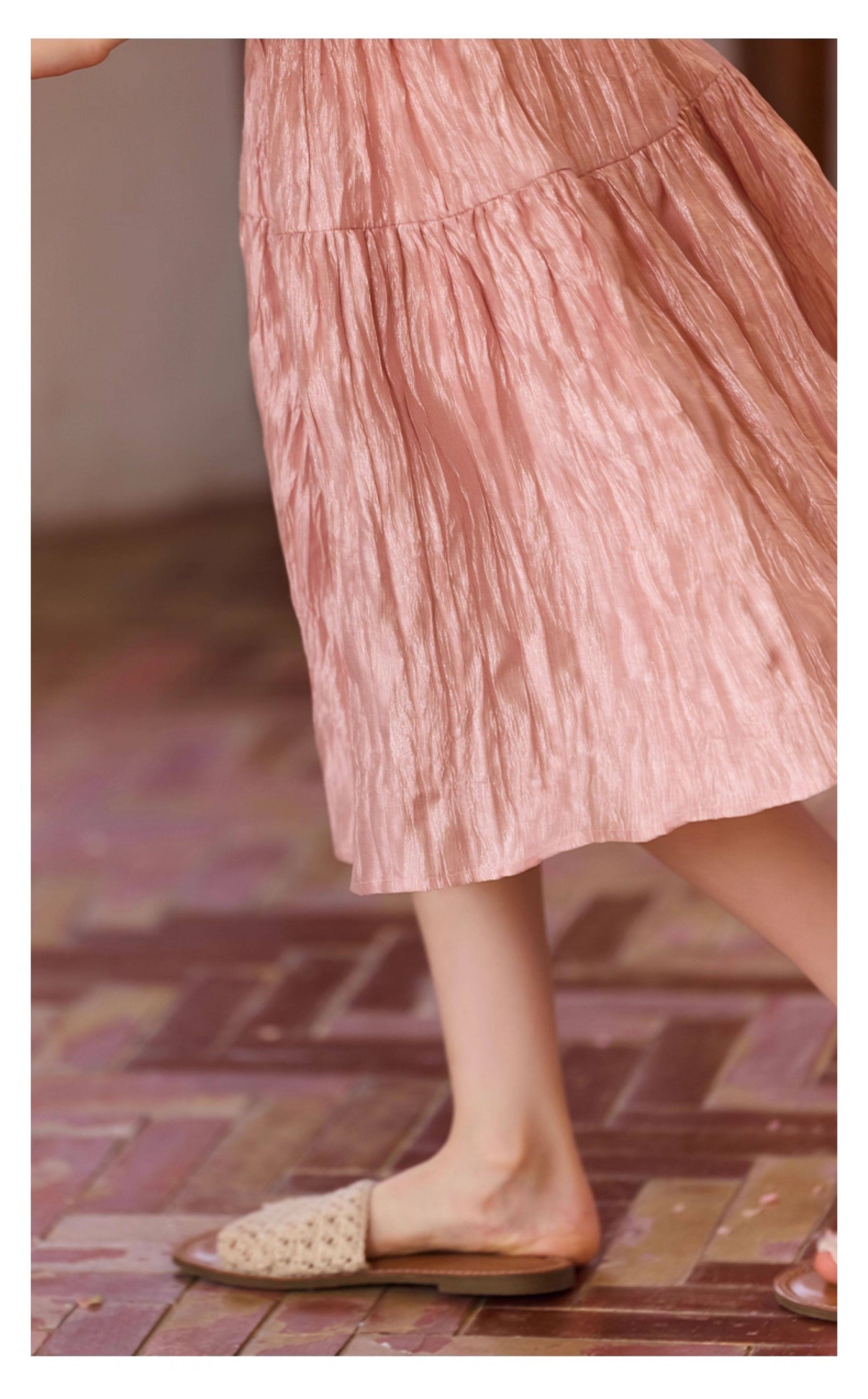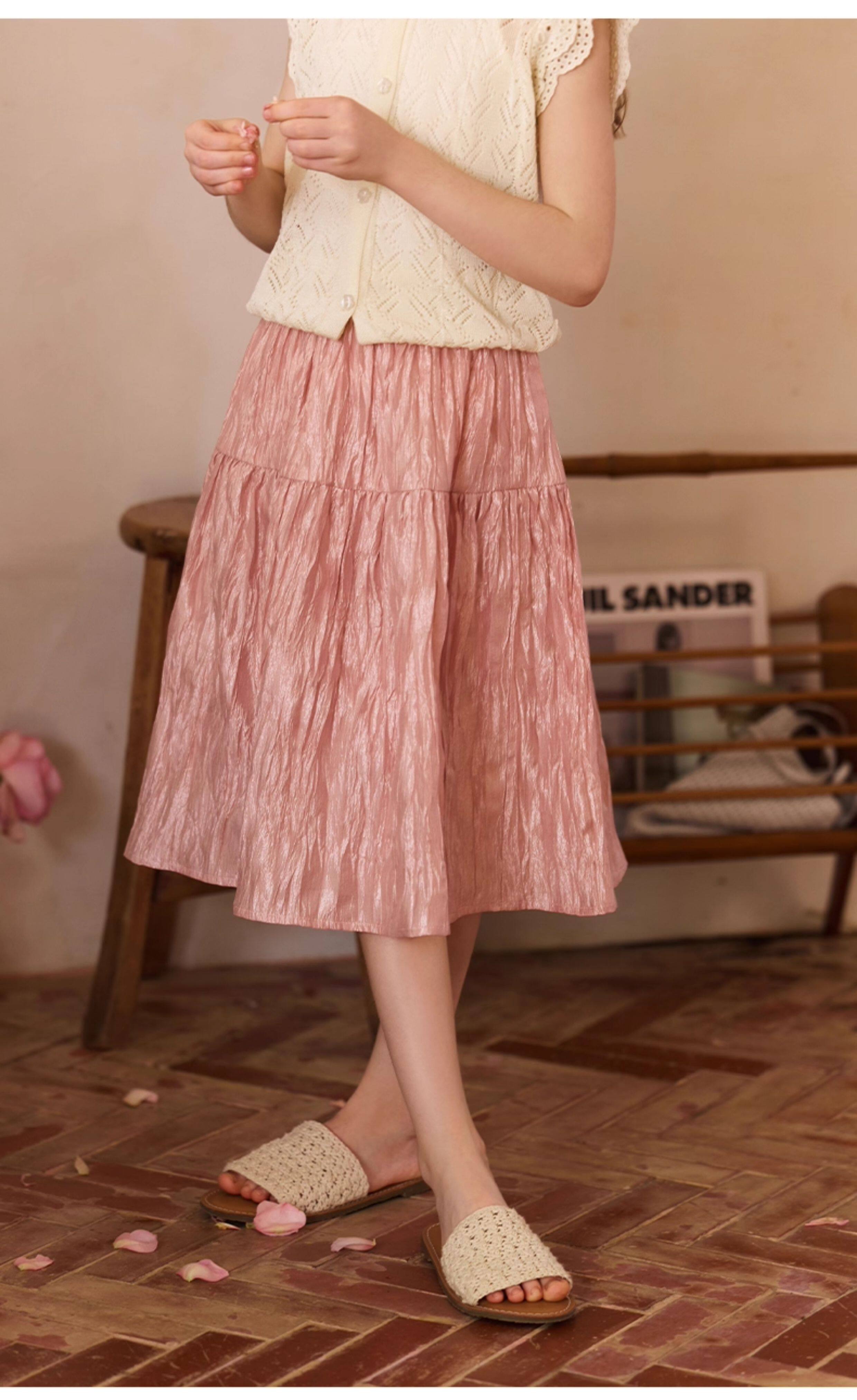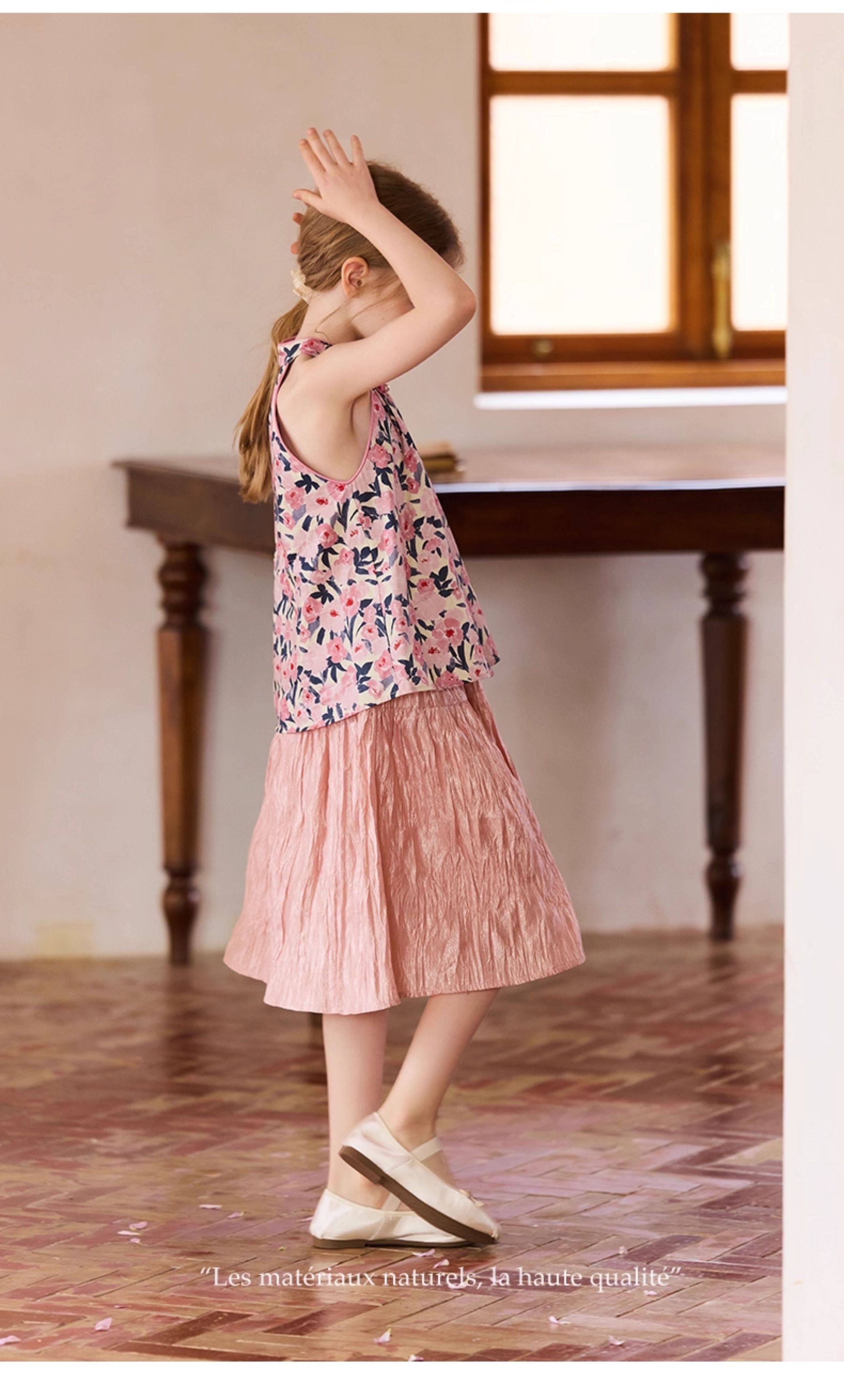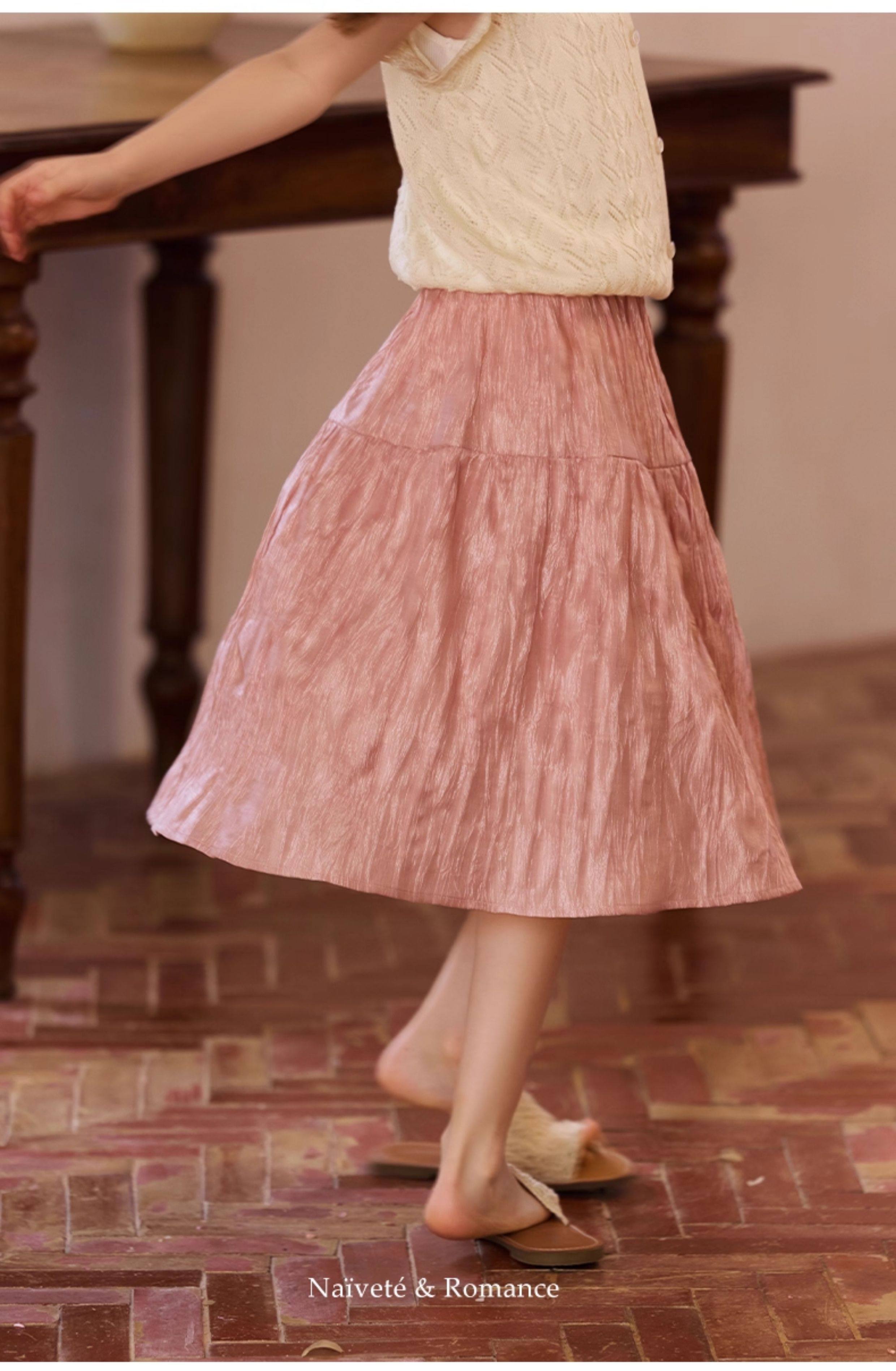 Little Naive兒童半身裙春夏新款光澤皺感裙子女童中長款甜美半裙