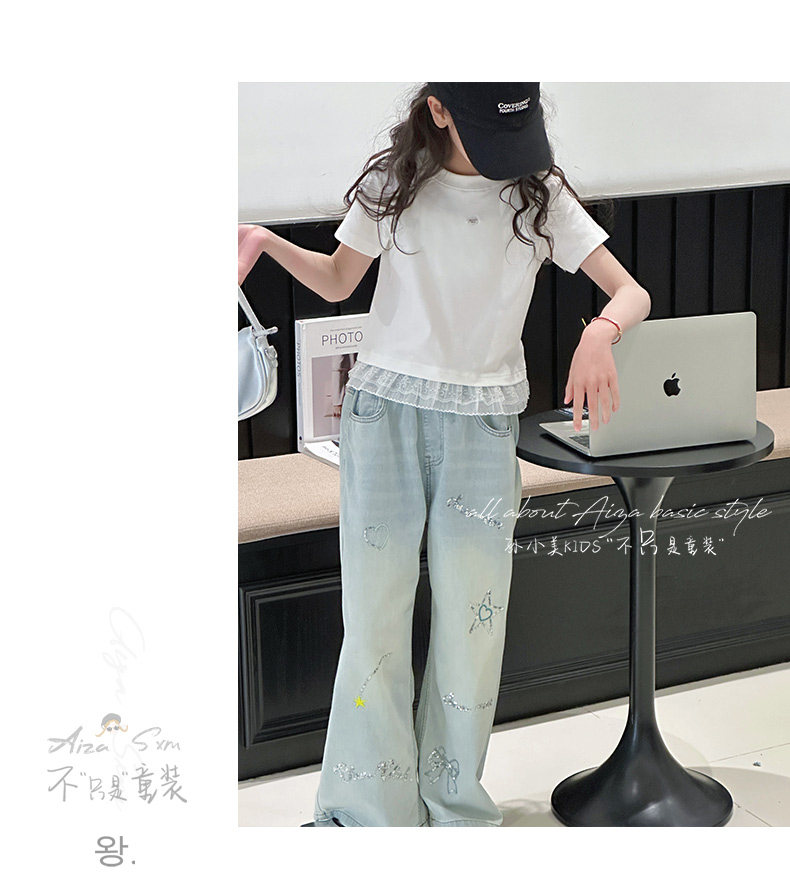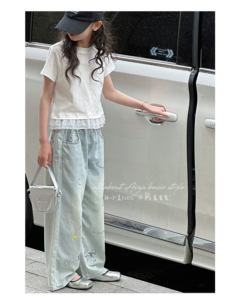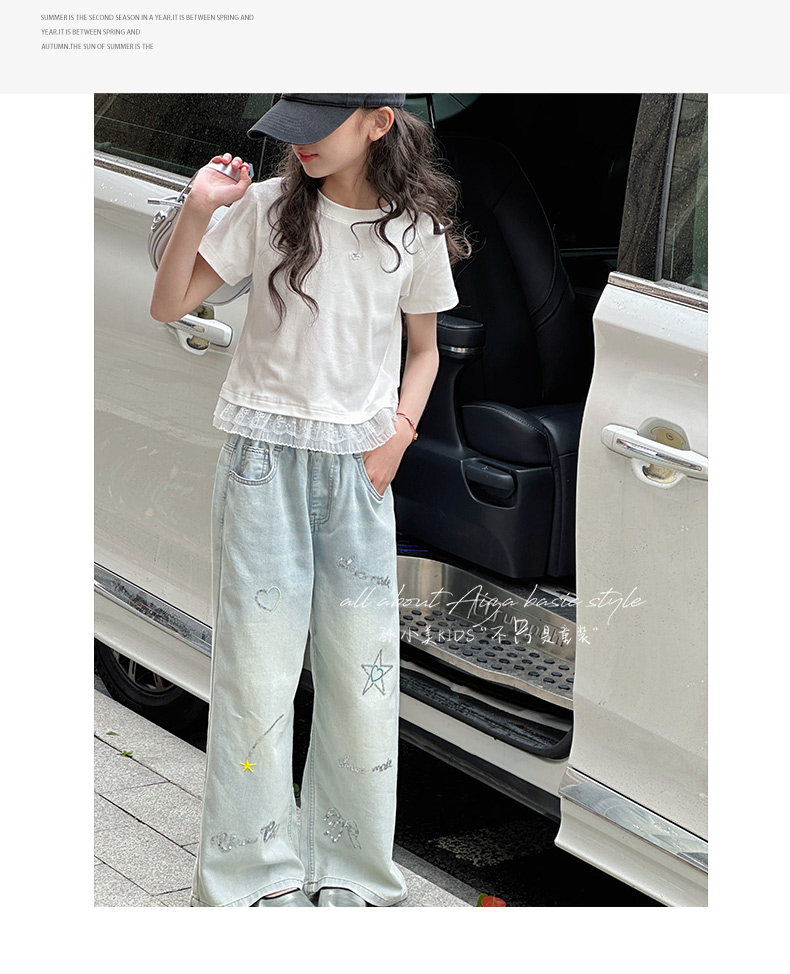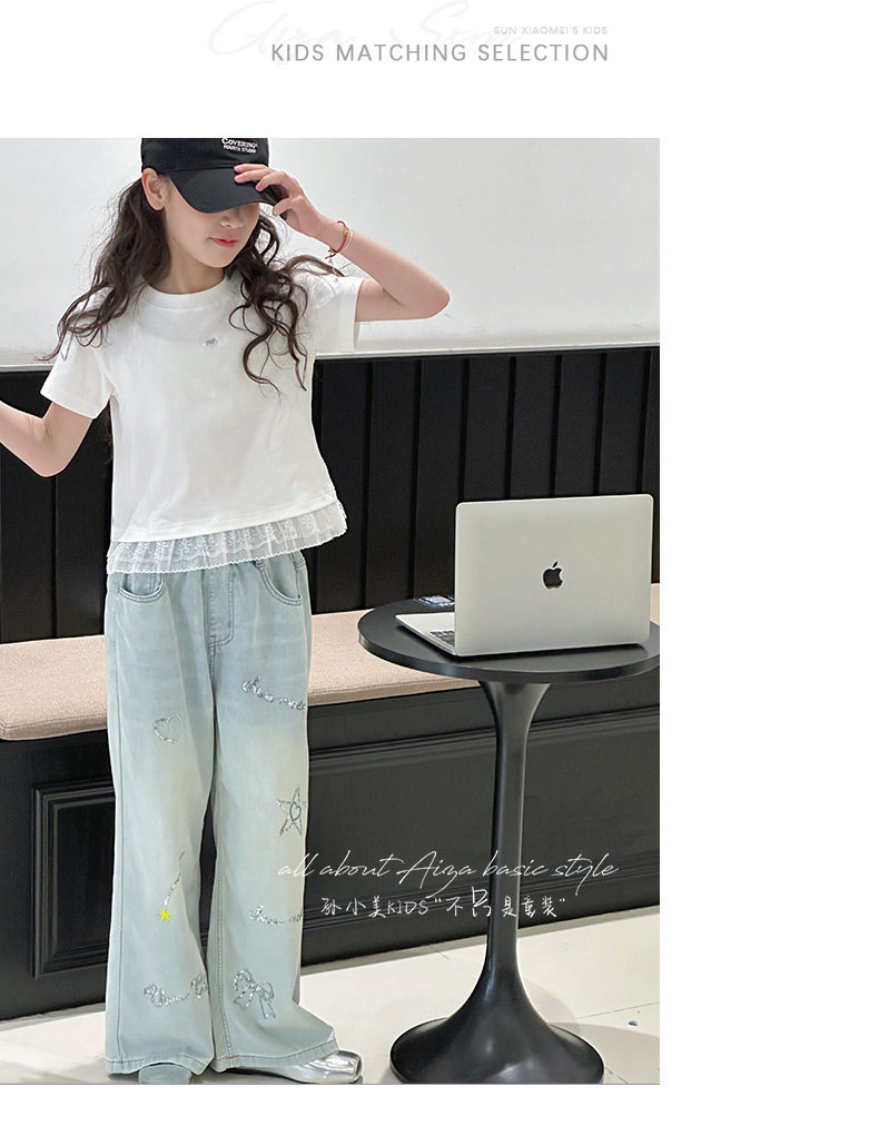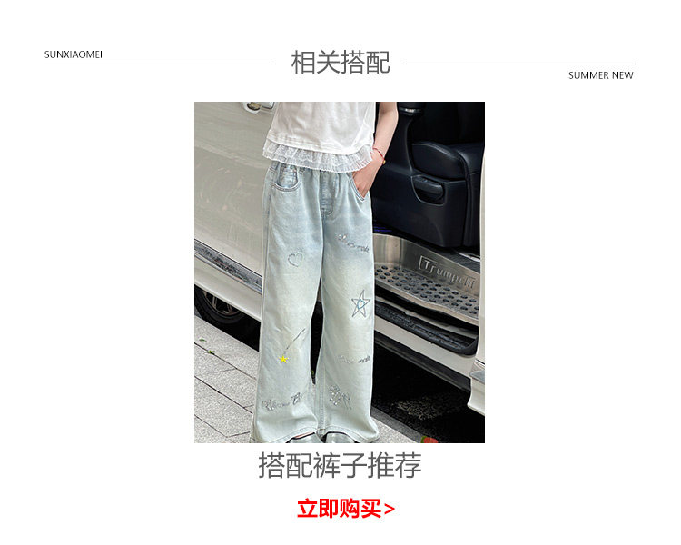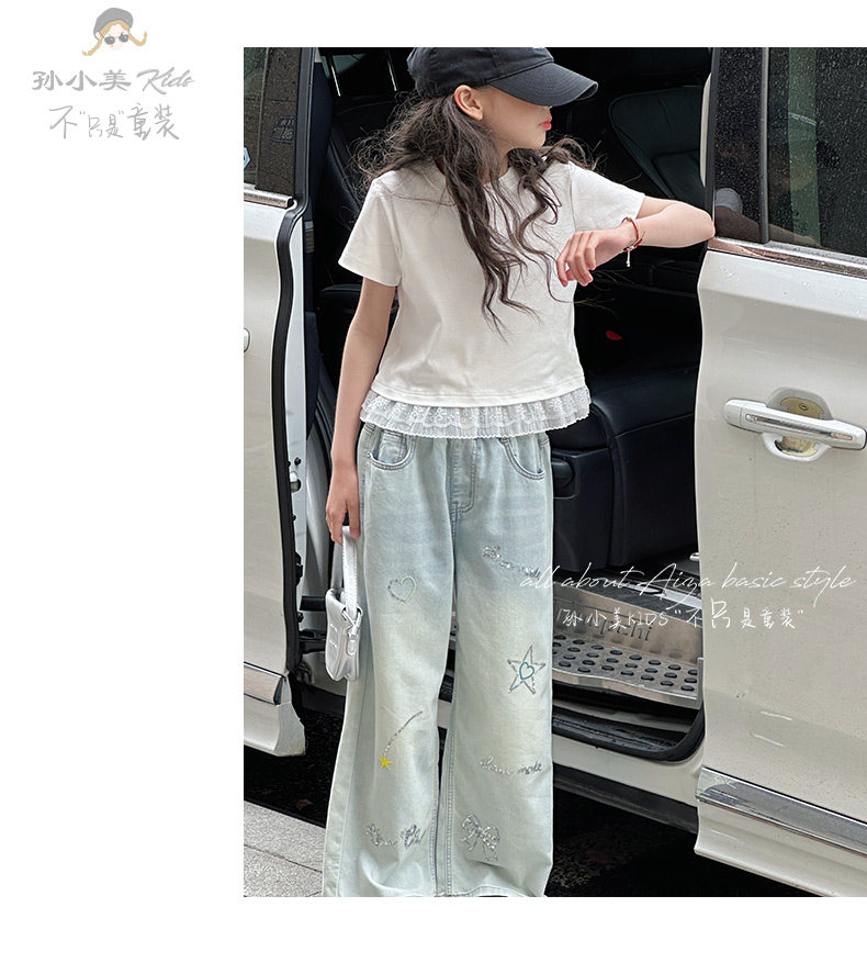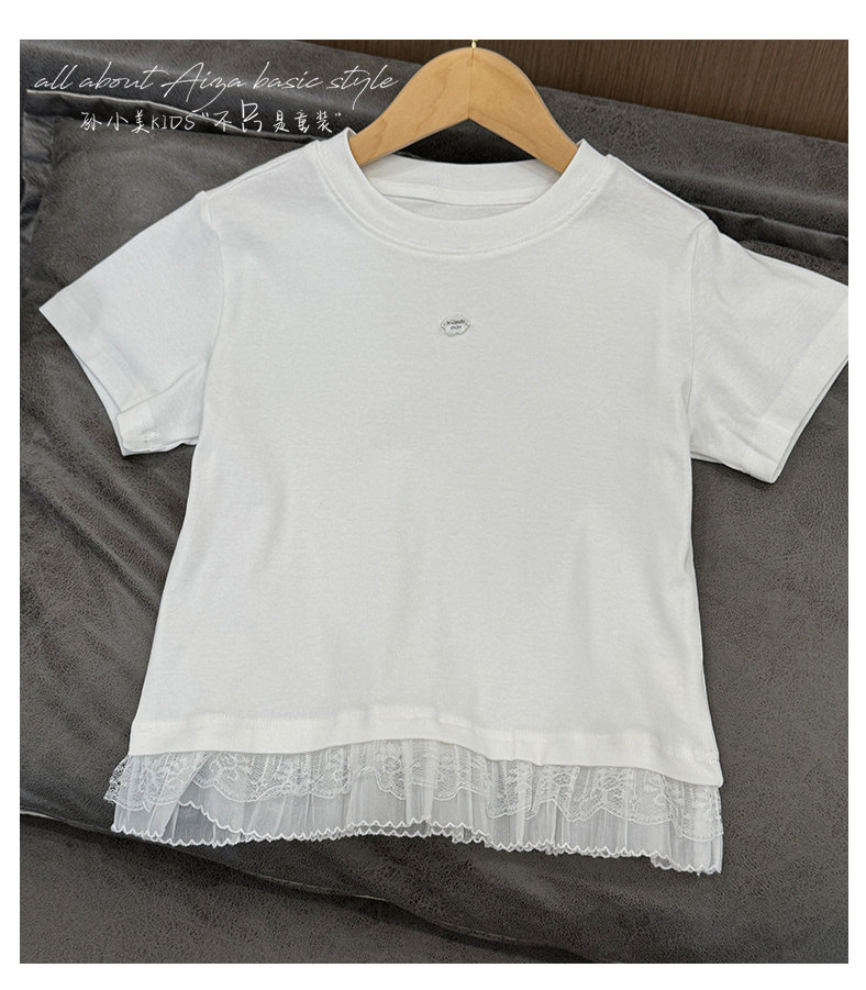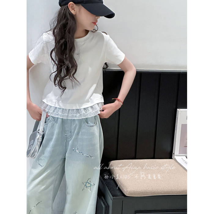 孫小美kids 芭蕾風女童短袖T恤2025新款夏裝兒童上衣大童短款衣服