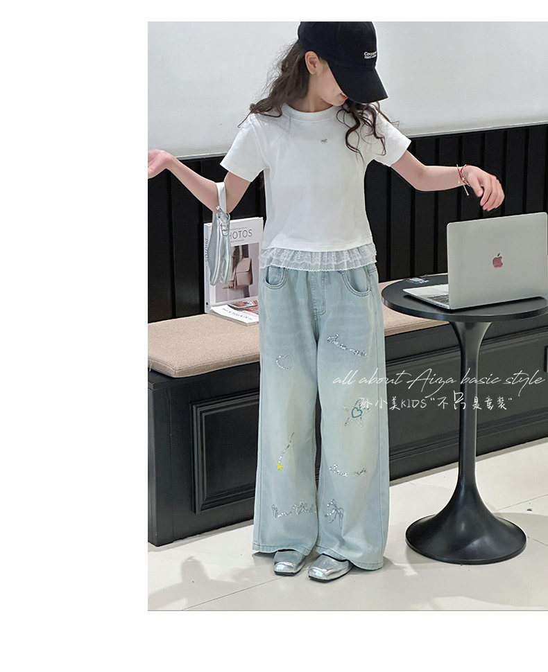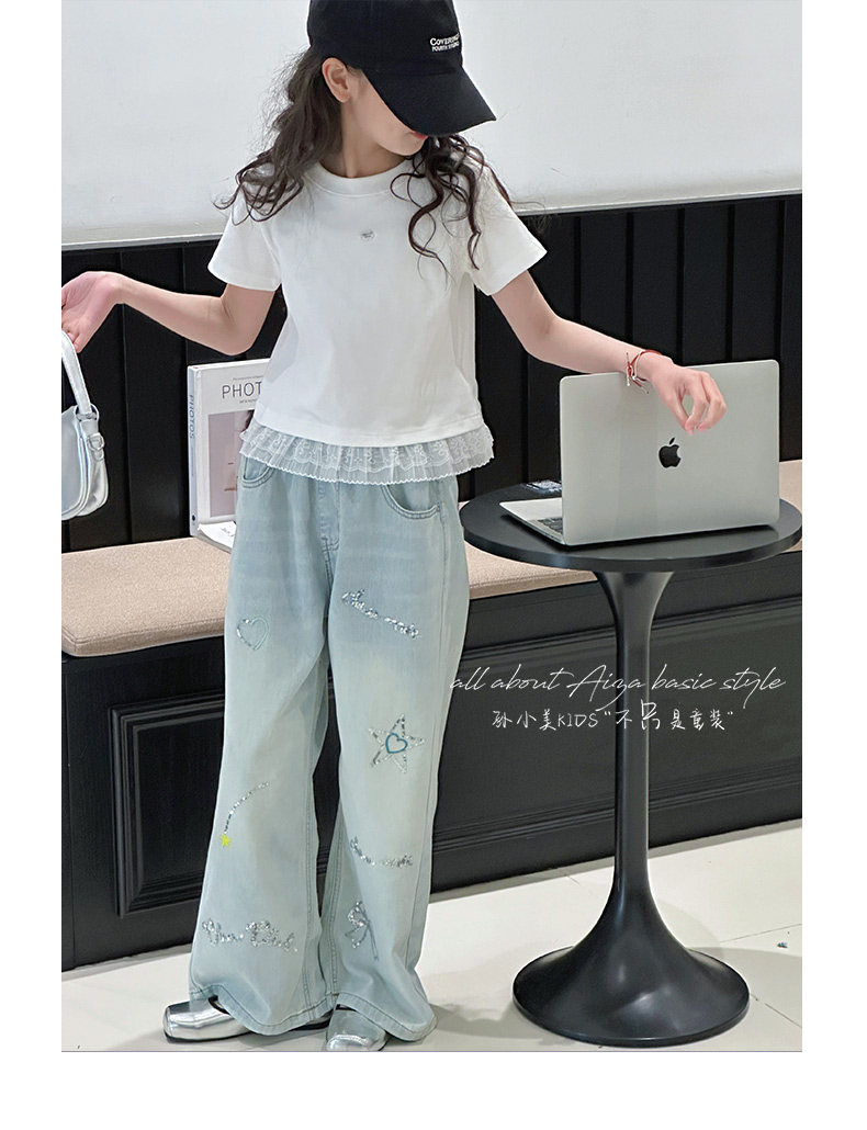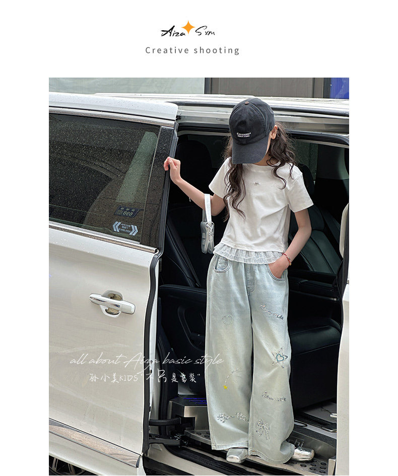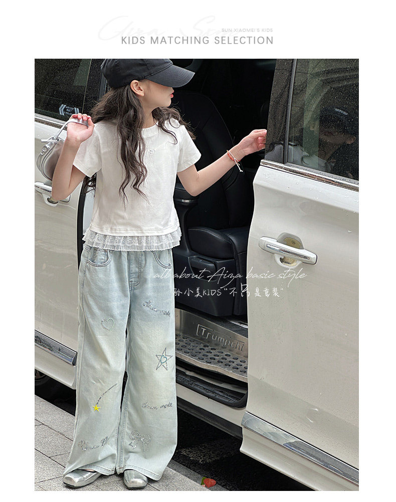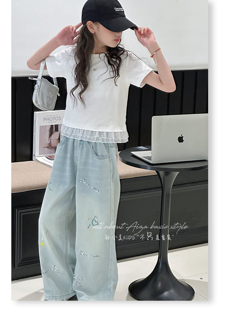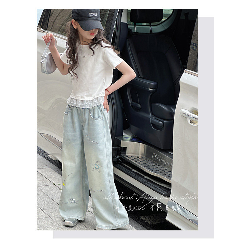 孫小美kids 芭蕾風女童短袖T恤2025新款夏裝兒童上衣大童短款衣服