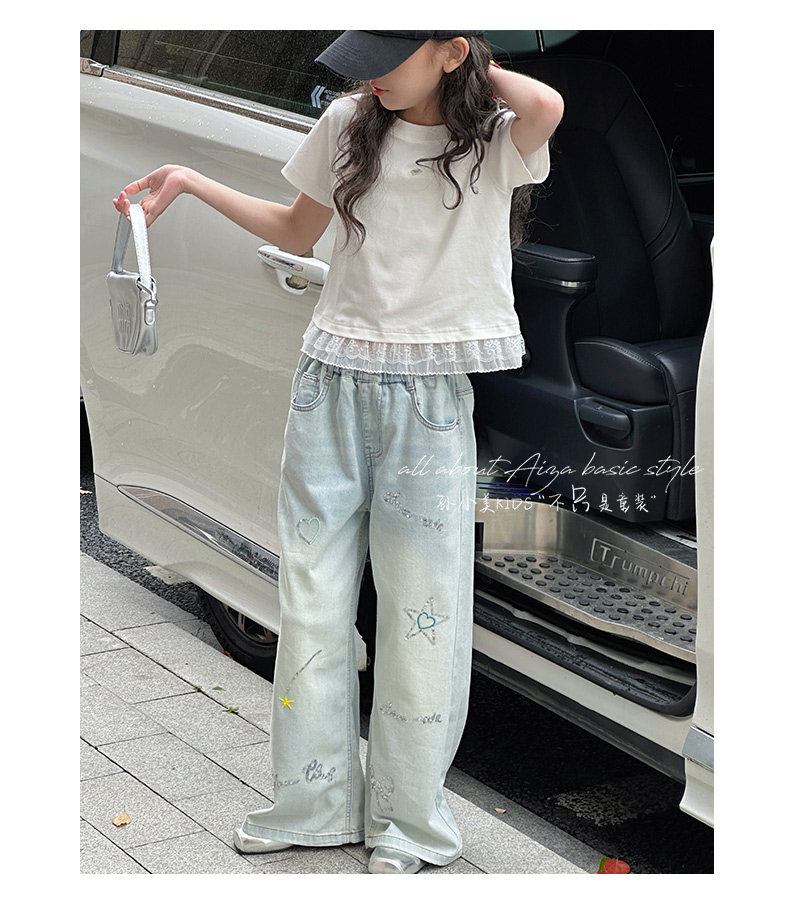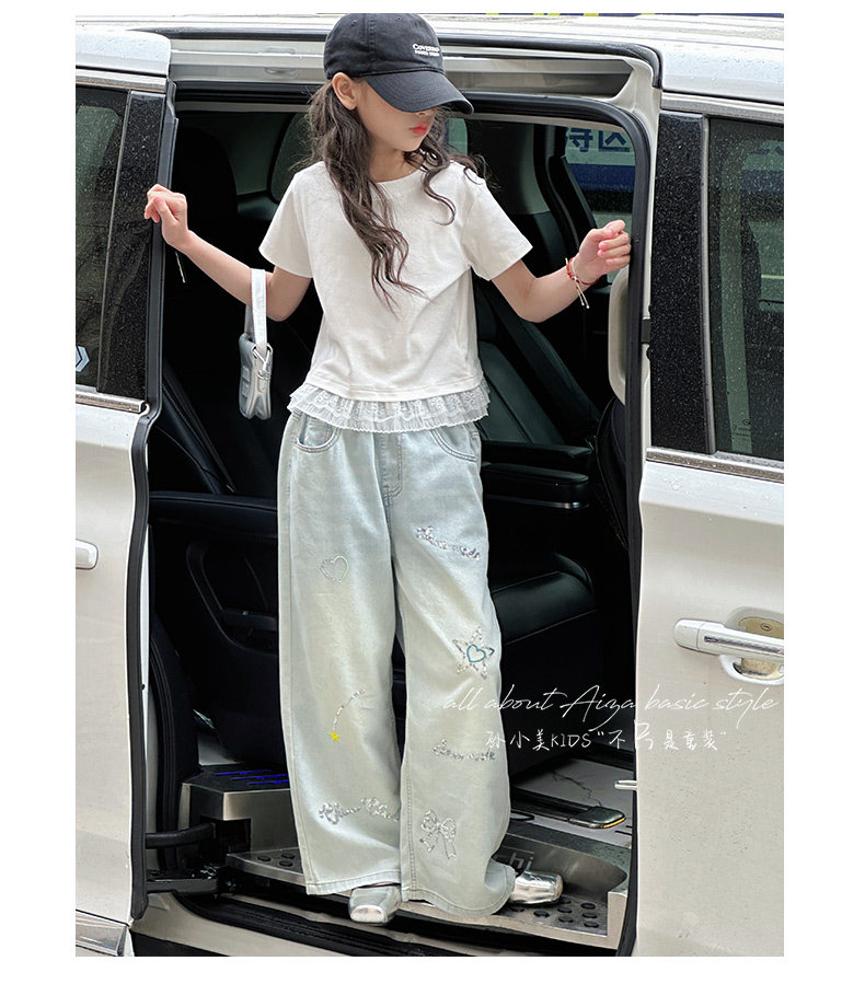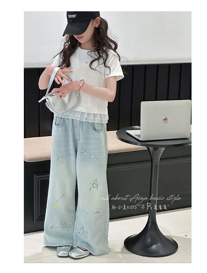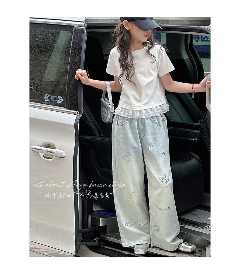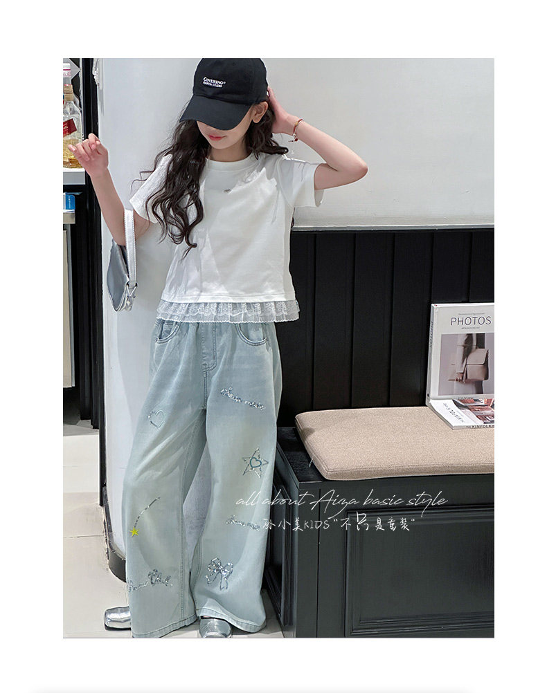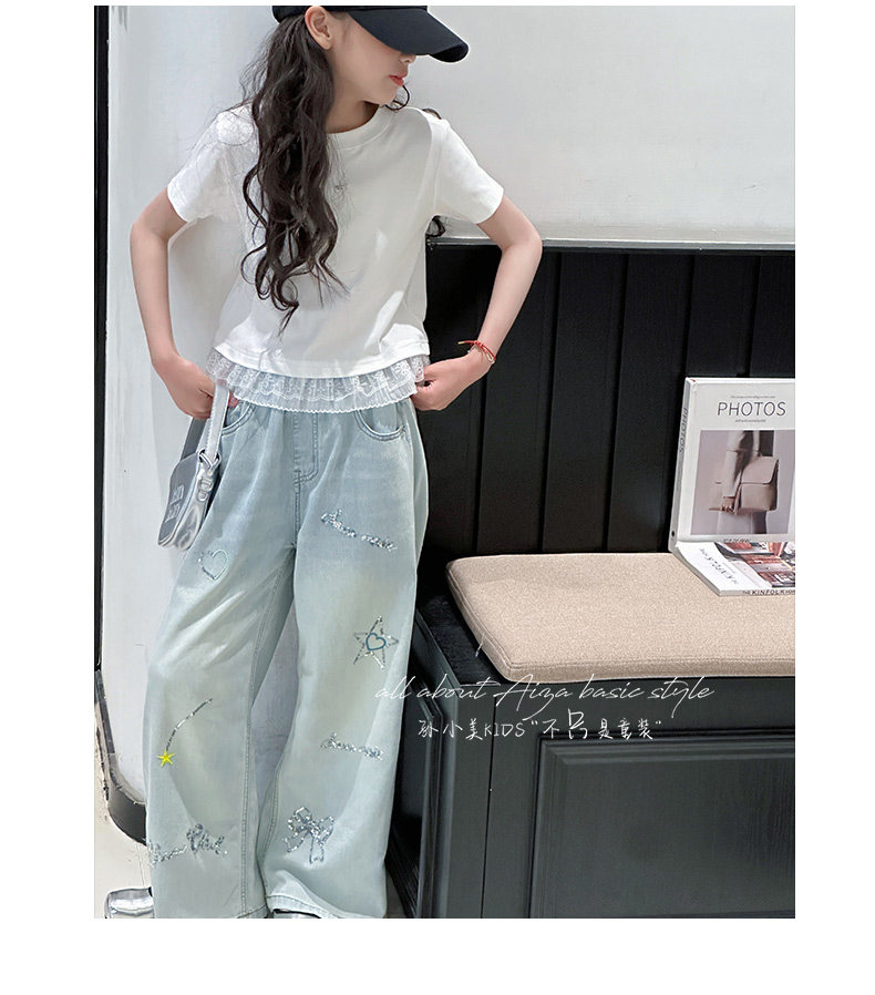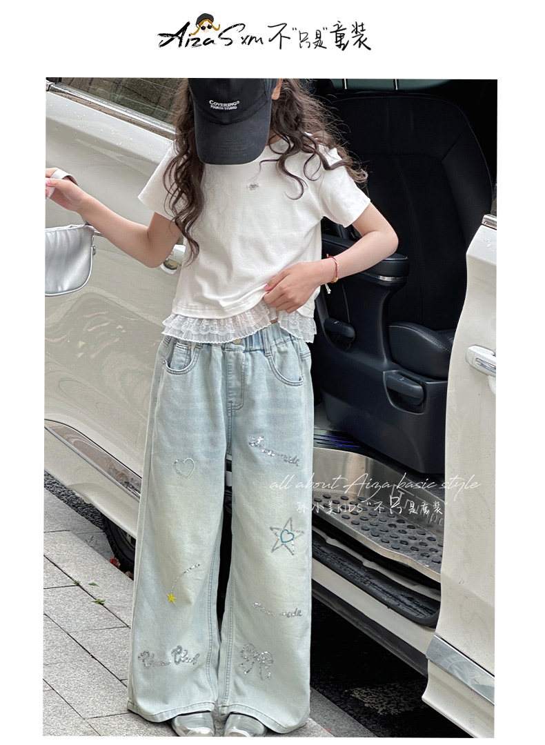 孫小美kids 芭蕾風女童短袖T恤2025新款夏裝兒童上衣大童短款衣服