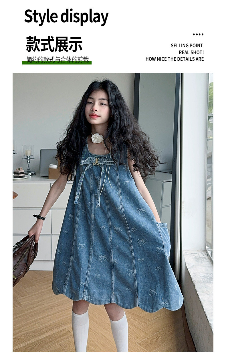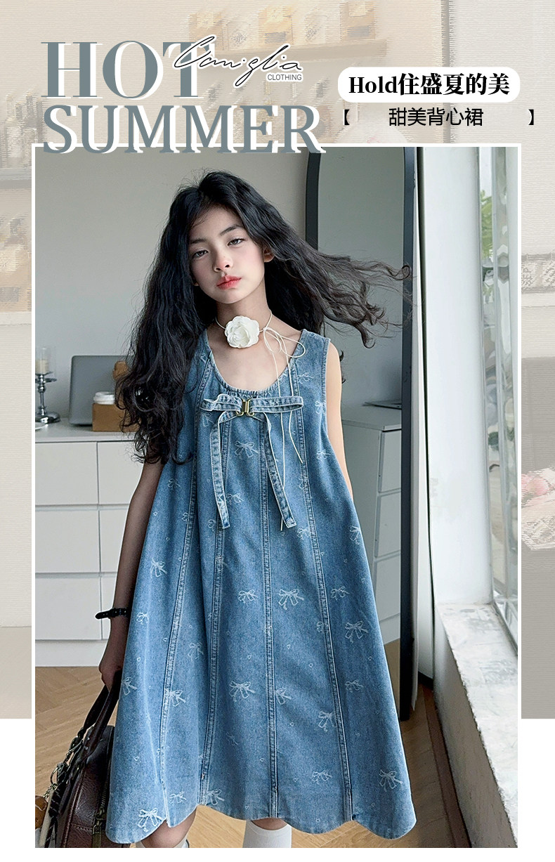 女童連衣裙夏季2025新款女大童洋氣牛仔背心裙女孩夏裝裙子兒童夏