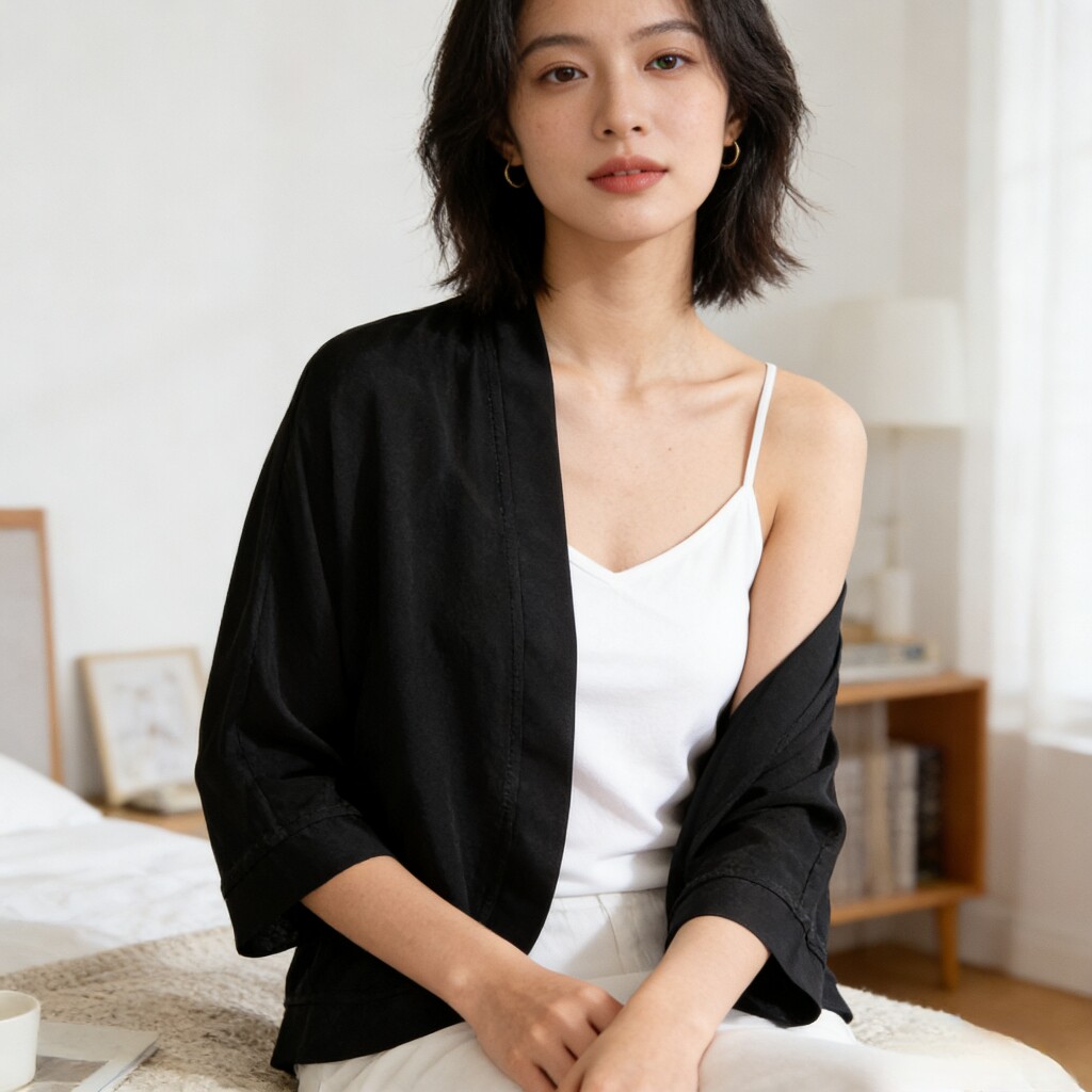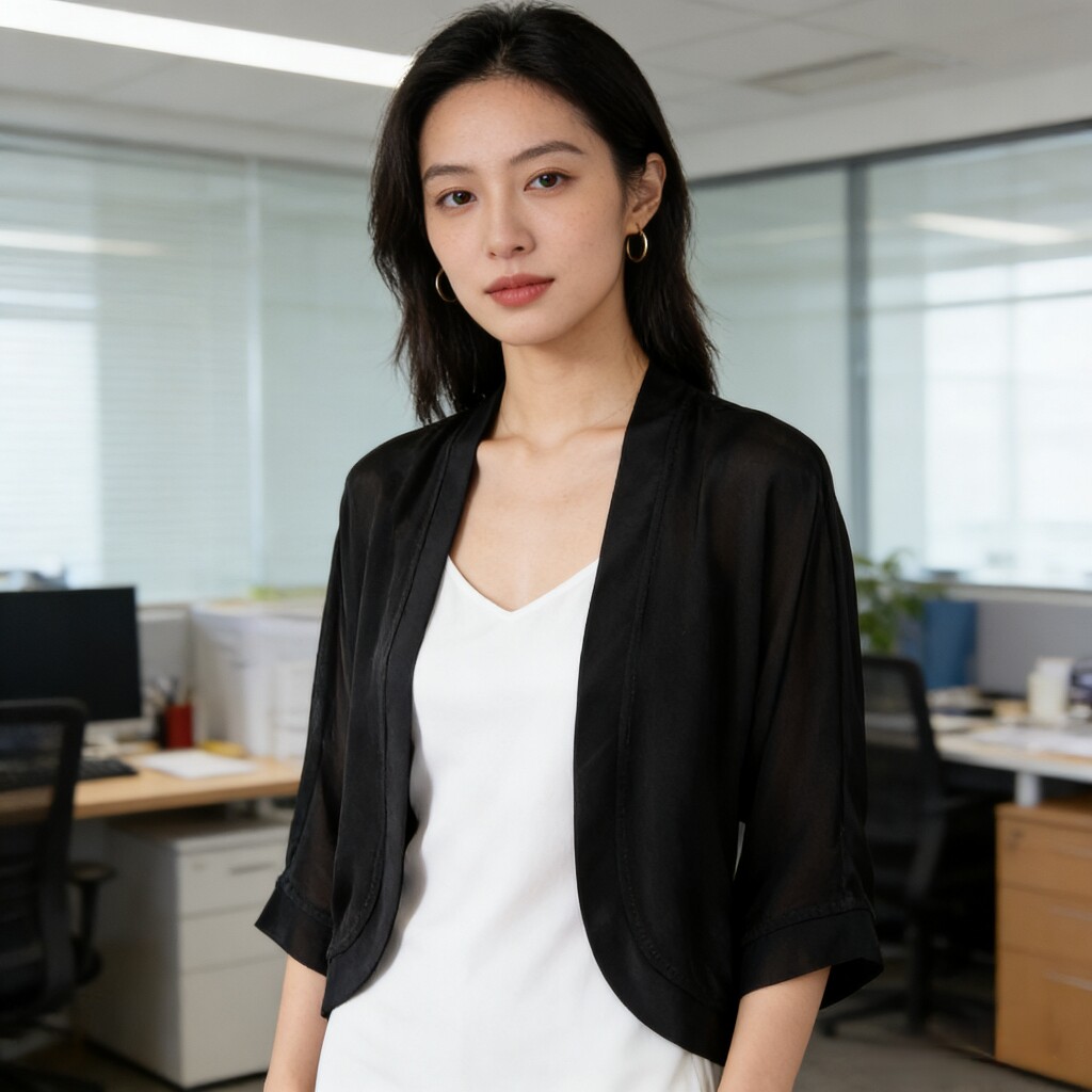 100%真絲外搭防曬衣女短款開衫外套薄款黑色桑蠶絲配裙小披肩罩衫