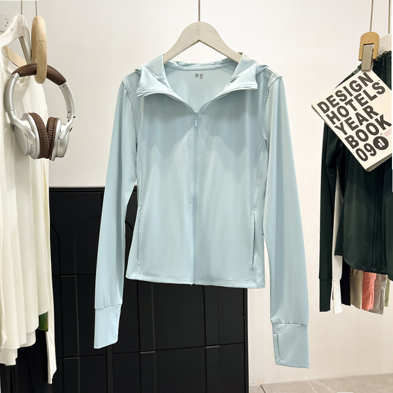 JIUHUAMU~2025夏季輕戶外運動風連帽防曬外套女士修身防曬衣服