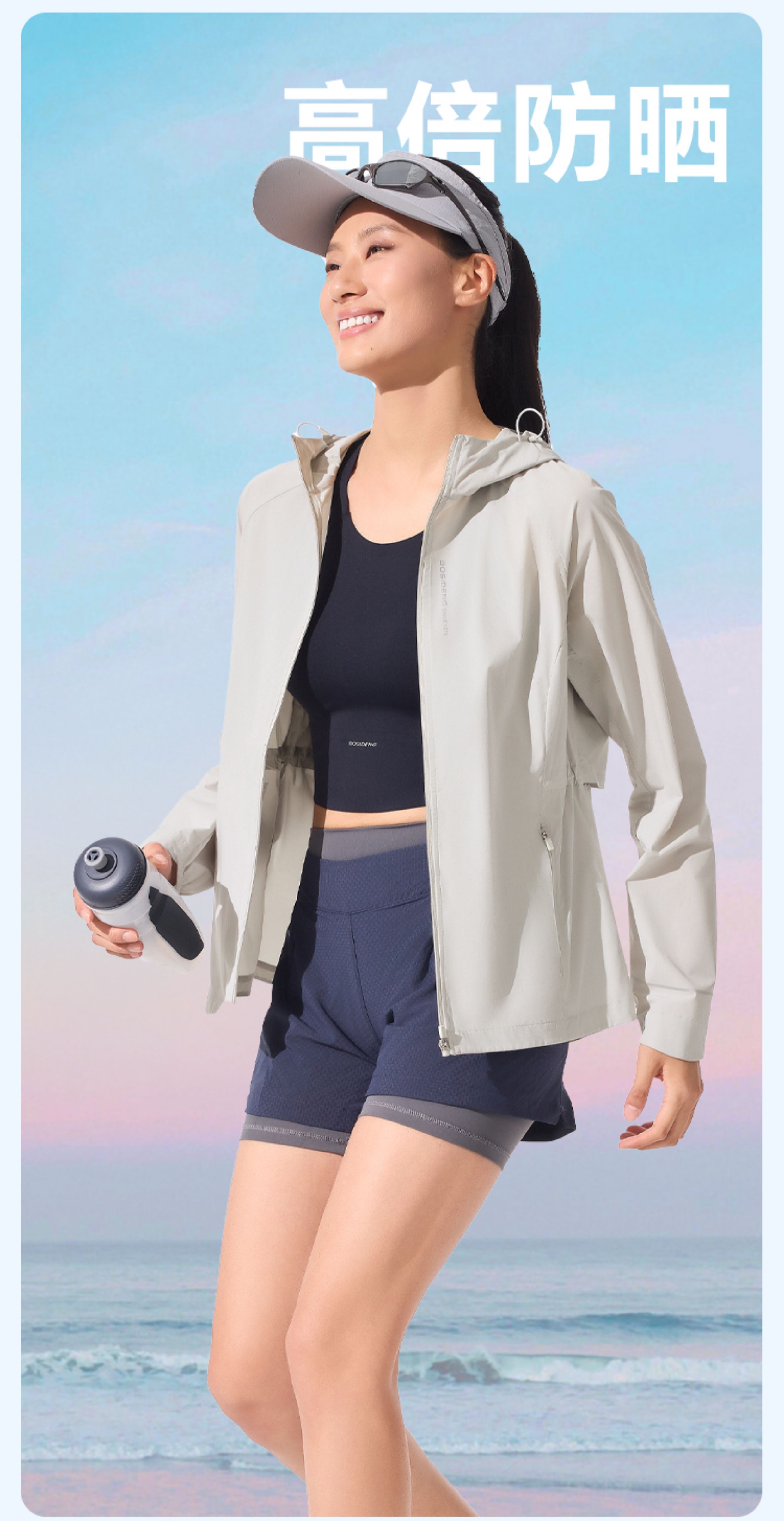 波司登2025夏季新款防曬衣女士大帽簷寬松防紫外線UPF100收腰外套