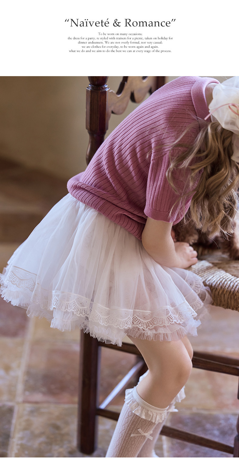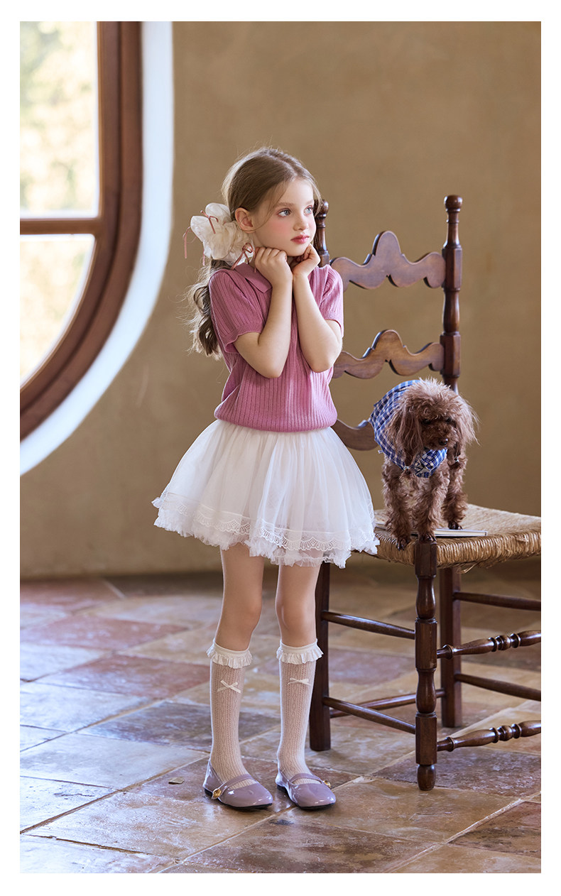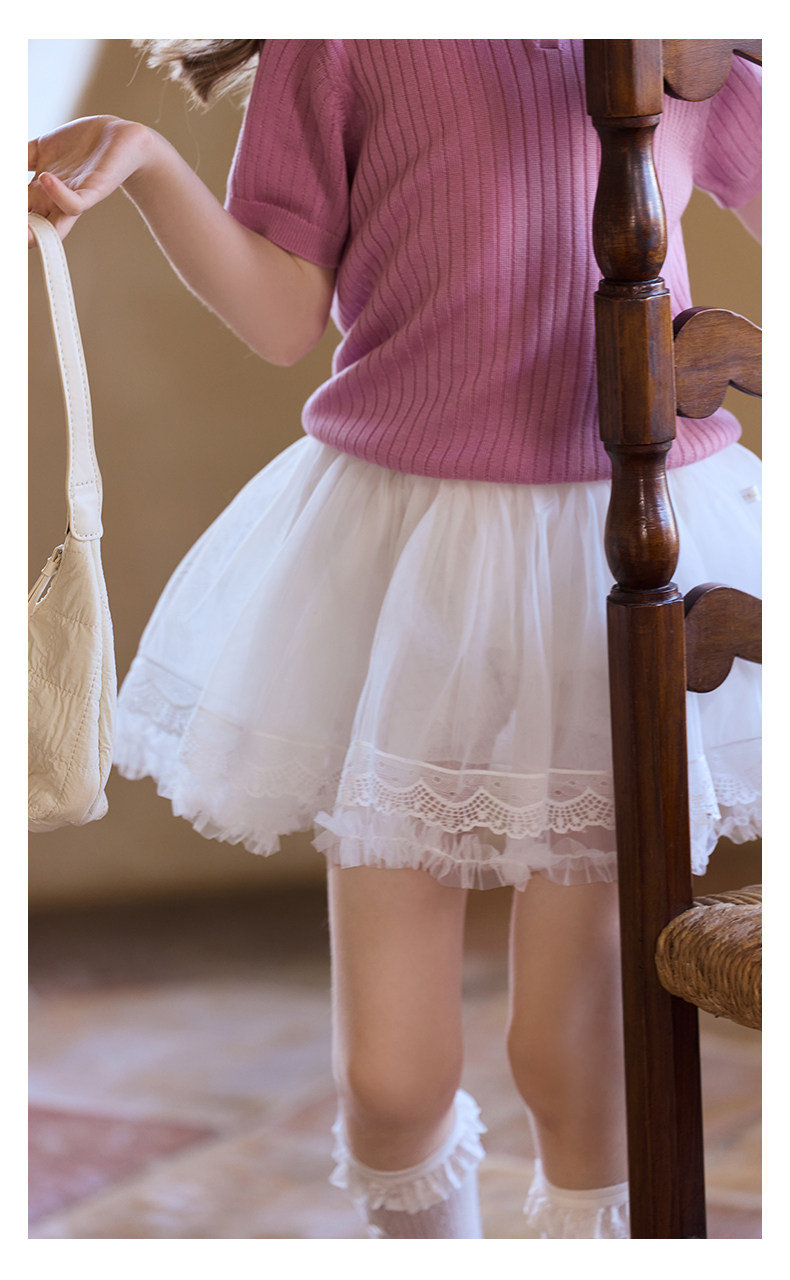 Little Naive女童半身裙夏季新款甜美花邊蓬蓬裙兒童芭蕾風短裙