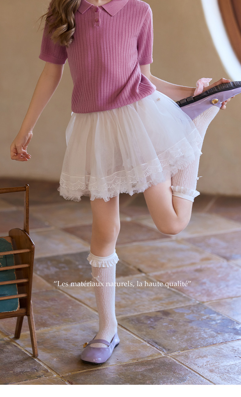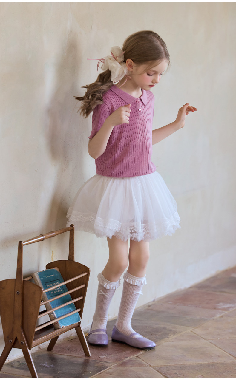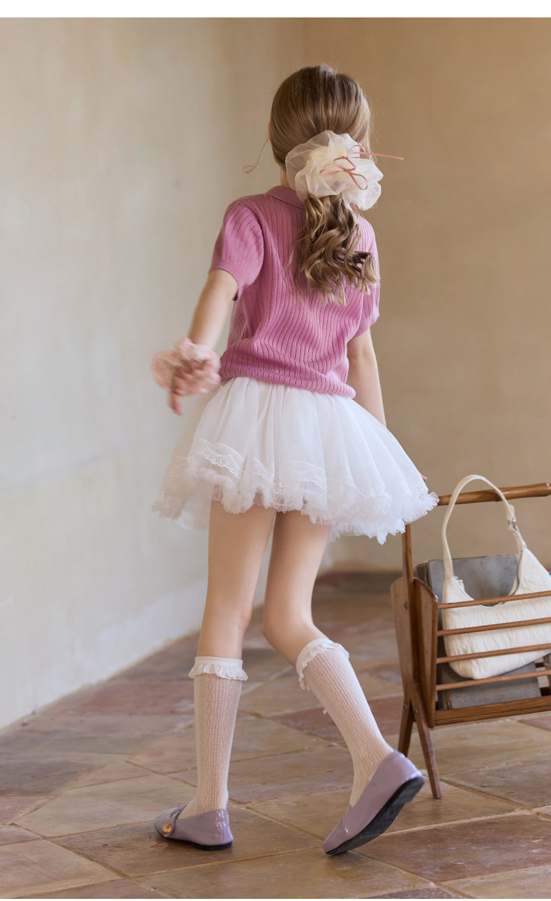 Little Naive女童半身裙夏季新款甜美花邊蓬蓬裙兒童芭蕾風短裙