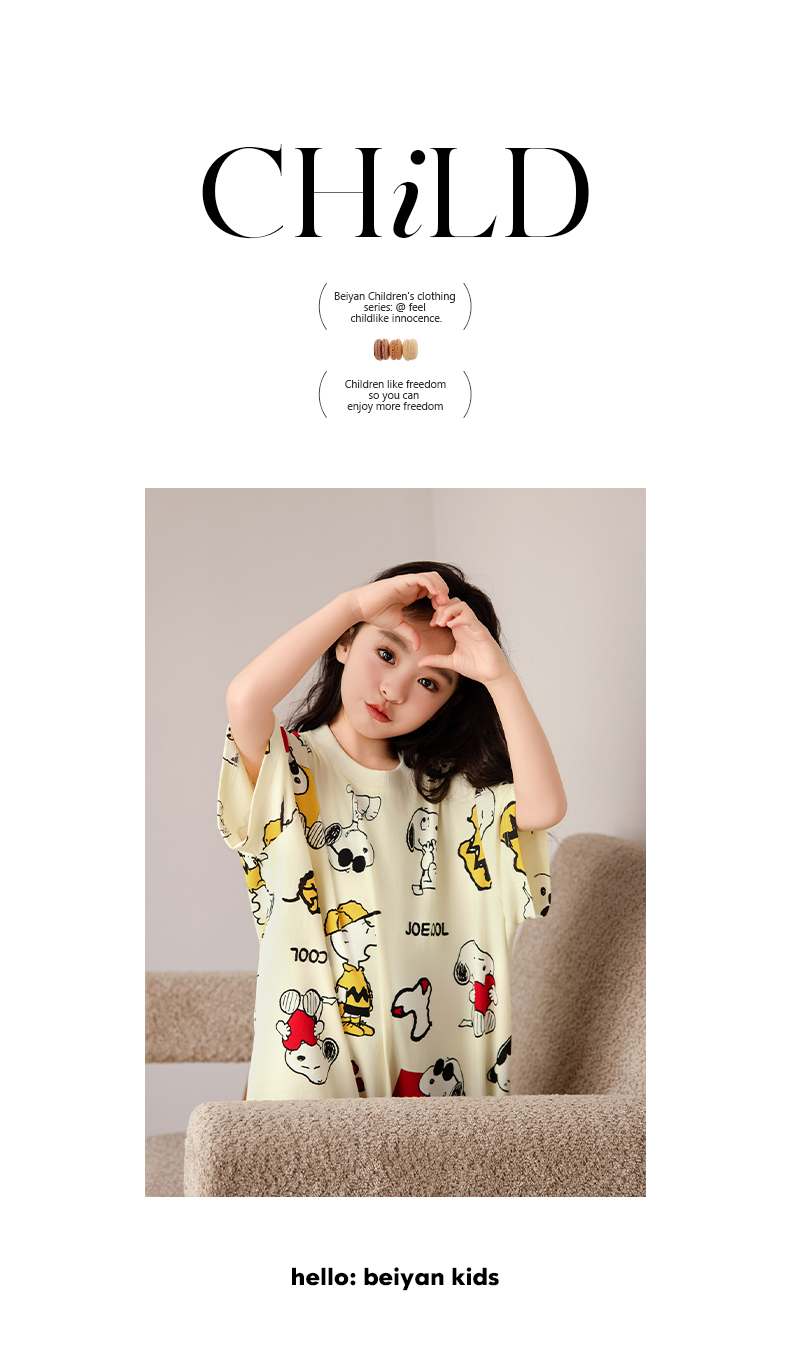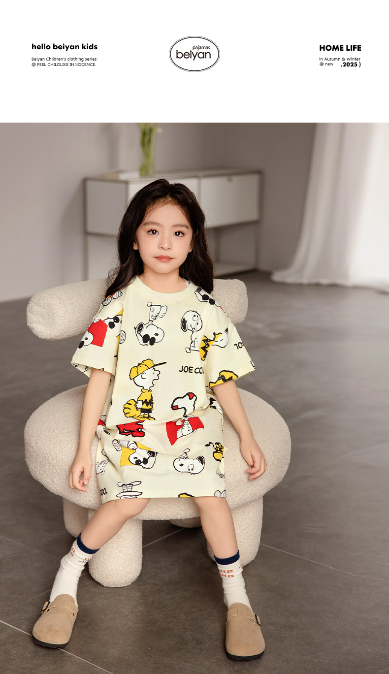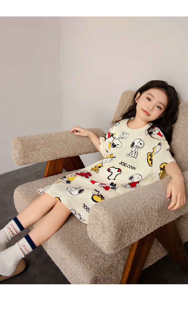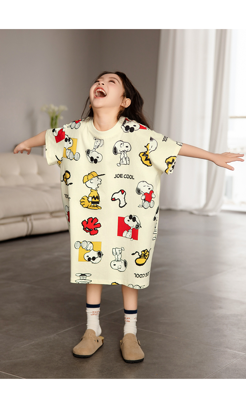 貝妍兒童睡衣夏季新款可愛史努比親子裝薄款純棉短袖女童睡裙