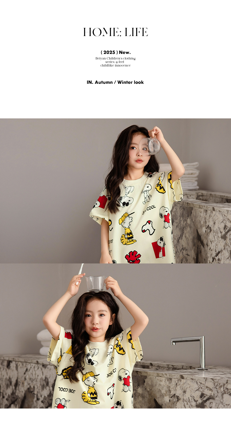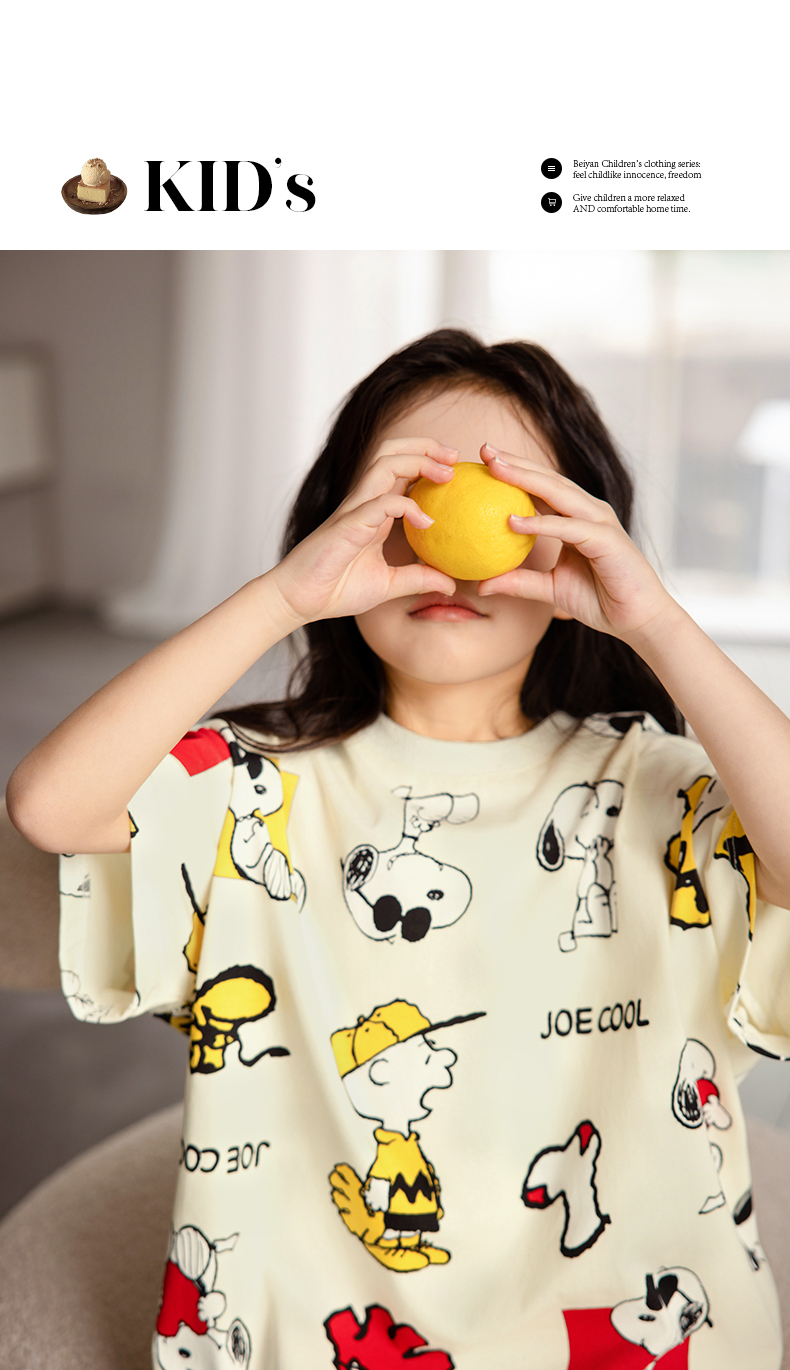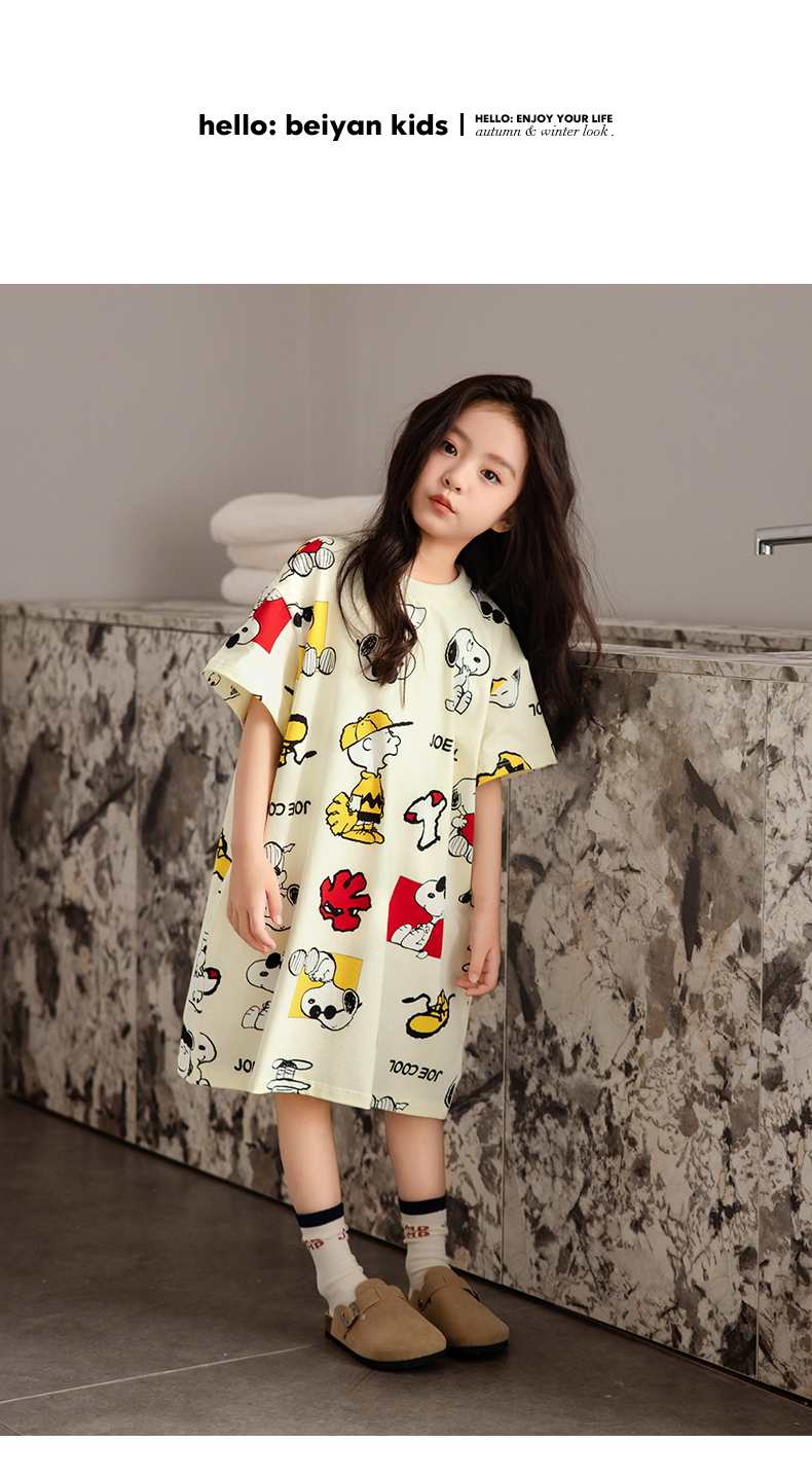 貝妍兒童睡衣夏季新款可愛史努比親子裝薄款純棉短袖女童睡裙