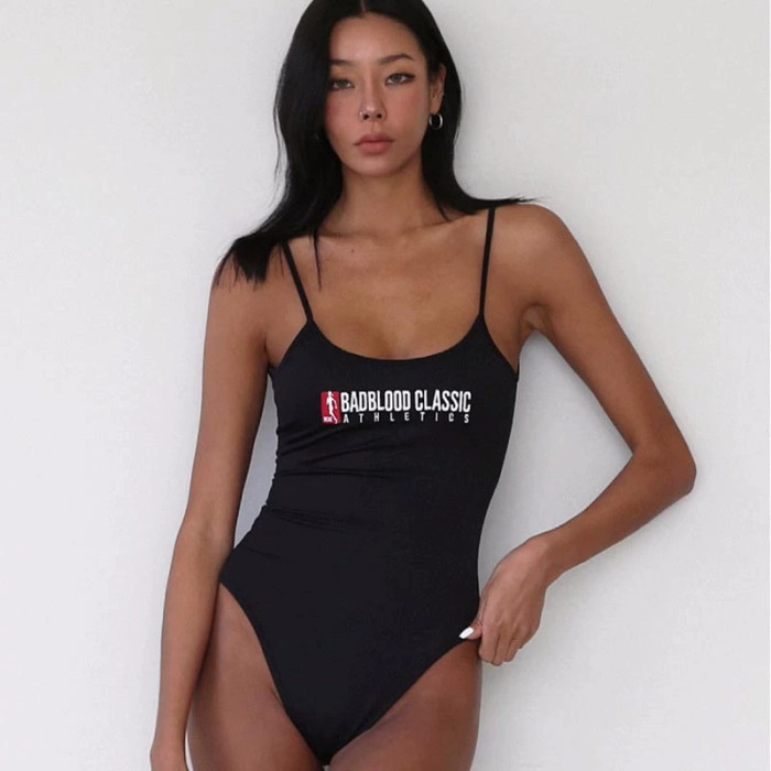 韓國BADBLOOD美式辣妹吊帶背心性感露背字母刺綉連體衣修身泳衣夏
