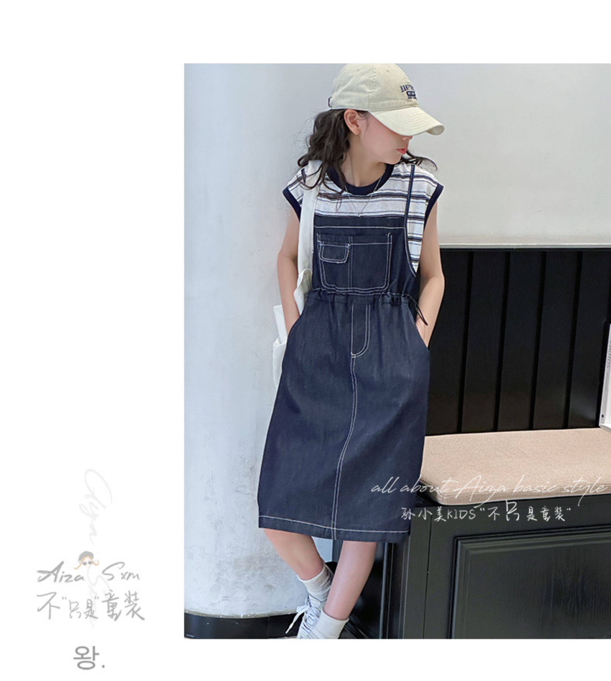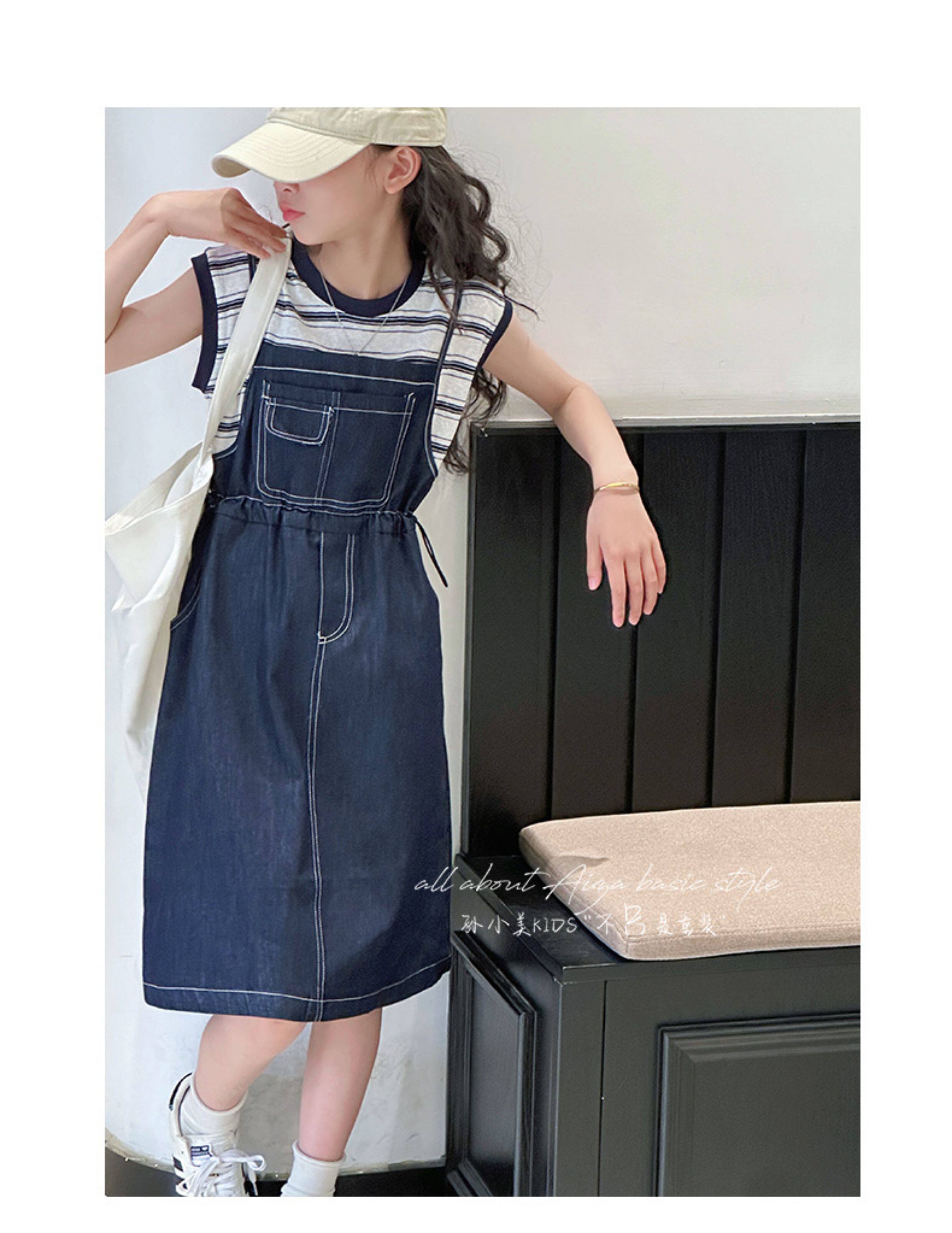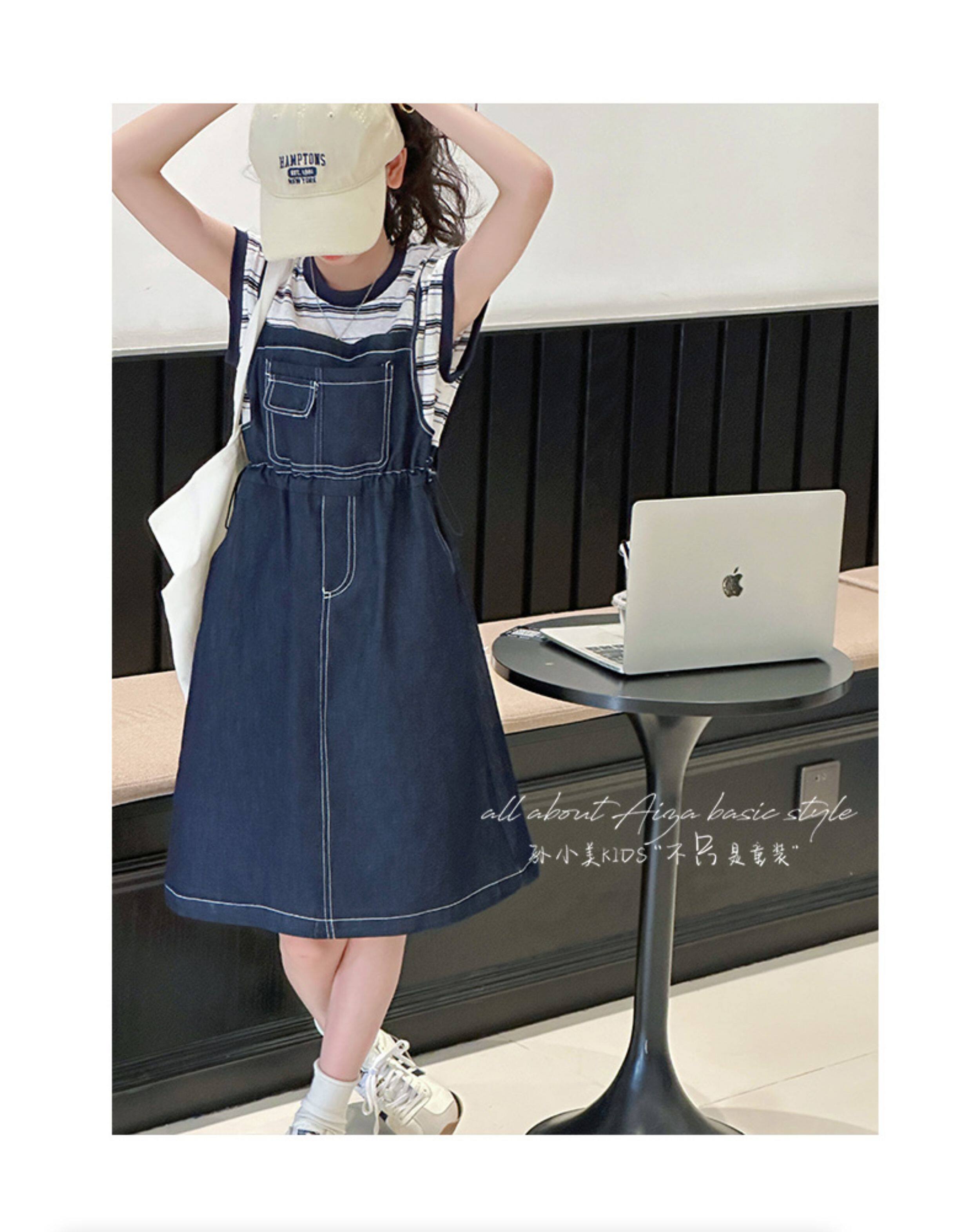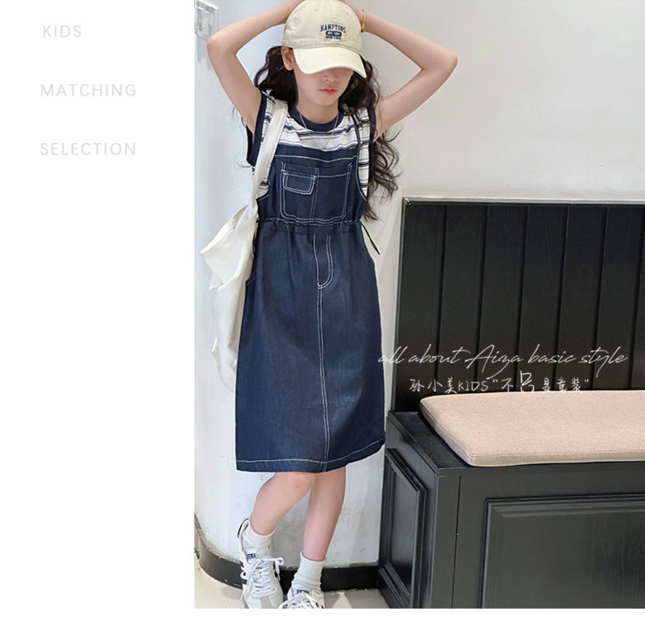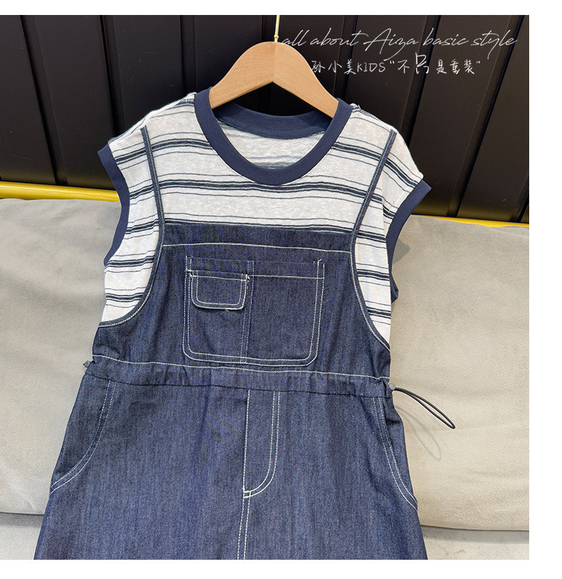 孫小美kids 假兩件女童牛仔連衣裙2025新款夏裝兒童無袖裙子時髦