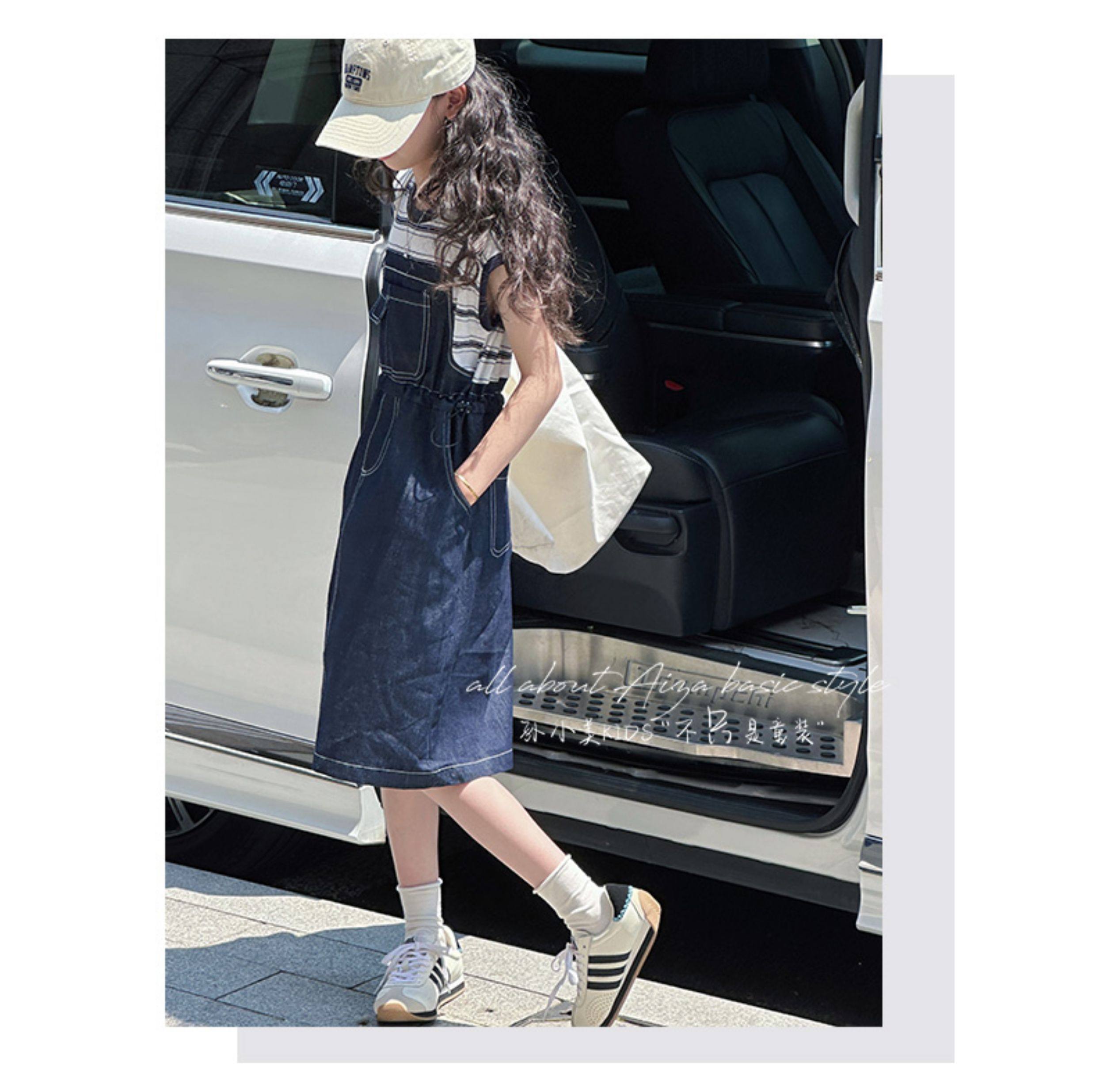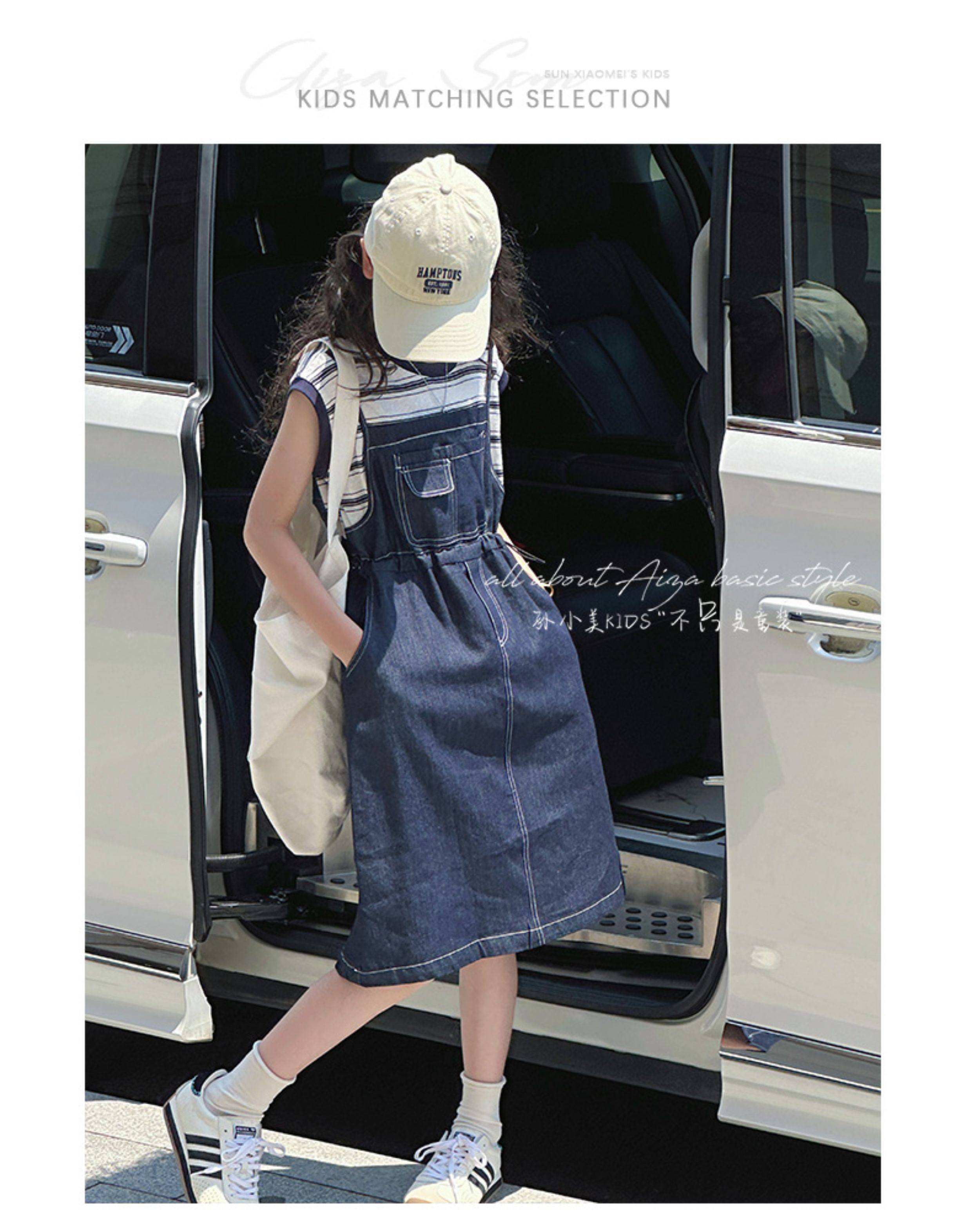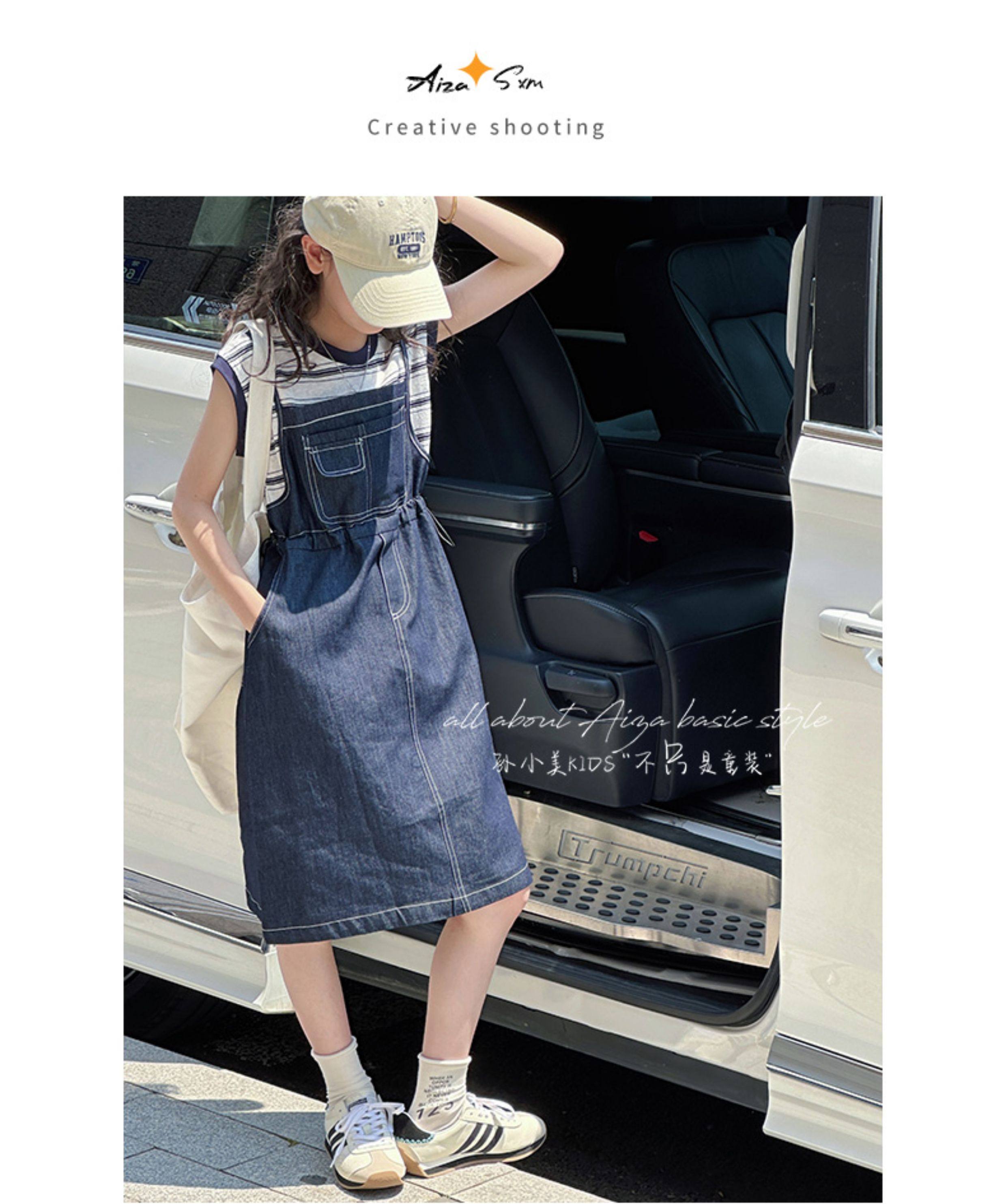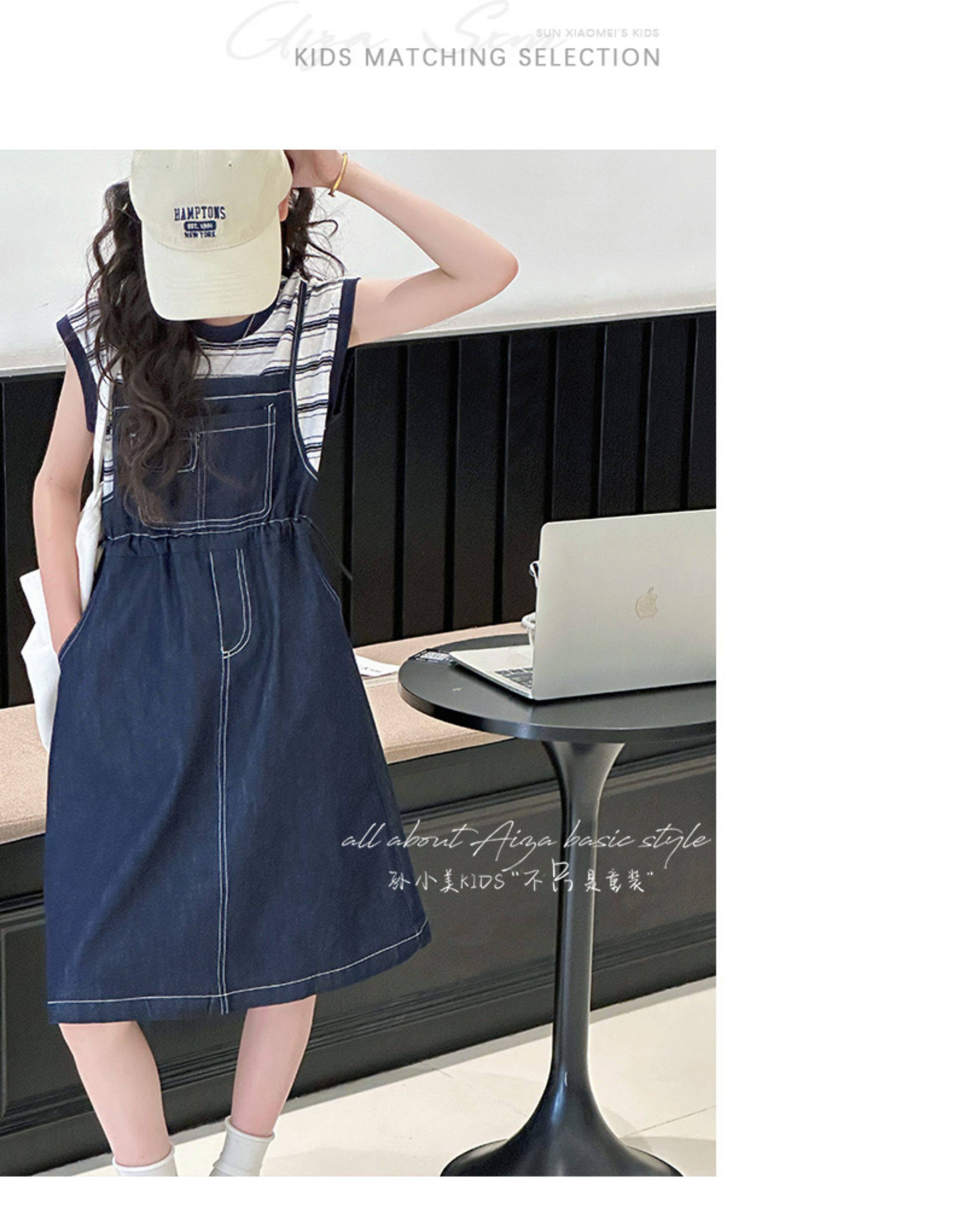 孫小美kids 假兩件女童牛仔連衣裙2025新款夏裝兒童無袖裙子時髦