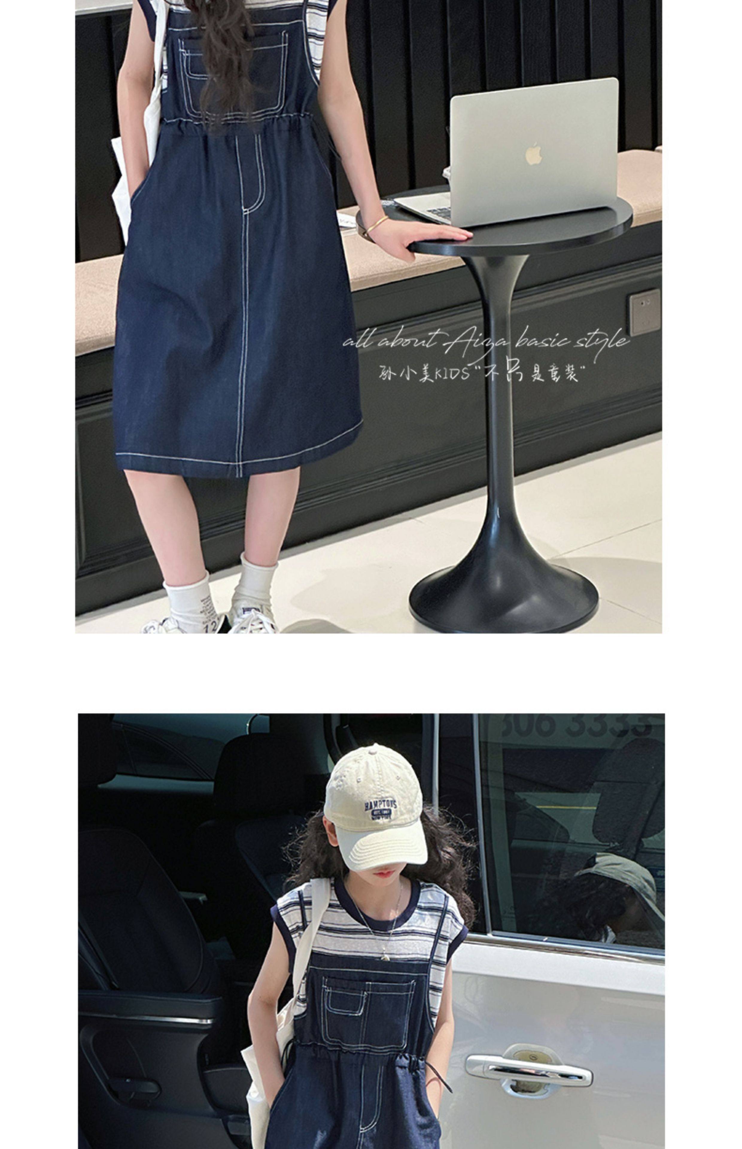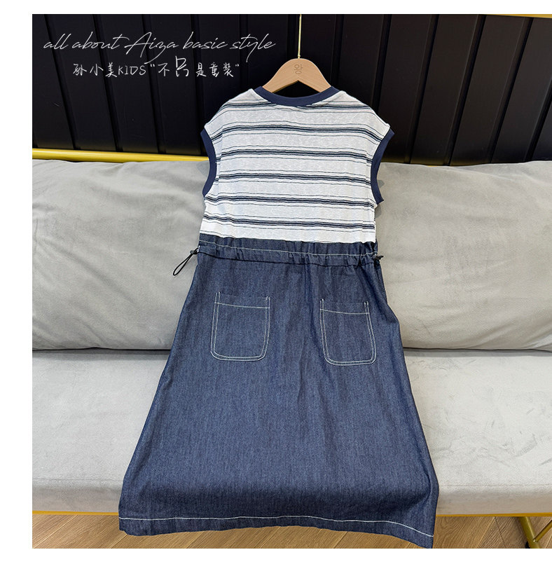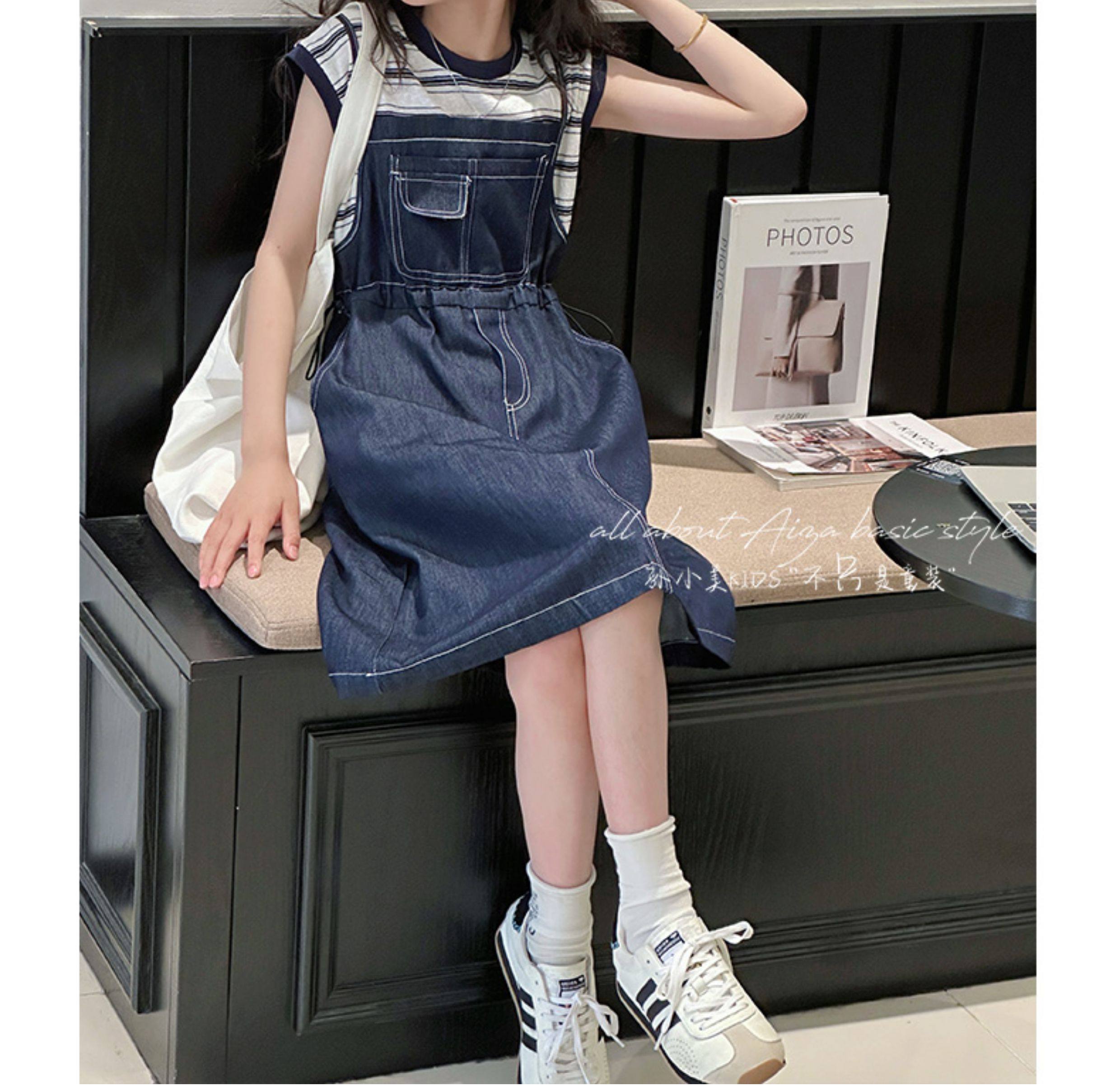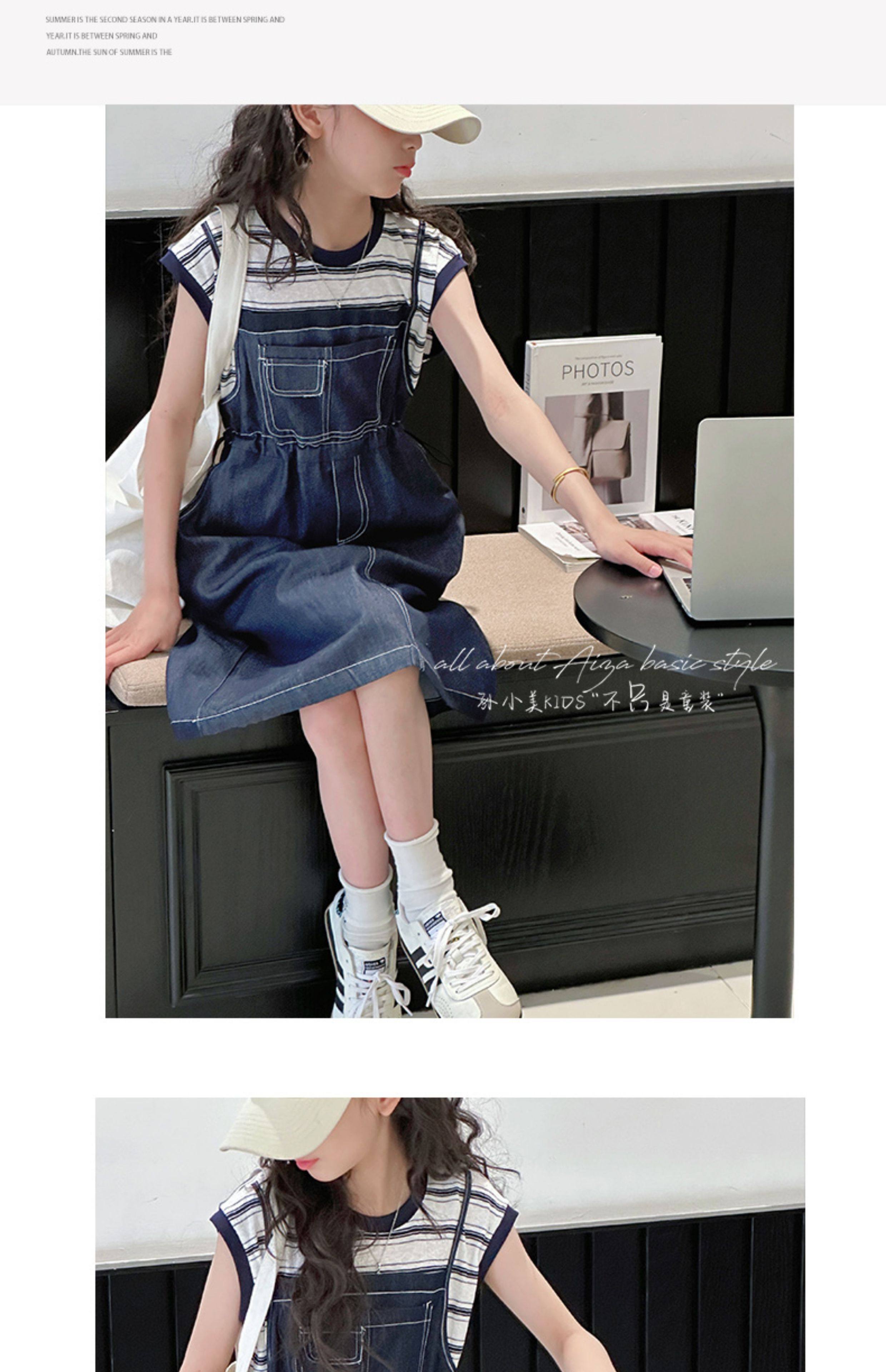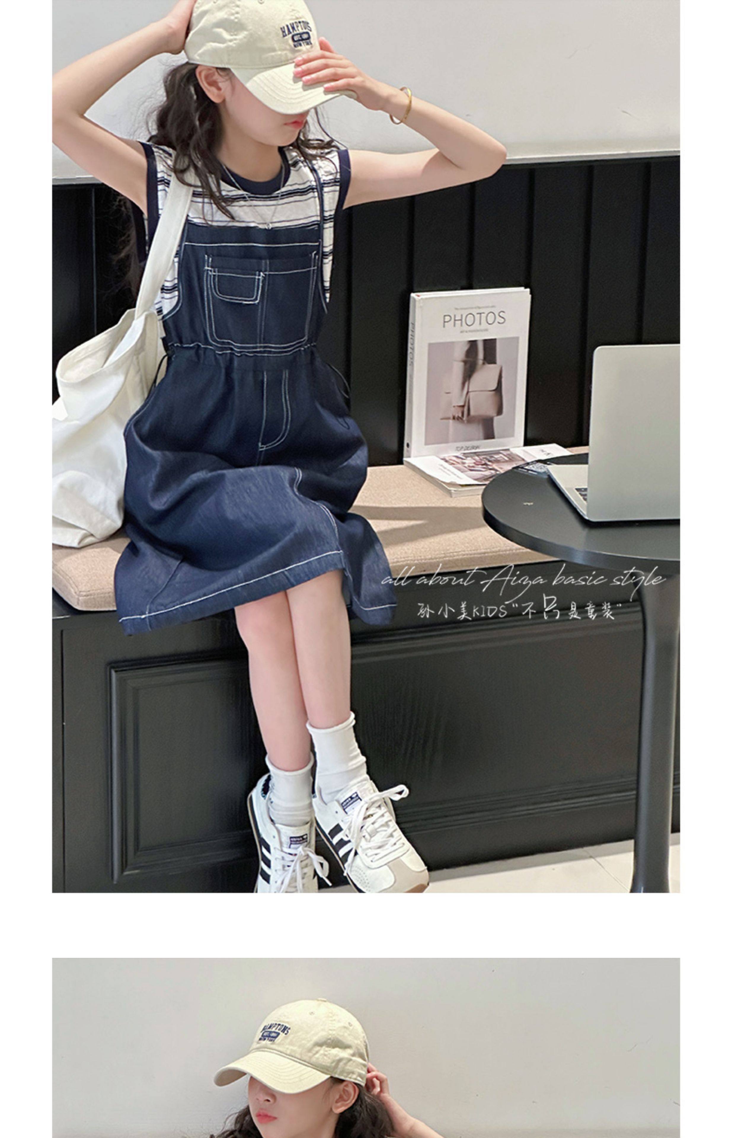 孫小美kids 假兩件女童牛仔連衣裙2025新款夏裝兒童無袖裙子時髦